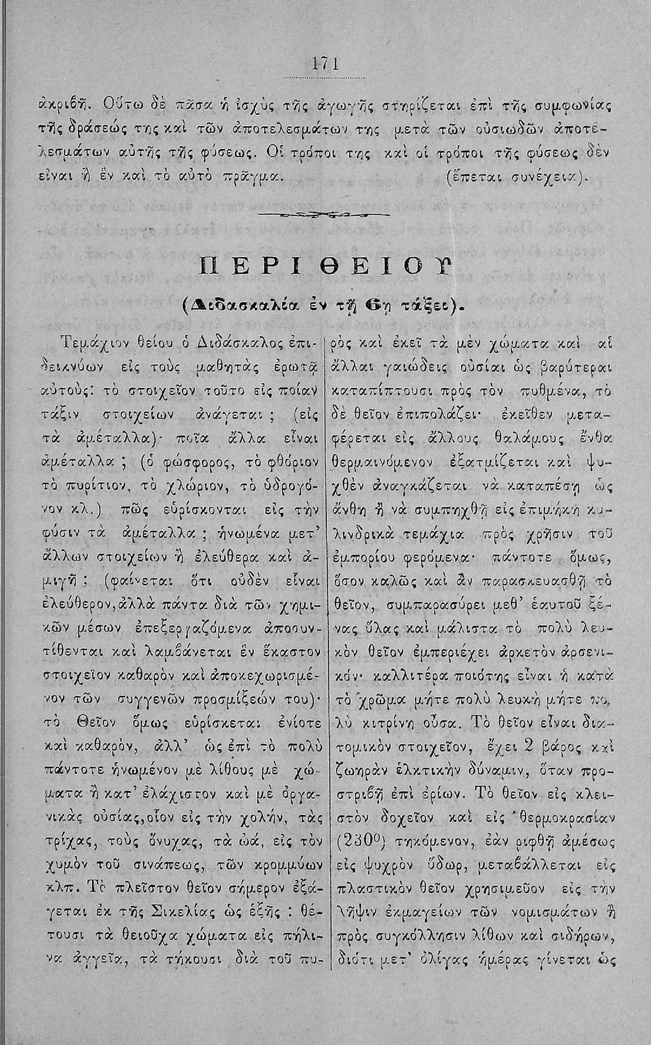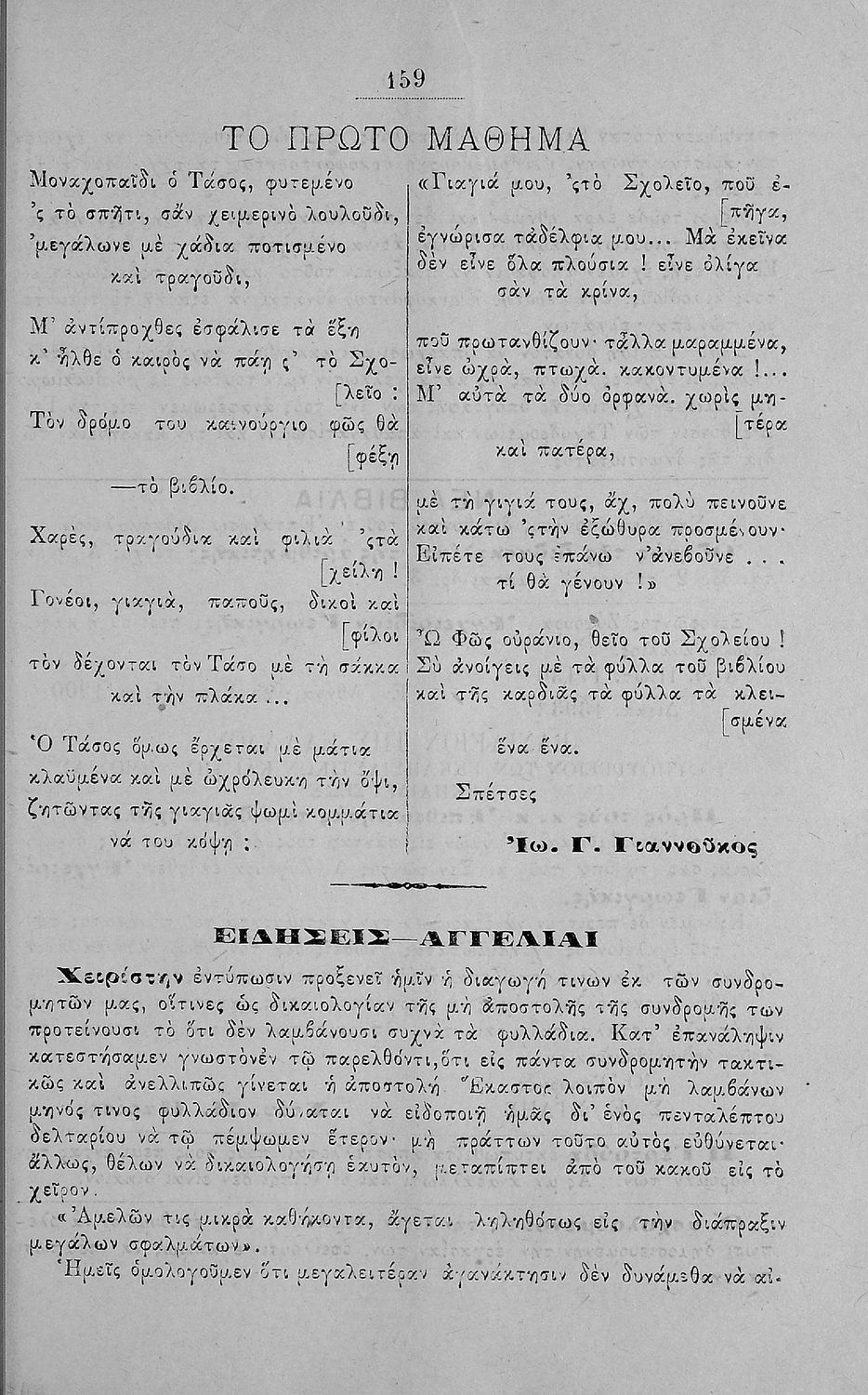 Τάξη:  Γ' Ελληνικού Σχολείου / Α' Αστικού Σχολείου Θηλέων