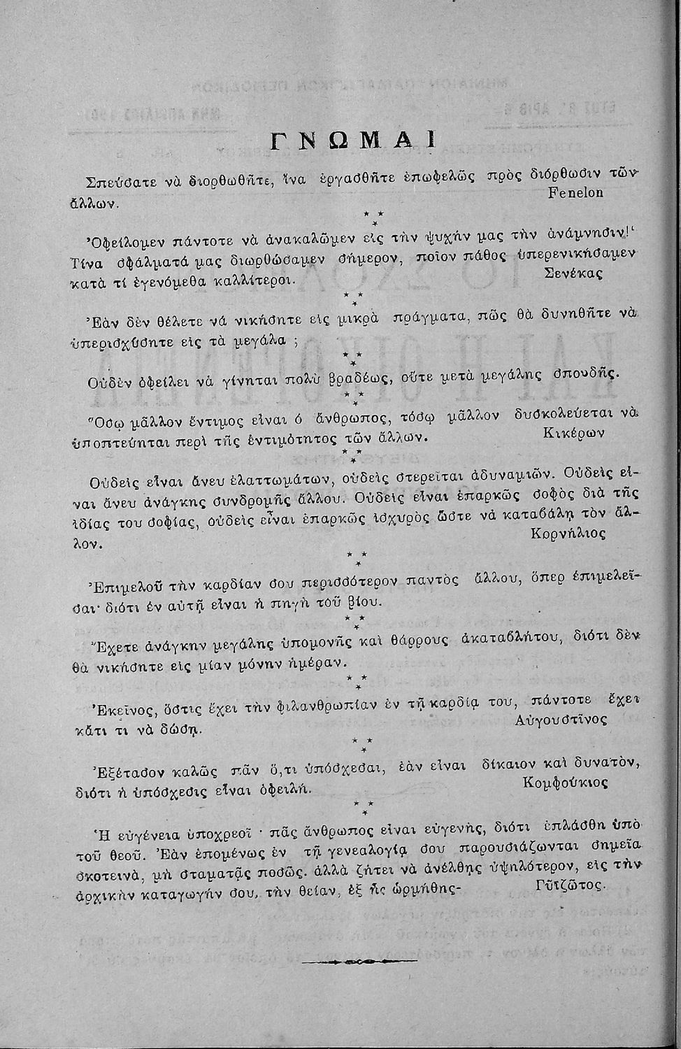 Σχολικό εγχειρίδιο Νέων Ελληνικών Γ' Ελληνικού Σχολείου και Α΄ Αστικού Σχολείου των Θηλέων που περιλαμβάνει ποιήματα και πεζά Ελλήνων συγγραφέων και δημοτικά τραγούδια εμπνευσμένα από την σύγχρονη ελληνική ...