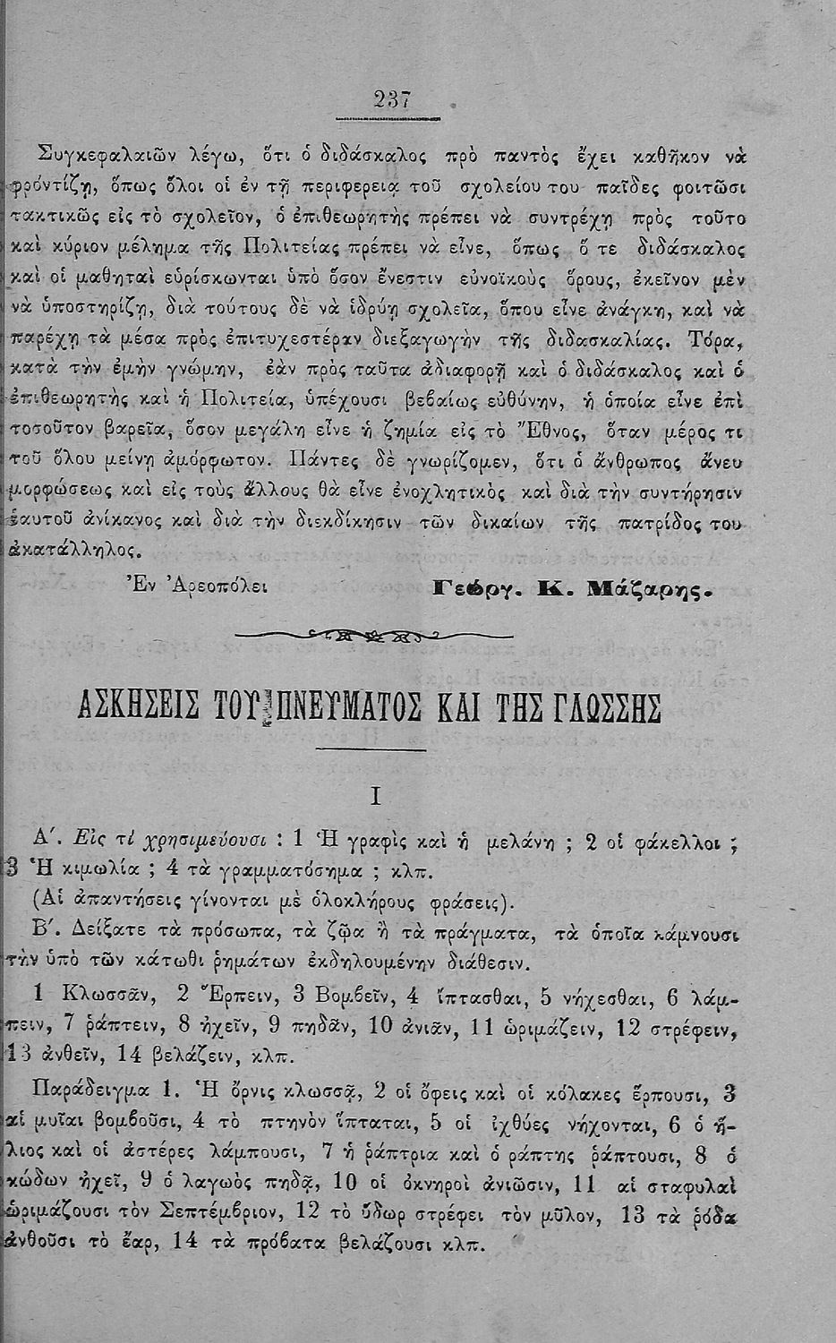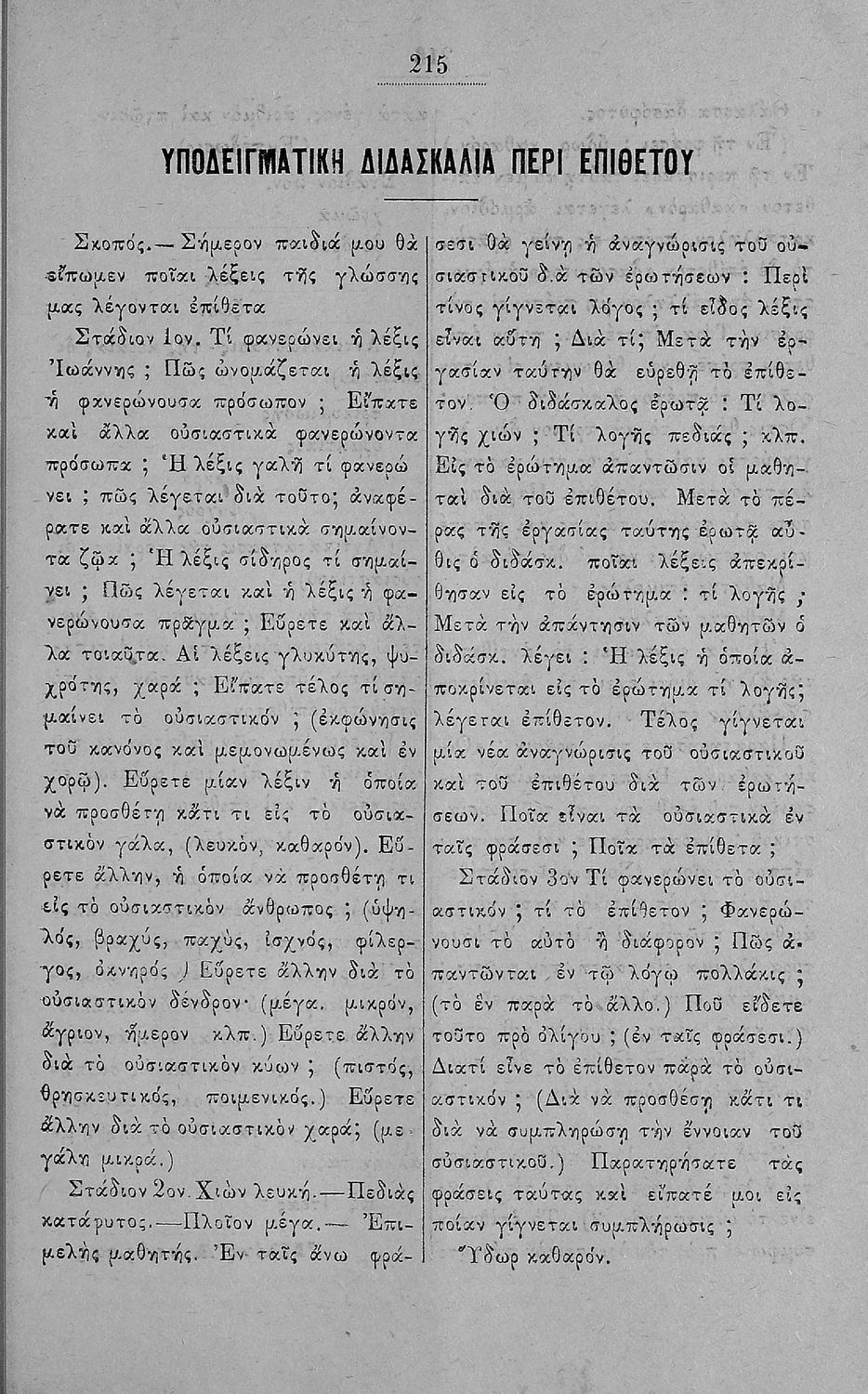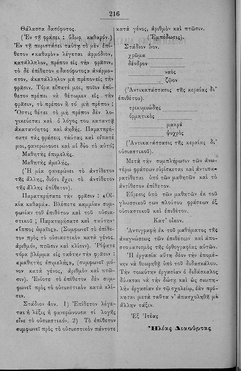 Τάξη:  Γ' Ελληνικού Σχολείου / Α' Αστικού Σχολείου Θηλέων