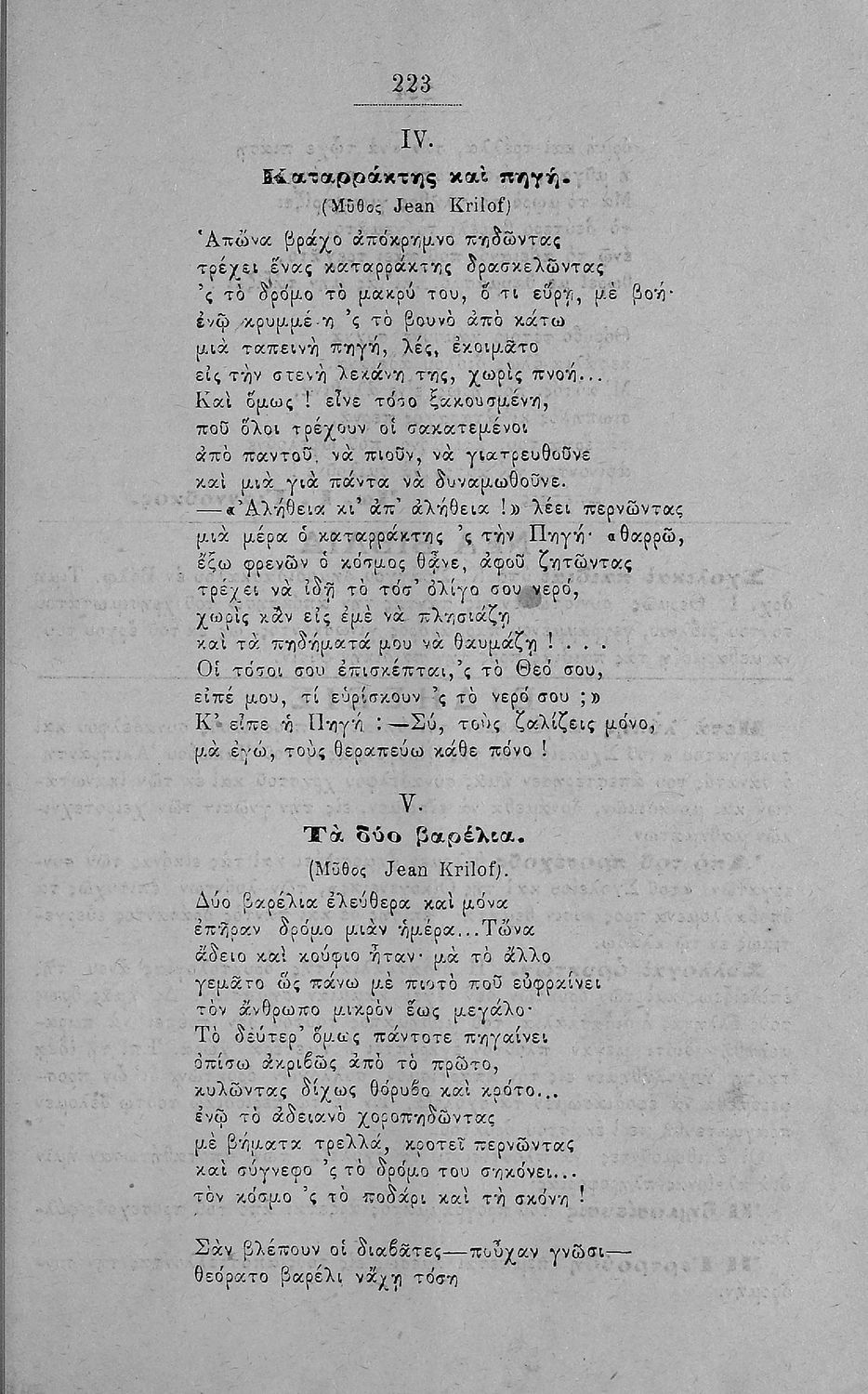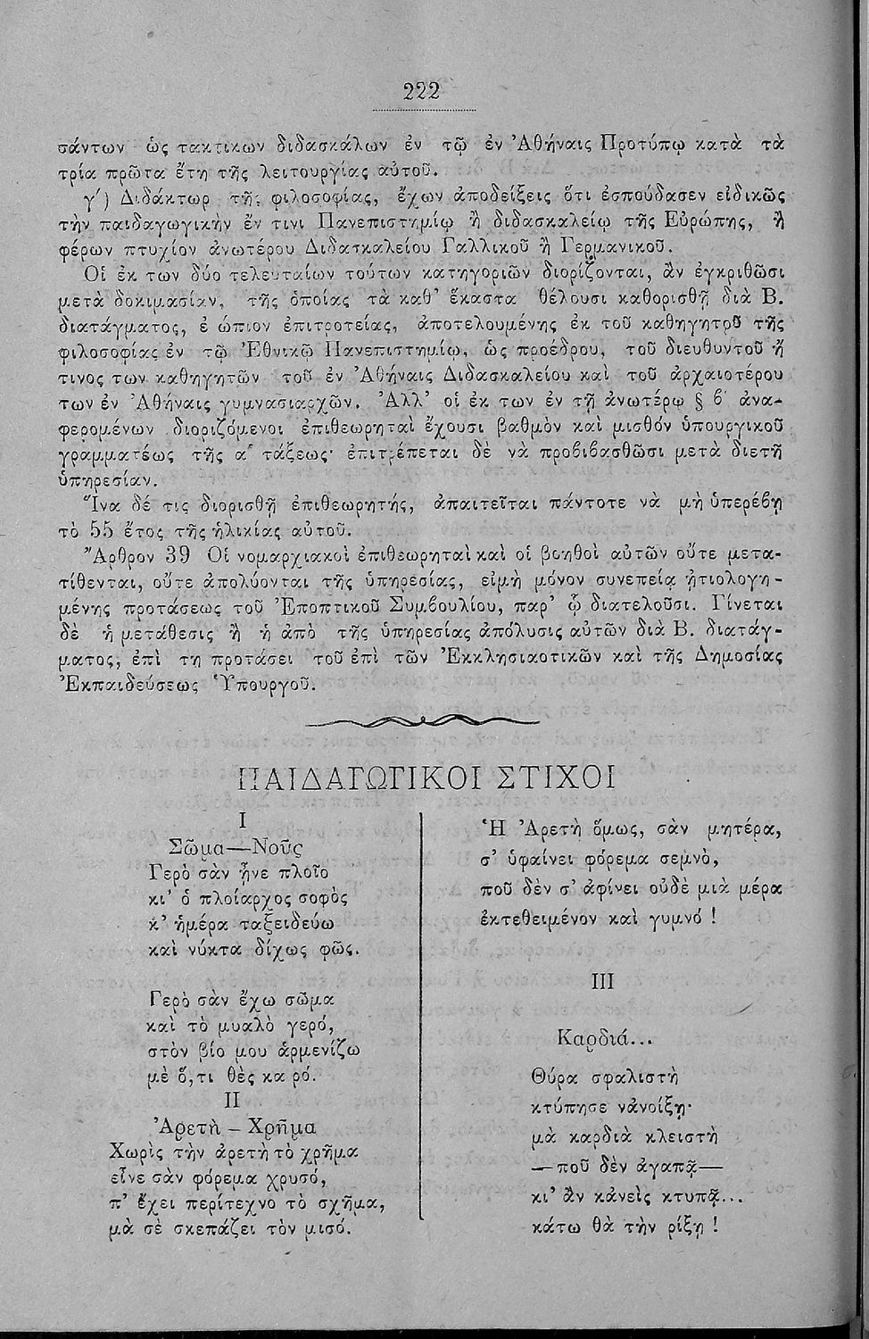 Σχολικό εγχειρίδιο Νέων Ελληνικών Γ' Ελληνικού Σχολείου και Α΄ Αστικού Σχολείου των Θηλέων που περιλαμβάνει ποιήματα και πεζά Ελλήνων συγγραφέων και δημοτικά τραγούδια εμπνευσμένα από την σύγχρονη ελληνική ...