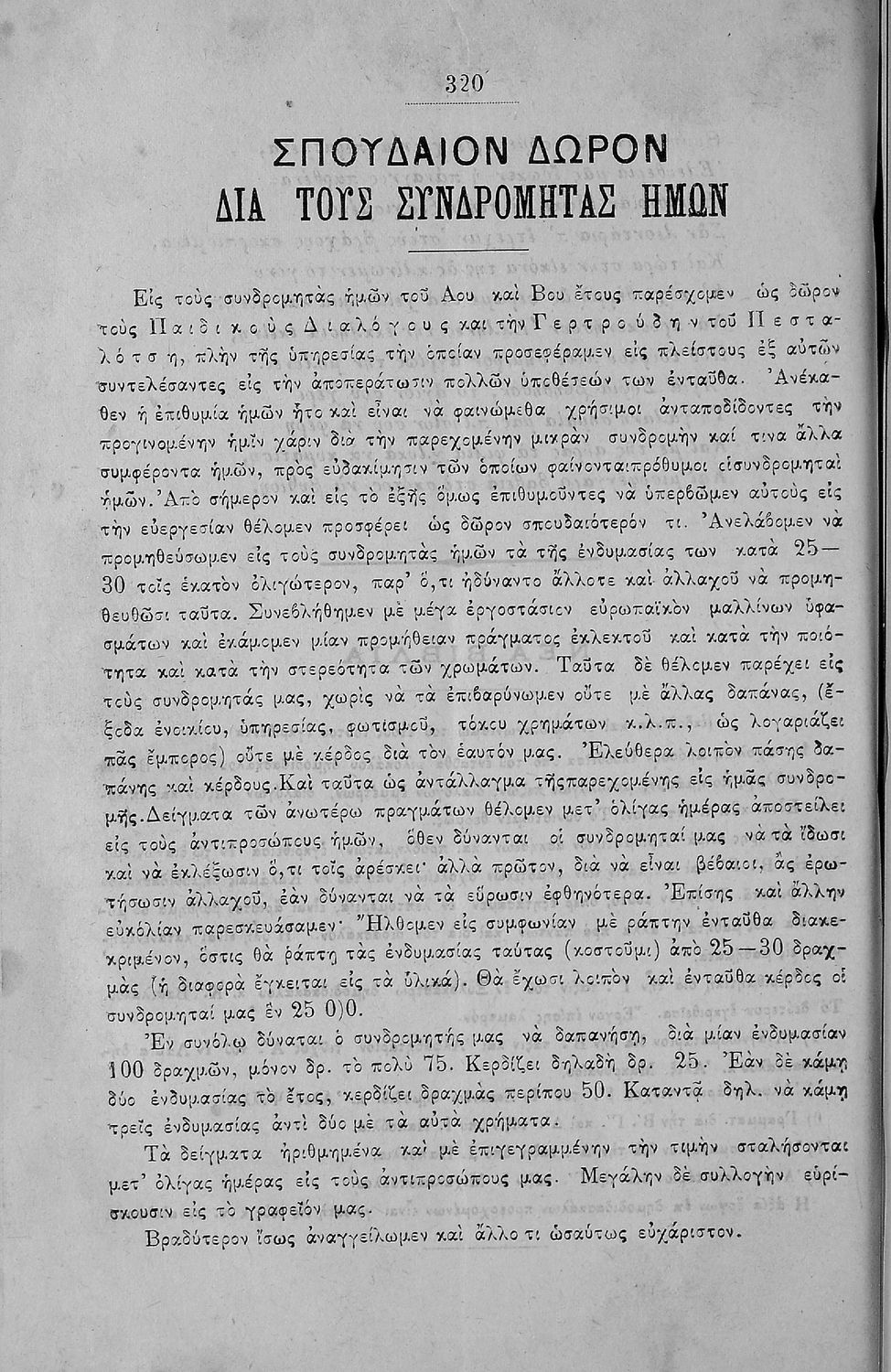 Περιέχει τα τεύχη του μηνιαίου παιδαγωγικού περιοδικού Το Σχολείον και η Οικογένεια που εκδόθηκαν από το Νοέμβριο του 1899 ως τον Οκτώβριο του 1903.