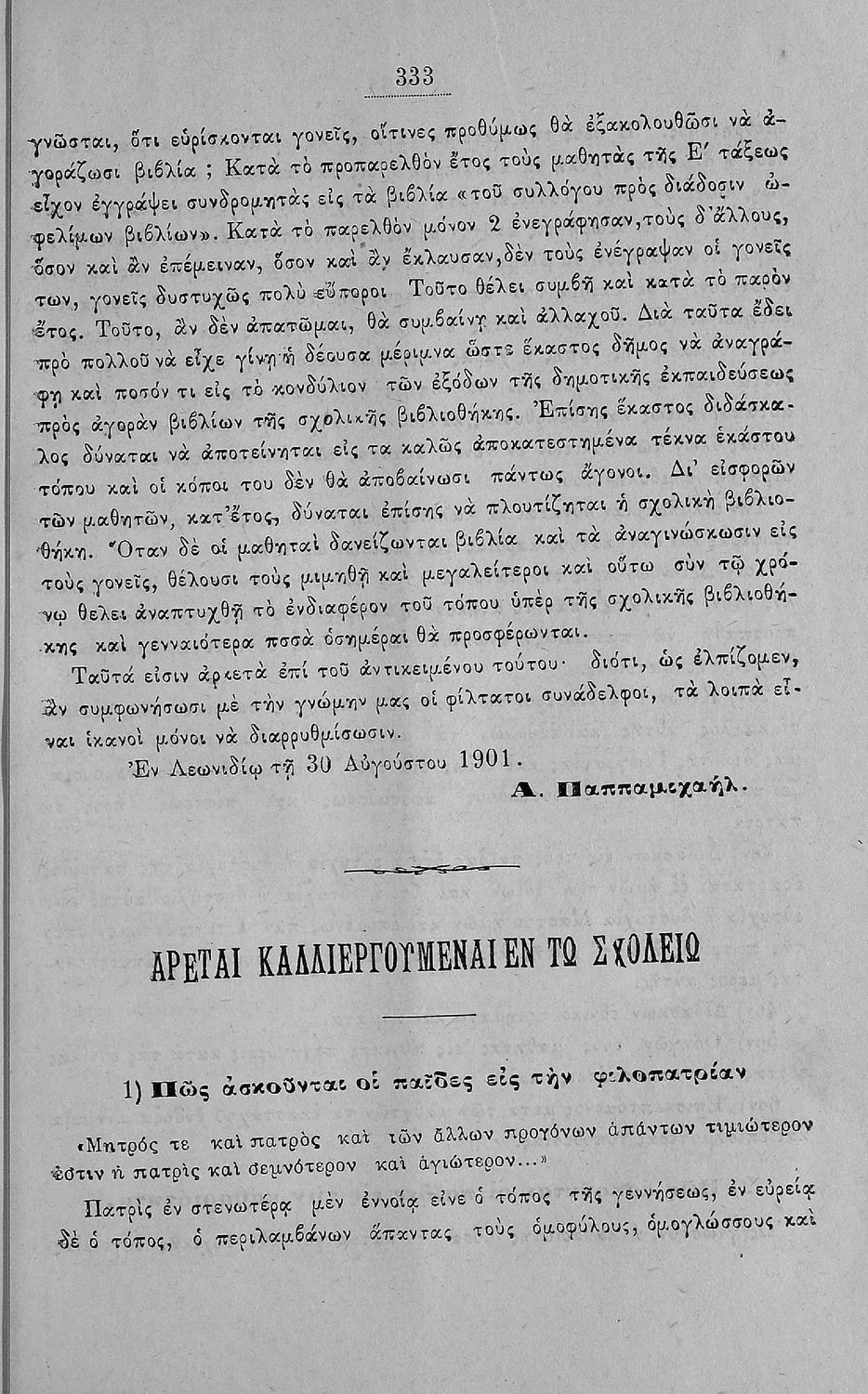 Τάξη:  Γ' Ελληνικού Σχολείου / Α' Αστικού Σχολείου Θηλέων