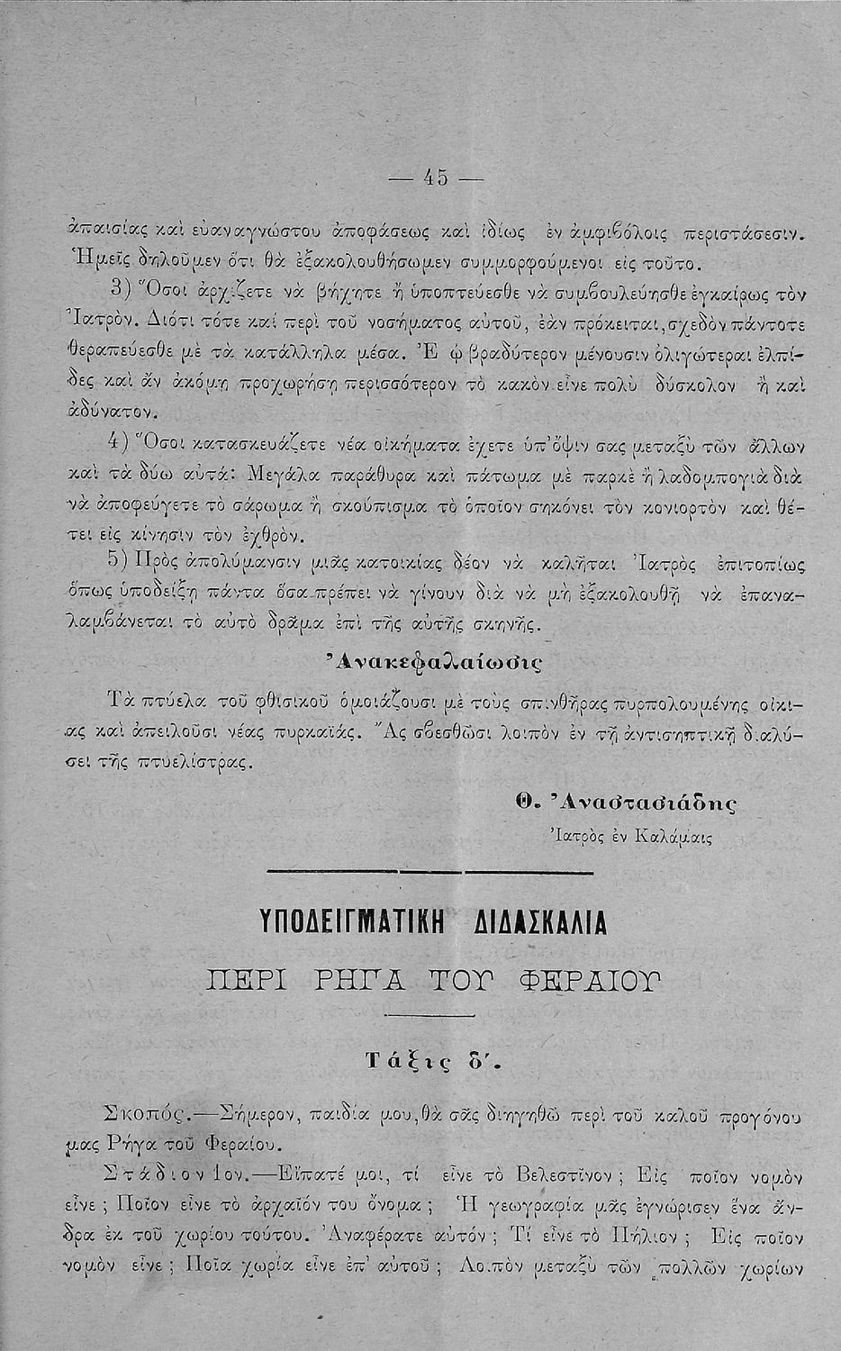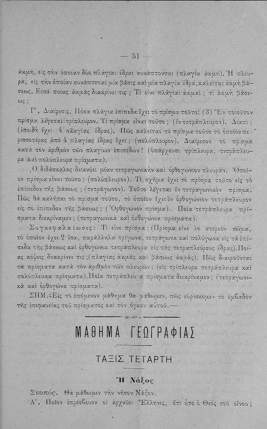 Τάξη:  Γ' Ελληνικού Σχολείου / Α' Αστικού Σχολείου Θηλέων