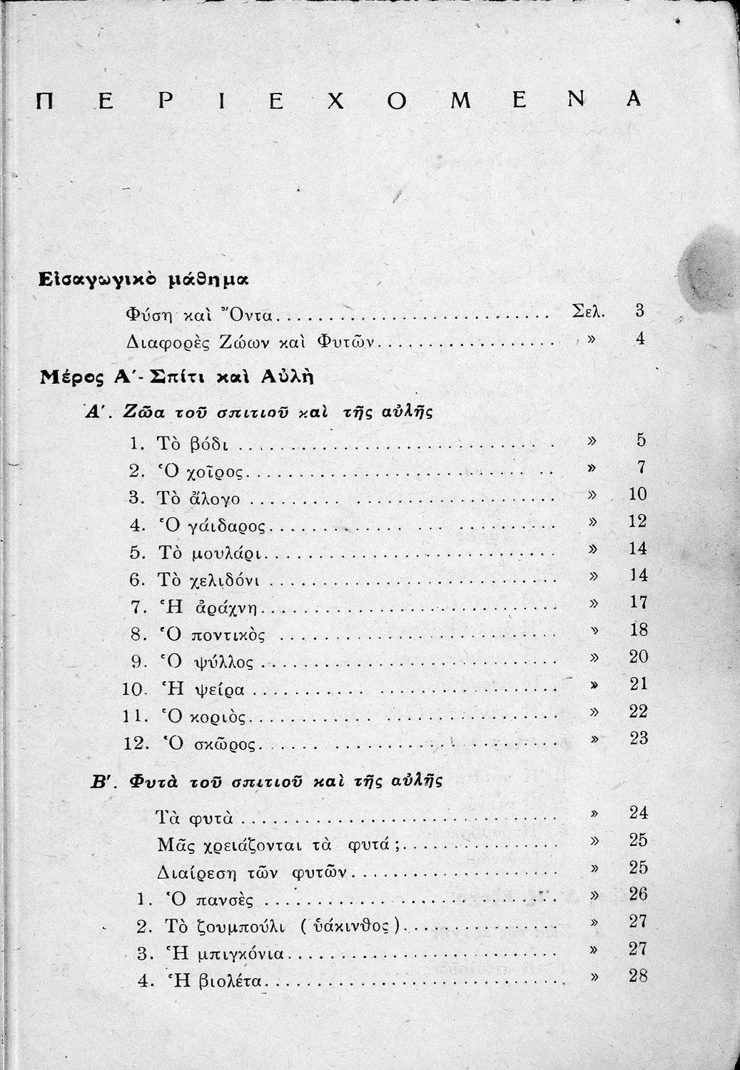 Μαθητικό βοήθημα της Δ΄ Δημοτικού για το μάθημα της Φυσικής Ιστορίας. Περιέχει πληροφορίες για τη φυτολογία και τη ζωολογία. Το βιβλίο έχει εικόνες, οι οποίες διευκολύνουν τη διδασκαλία. Ο λόγος των κειμένων είναι απλός και κατανοητός για τους μαθητές.