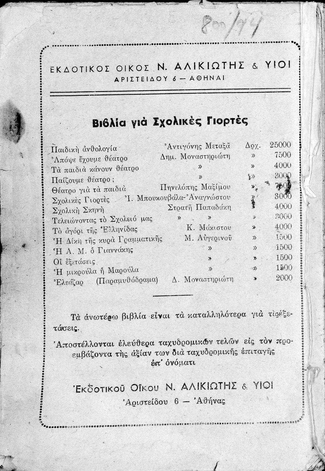 Εκδότης: Εκδοτικός Οίκος: Ν. Αλικιώτης και Υιοί Τόπος έκδοσης: Αθήνα Έκδοση: 5η |
