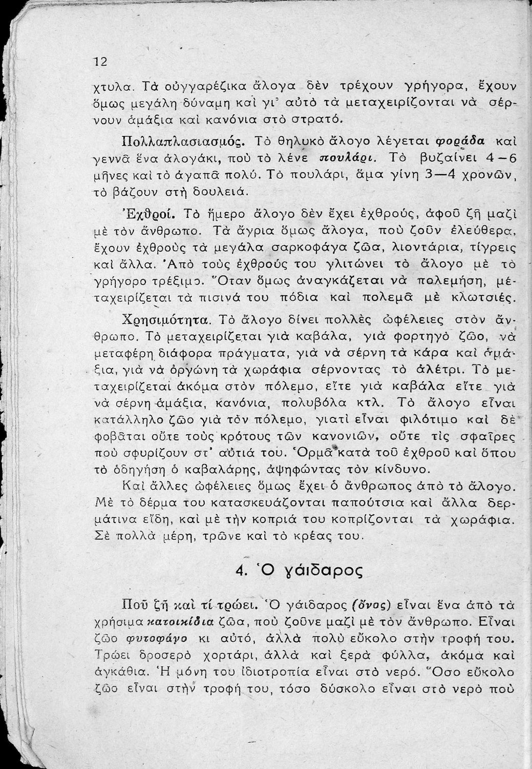 Αναγνωστικό Δ΄ Δημοτικού που περιέχει πεζά και ποιήματα με περιεχόμενο διδακτικό και ηθικοπλαστικό εμπνευσμένα από την ιστορία, την αγροτική ζωή, τη μυθολογία και την κοινωνική ζωή.