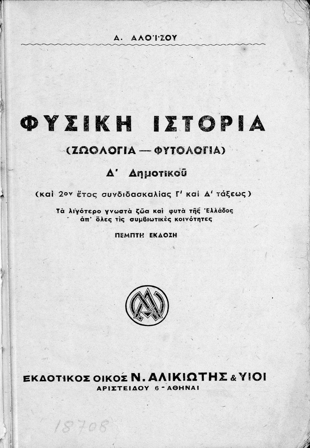 Τίτλος: Φυσική Ιστορία (Ζωολογία-Φυτολογία) Δ΄ Δημοτικού