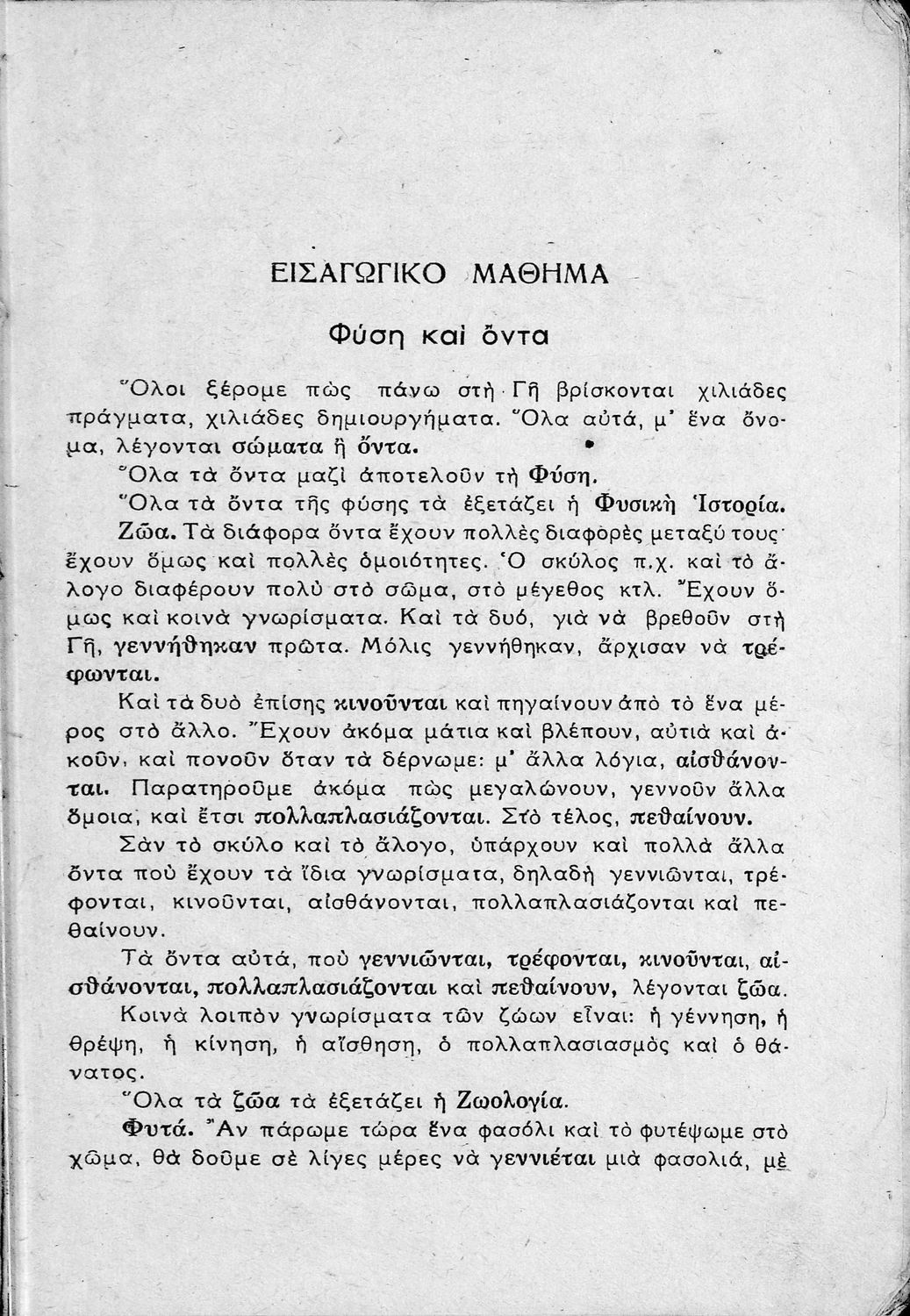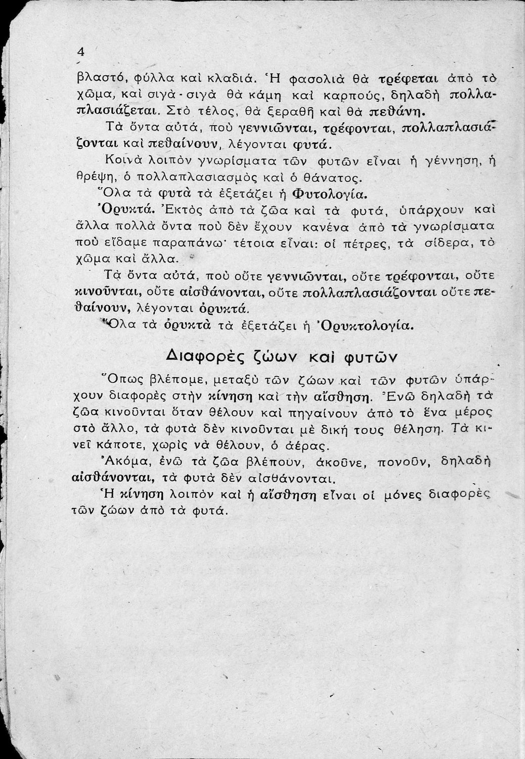 Μαθητικό βοήθημα της Δ΄ Δημοτικού για το μάθημα της Φυσικής Ιστορίας. Περιέχει πληροφορίες για τη φυτολογία και τη ζωολογία. Το βιβλίο έχει εικόνες, οι οποίες διευκολύνουν τη διδασκαλία. Ο λόγος των κειμένων είναι απλός και κατανοητός για τους μαθητές.
