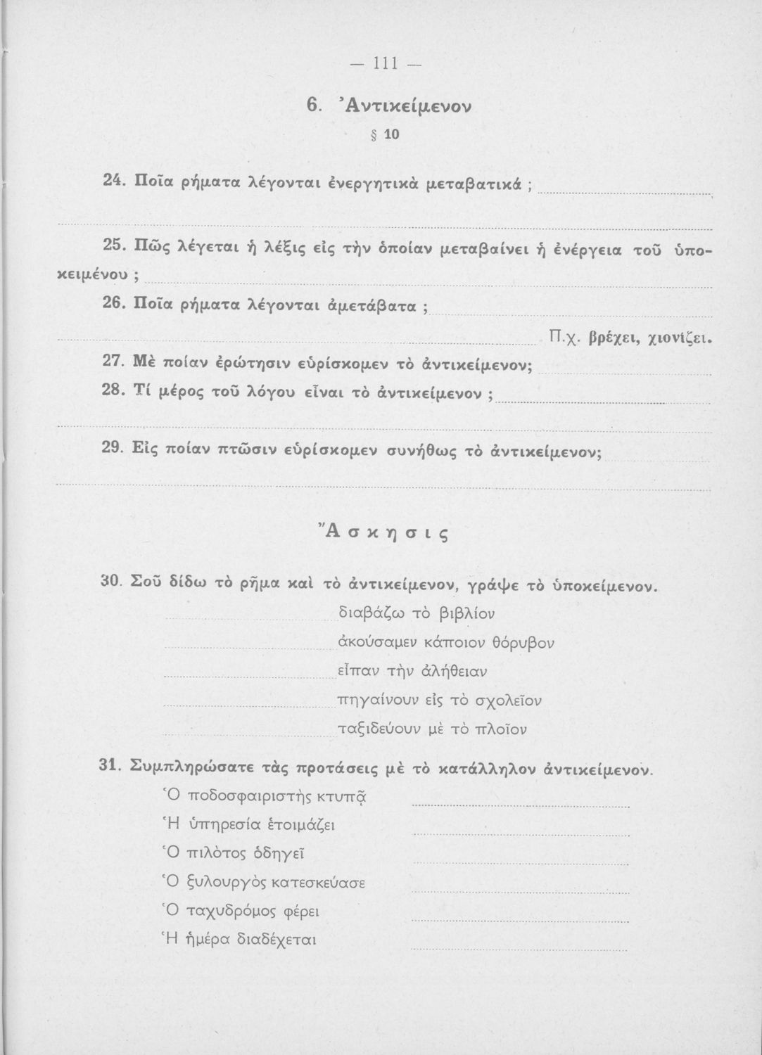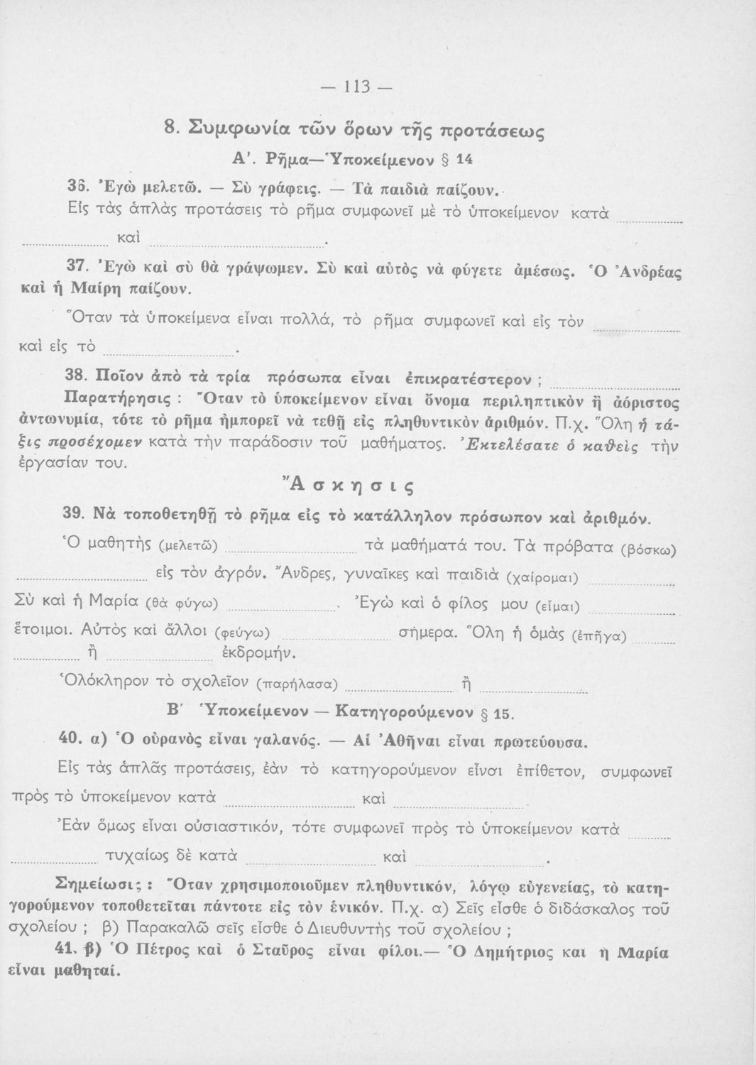 Μαθητικό βοήθημα Γλώσσας που περιέχει γραμματικές ασκήσεις για τους μαθητές των ανώτερων τάξεων του Δημοτικού Σχολείου.