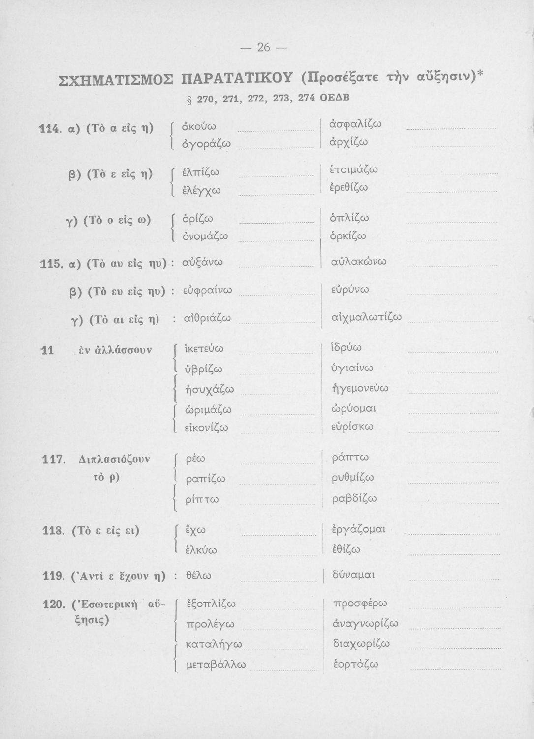 Μαθητικό βοήθημα Αρχαίων Ελληνικών Γυμνασίου, Ελληνικού Σχολείου και Παρθεναγωγείου που περιέχει τα ανώμαλα ρήματα της αττικής διαλέκτου και γραμματικές σημειώσεις.