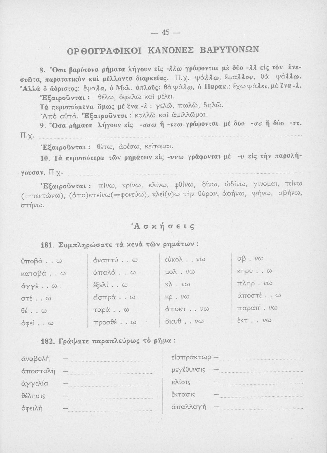 Γραμματικαί ασκήσεις της ελληνικής γλώσσης προς χρήσιν των μαθητών των ανωτέρων τάξεων του Δημοτικού Σχολείου