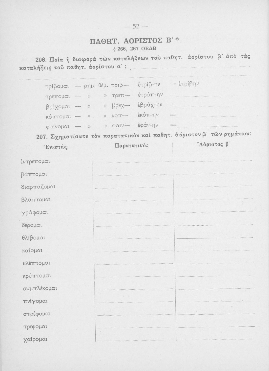 Μαθητικό βοήθημα Αρχαίων Ελληνικών Γυμνασίου, Ελληνικού Σχολείου και Παρθεναγωγείου που περιέχει τα ανώμαλα ρήματα της αττικής διαλέκτου και γραμματικές σημειώσεις.