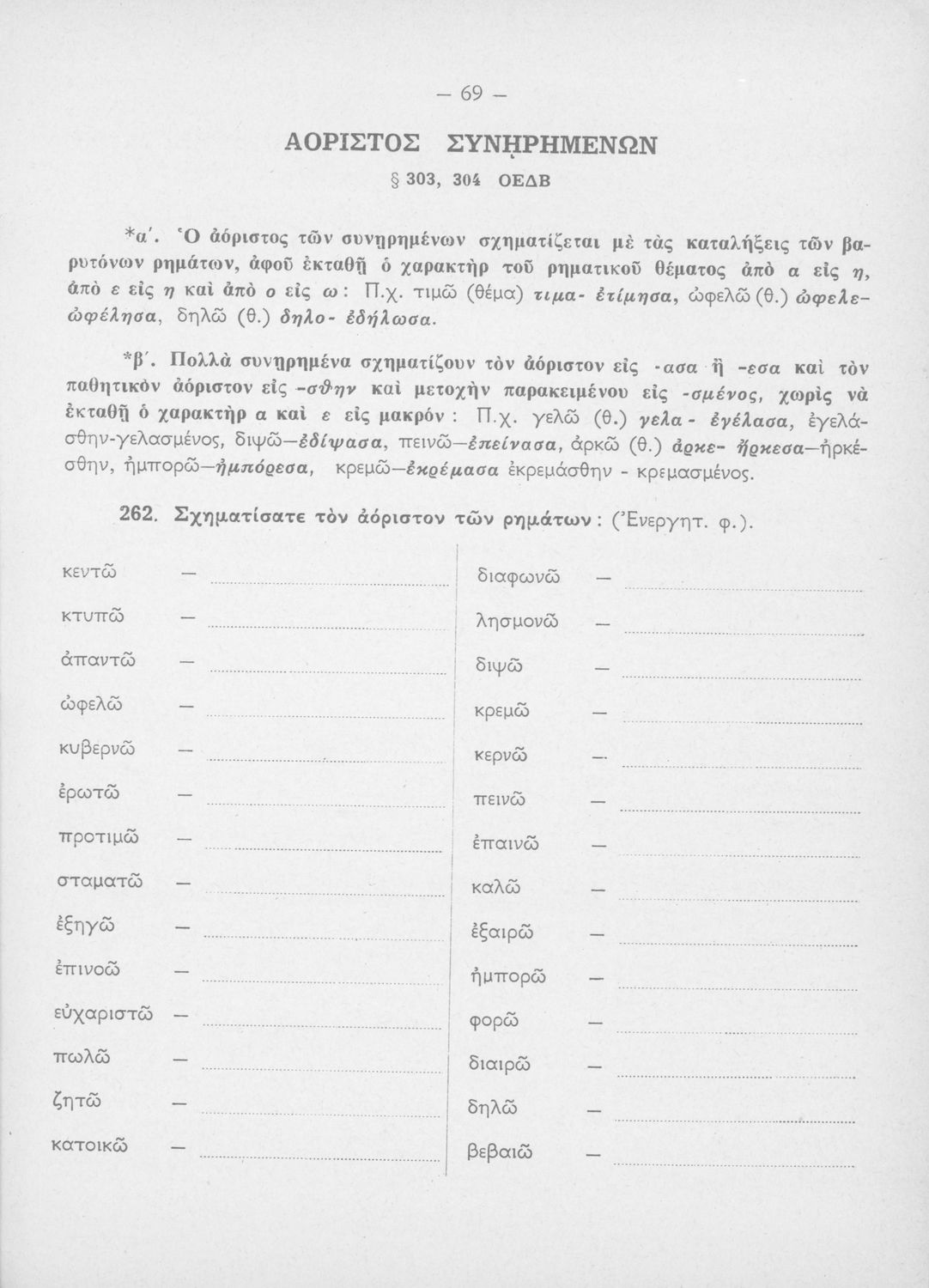 Μαθητικό βοήθημα Αρχαίων Ελληνικών Γυμνασίου, Ελληνικού Σχολείου και Παρθεναγωγείου που περιέχει τα ανώμαλα ρήματα της αττικής διαλέκτου και γραμματικές σημειώσεις.