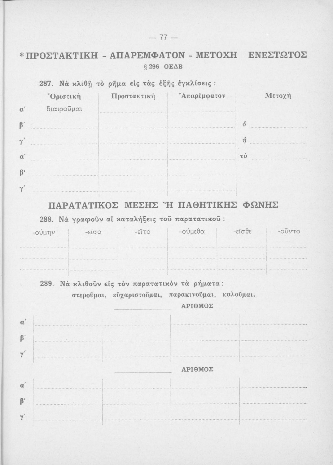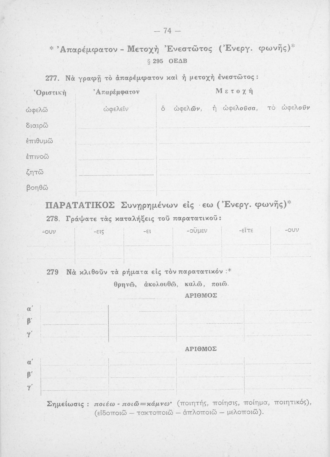 Μαθητικό βοήθημα Γλώσσας που περιέχει γραμματικές ασκήσεις για τους μαθητές των ανώτερων τάξεων του Δημοτικού Σχολείου.