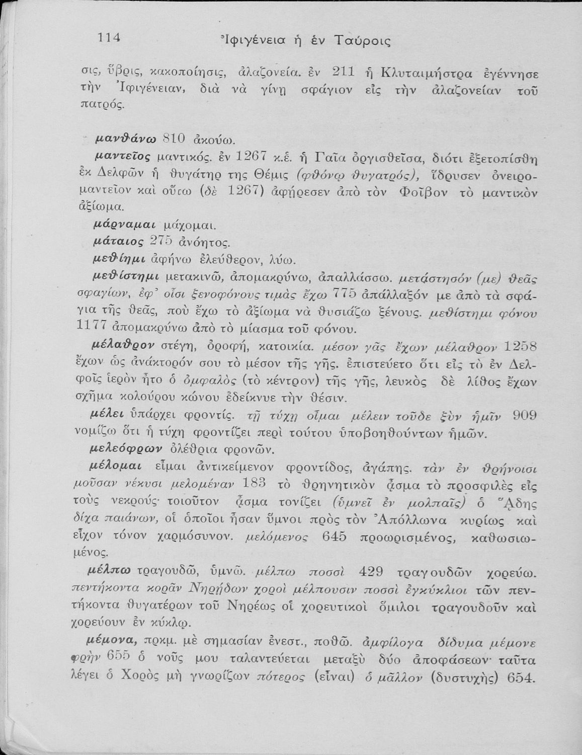 Σχολικό εγχειρίδιο Αρχαίων Ελληνικών Ζ' Γυμνασίου που περιέχει αποσπάσματα από την τραγωδία του Ευριπίδη Ιφιγένεια η εν Ταύροις, ερμηνευτικά και πραγματολογικά σχόλια και λεξιλογικές παρατηρήσεις.