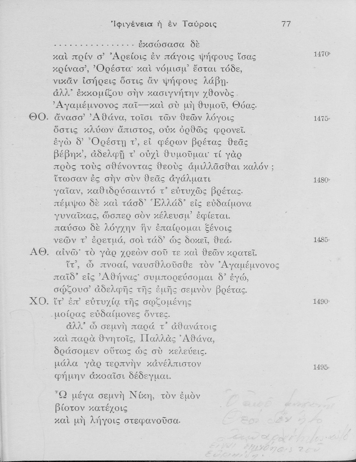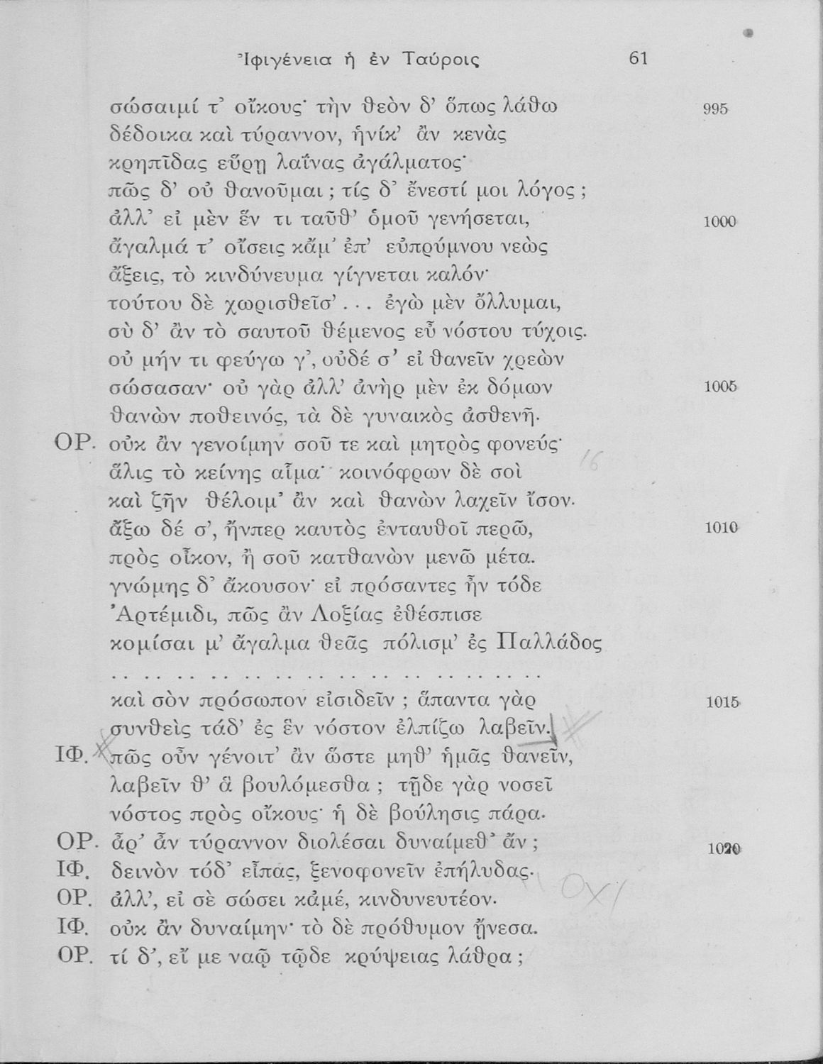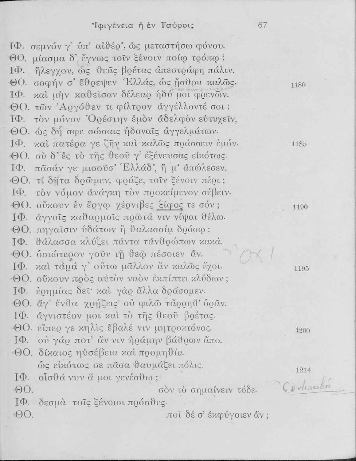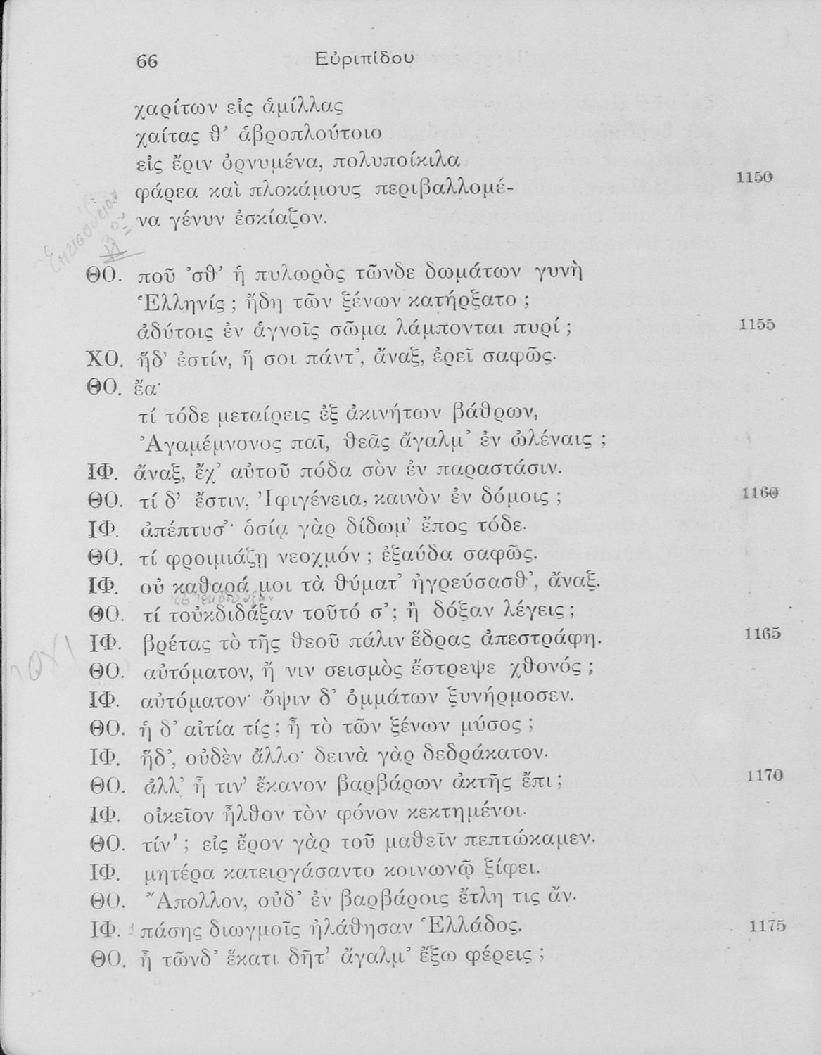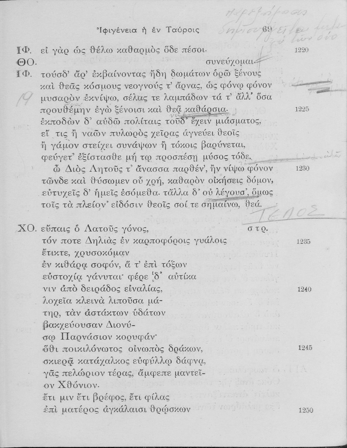 Τίτλος: Ευριπίδου Ιφιγένεια η εν Ταύροις δια την εβδόμην Τάξιν των Οκτατάξιων Γυμνασίων