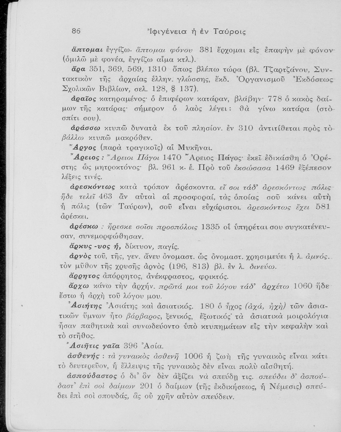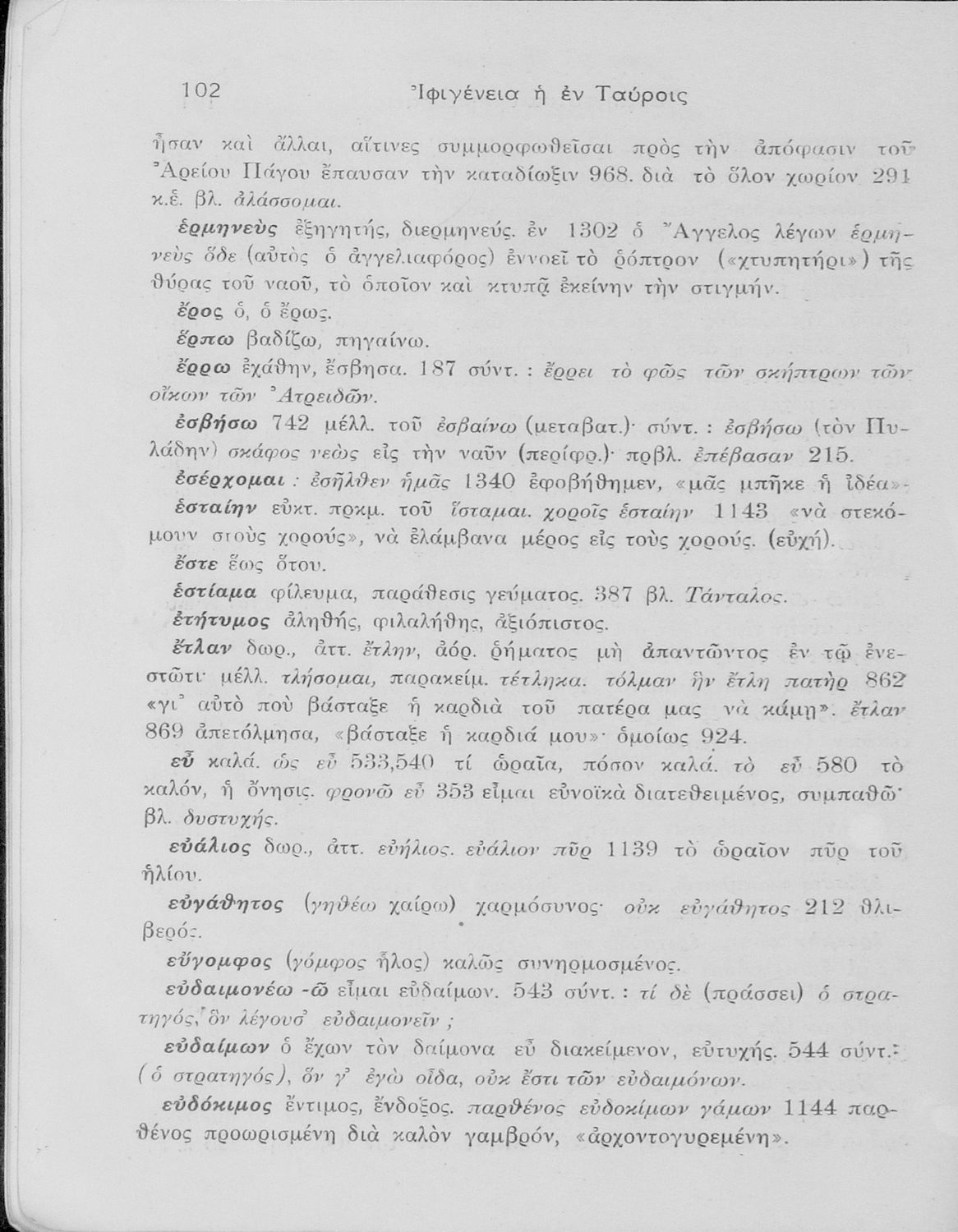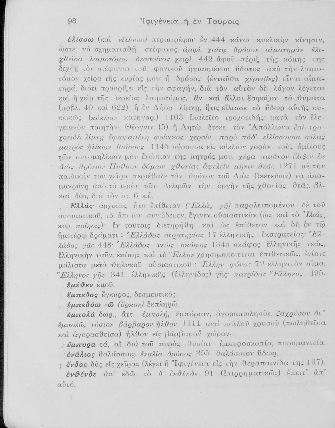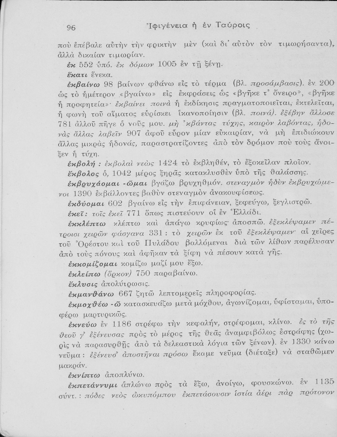 Σχολικό εγχειρίδιο Αρχαίων Ελληνικών Ε΄ Γυμνασίου που περιέχει αποσπάσματα από την τραγωδία του Ευριπίδη Ιφιγένεια η εν Ταύροις, ερμηνευτικά και πραγματολογικά σχόλια και λεξιλογικές παρατηρήσεις.