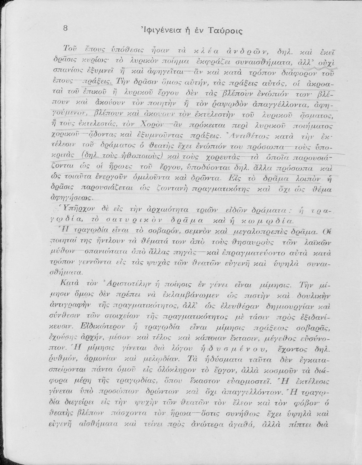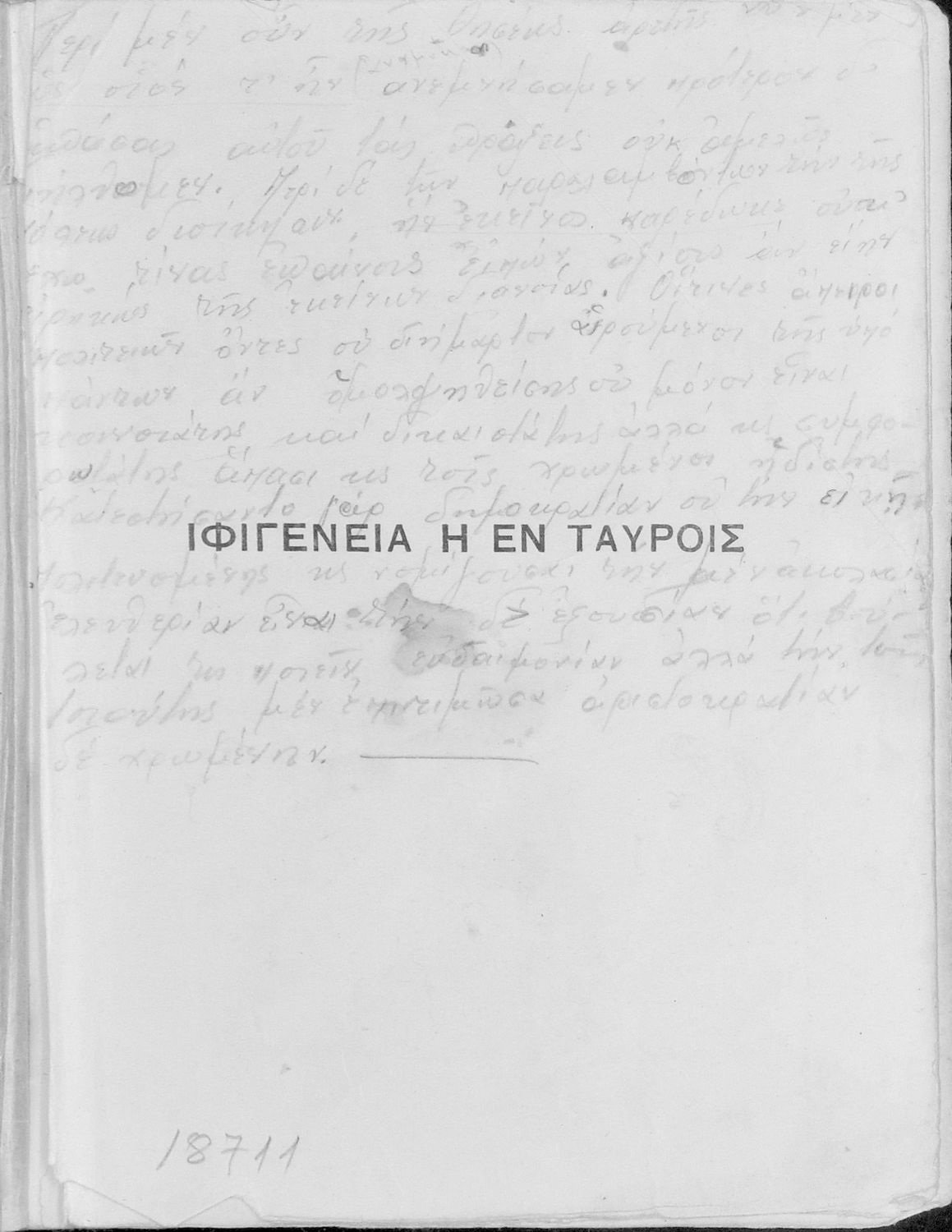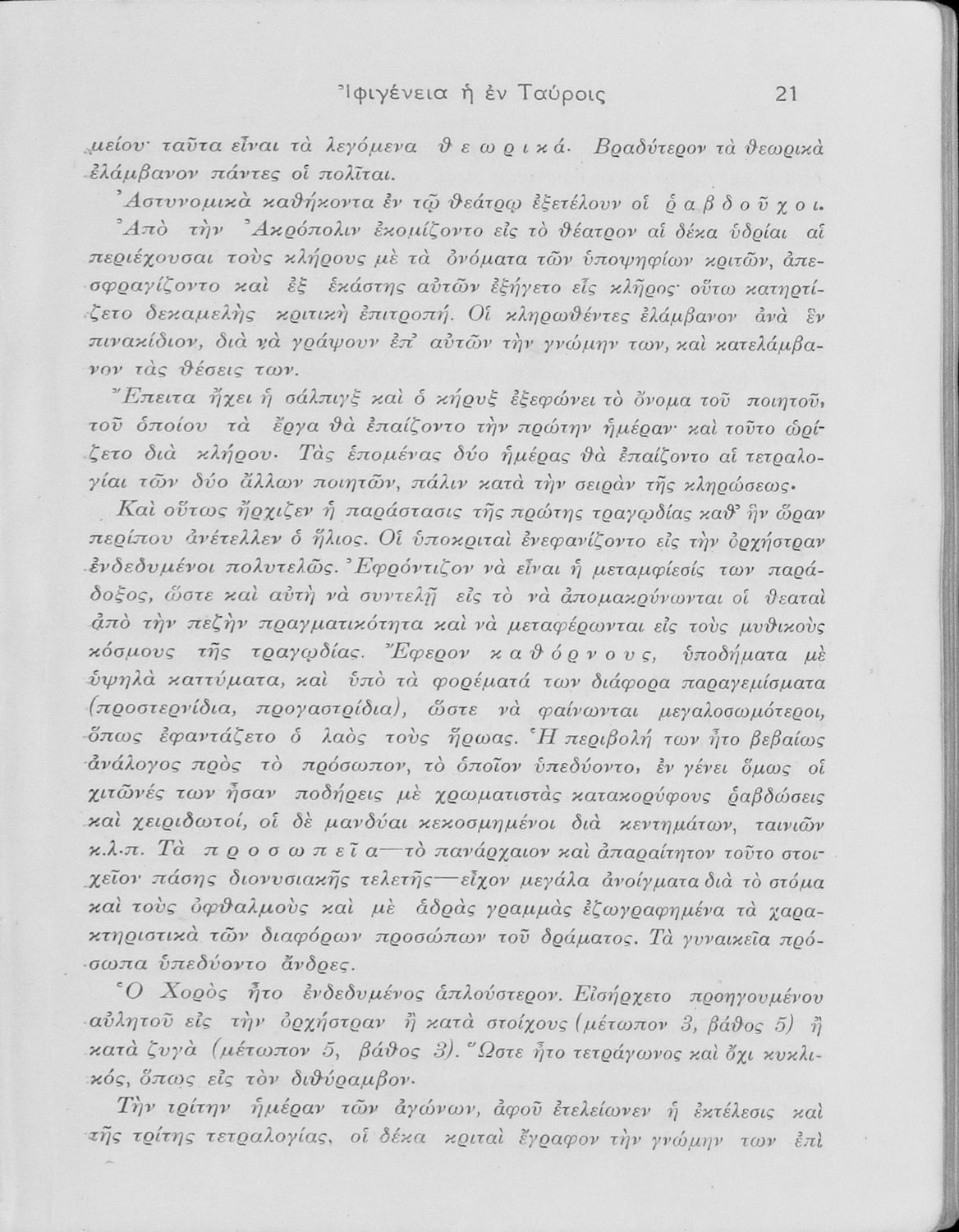 Σχολικό εγχειρίδιο Αρχαίων Ελληνικών Ζ' Γυμνασίου που περιέχει αποσπάσματα από την τραγωδία του Ευριπίδη Ιφιγένεια η εν Ταύροις, ερμηνευτικά και πραγματολογικά σχόλια και λεξιλογικές παρατηρήσεις.