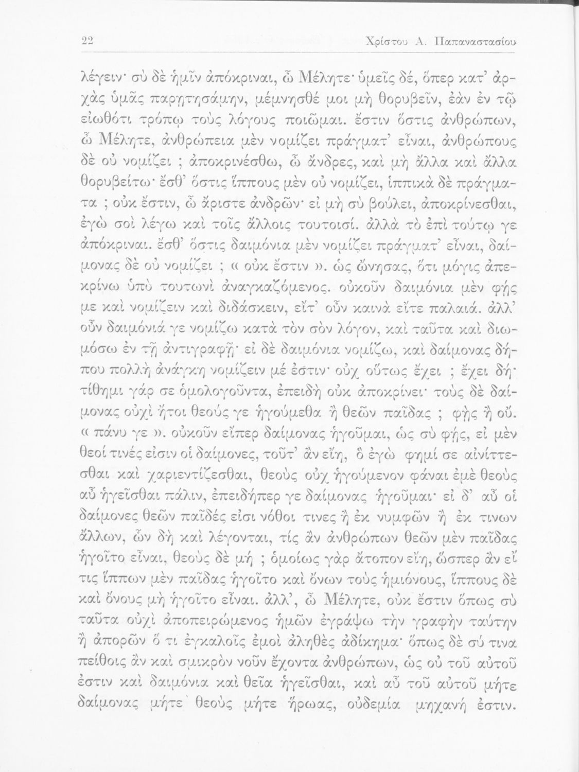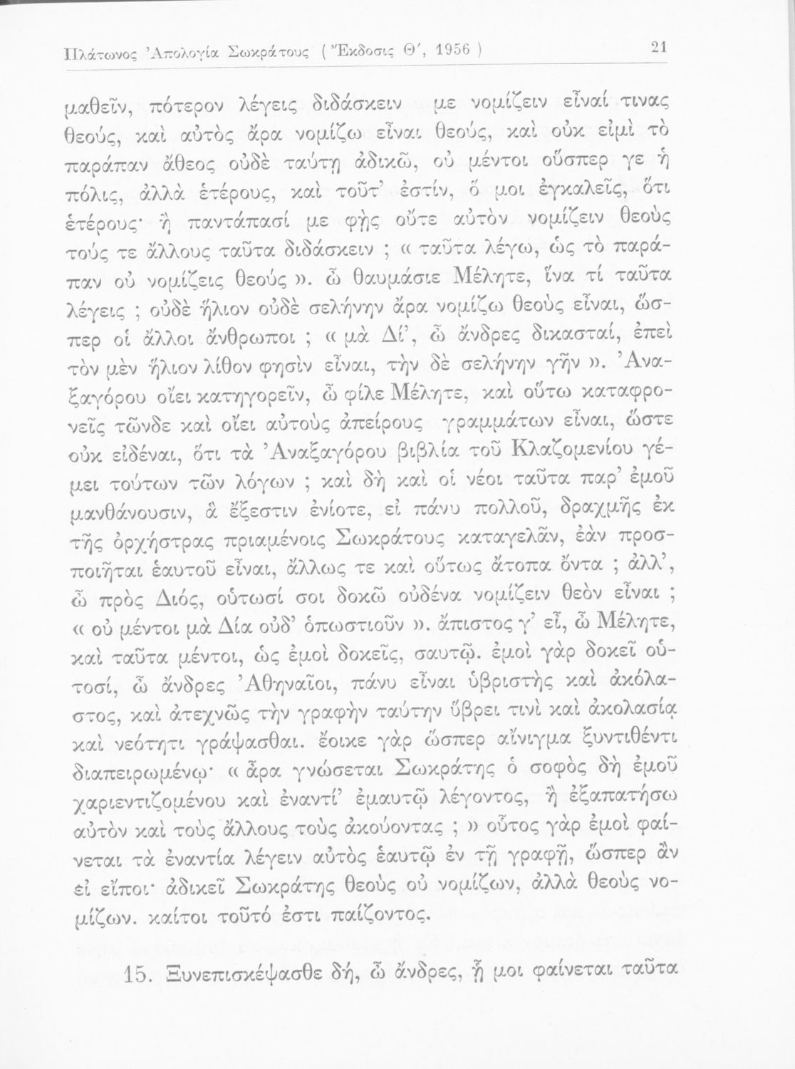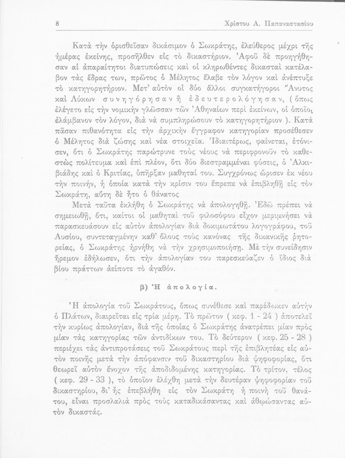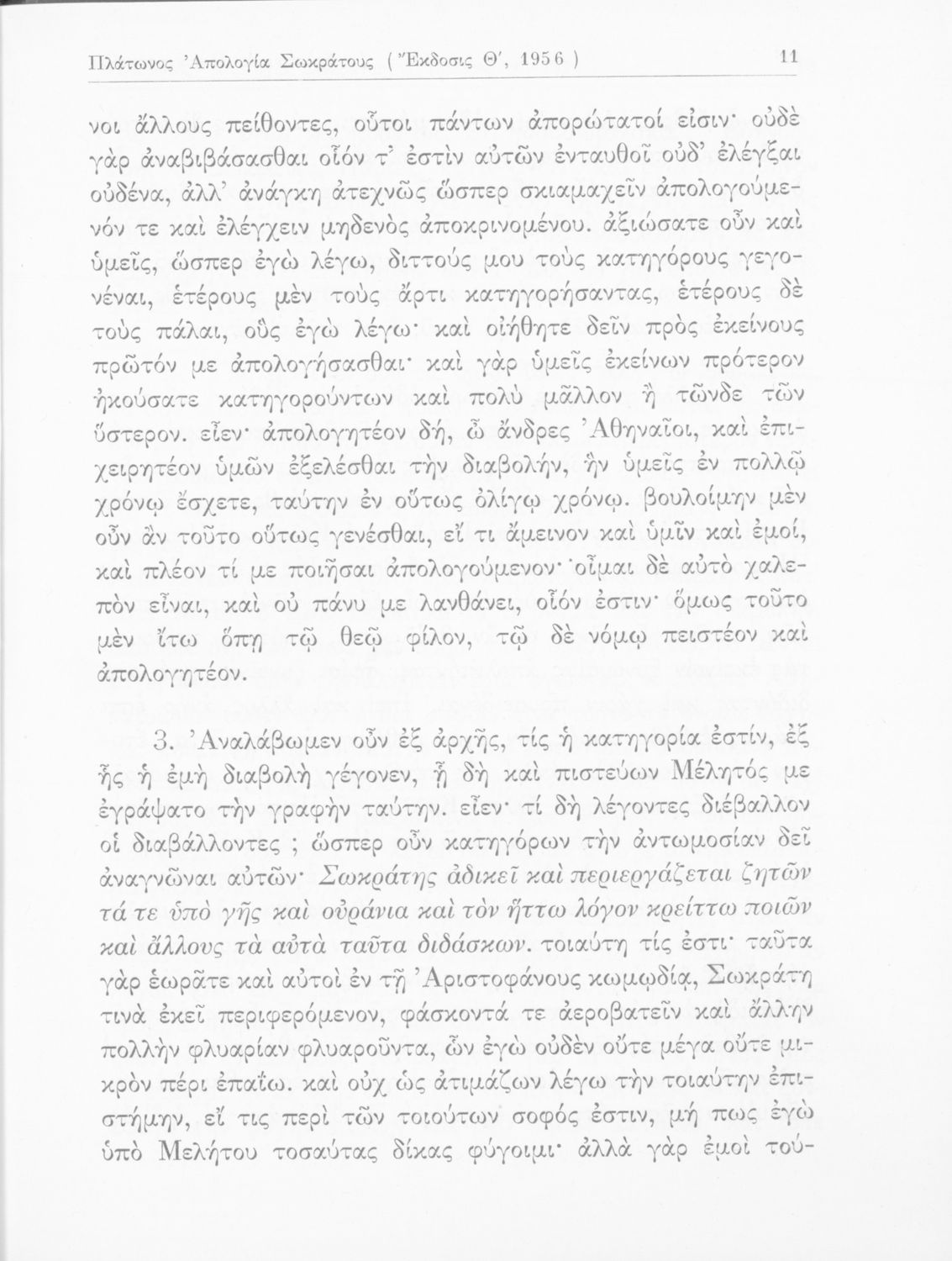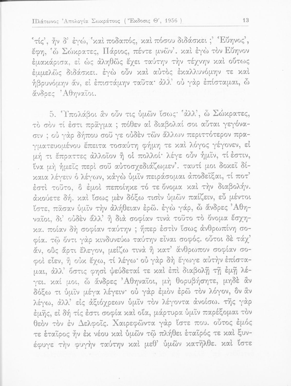 Βαθμίδα εκπαίδευσης: Δευτεροβάθμια Τάξη: Γυμνάσιο Μάθημα: Αρχαία Ελληνικά Γλώσσα: Απλή καθαρεύουσα Παρουσίαση περιεχομένου: Σχολικό εγχειρίδιο Αρχαίων Ελληνικών Γυμνασίου που περιέχει τα έργα του Πλάτωνα Απολογία Σωκράτους και Κρίτων, ερμηνευτικά και πραγματολογικά σχόλια και λεξιλογικές παρατηρήσεις. |