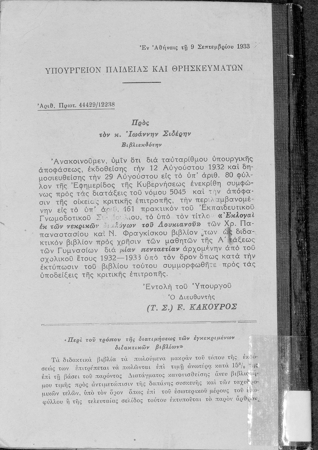 Τίτλος: Λουκιανού Νεκρικοί Διάλογοι εκλογαί. Προς χρήσιν της Α΄ Τάξεως Εξαταξίων Γυμνασίων