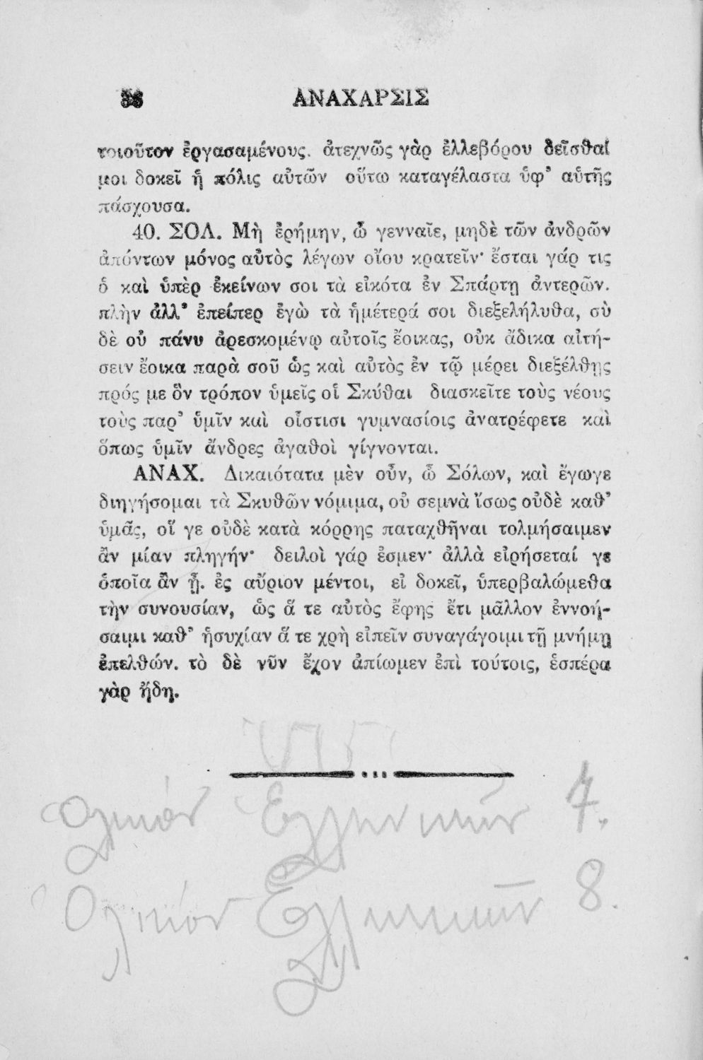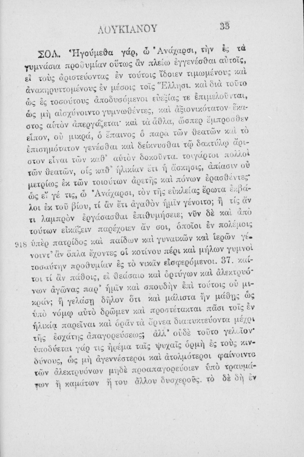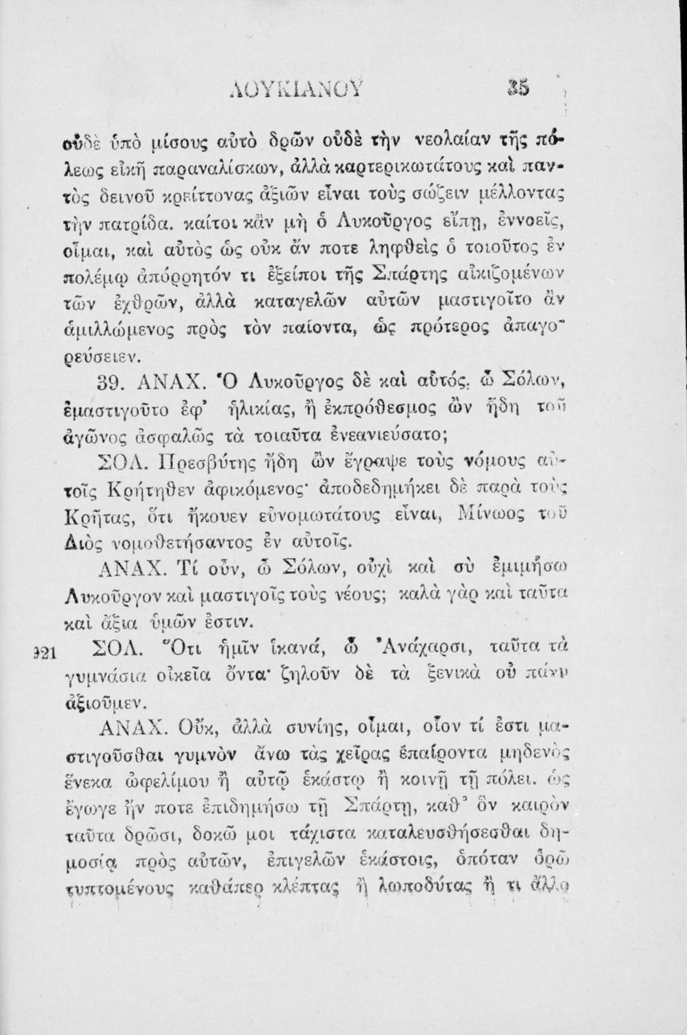 Σχολικό εγχειρίδιο Αρχαίων Ελληνικών περιλαμβάνει τα έργα του Λουκιανού Ενύπνιον και Ανάχαρσις .