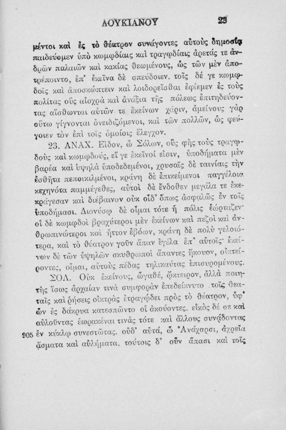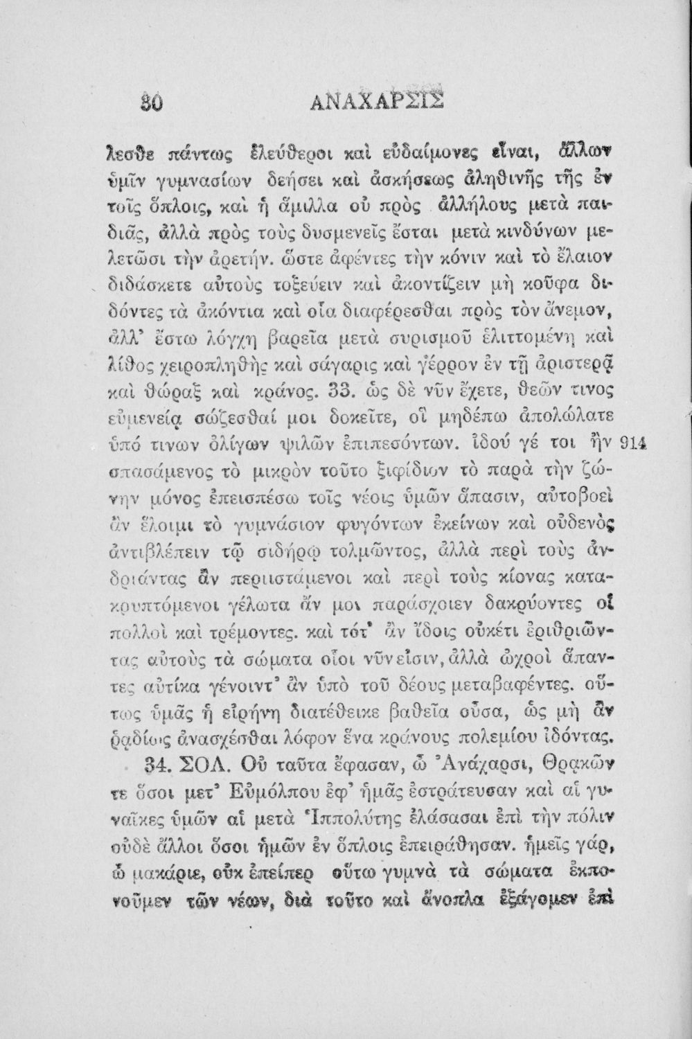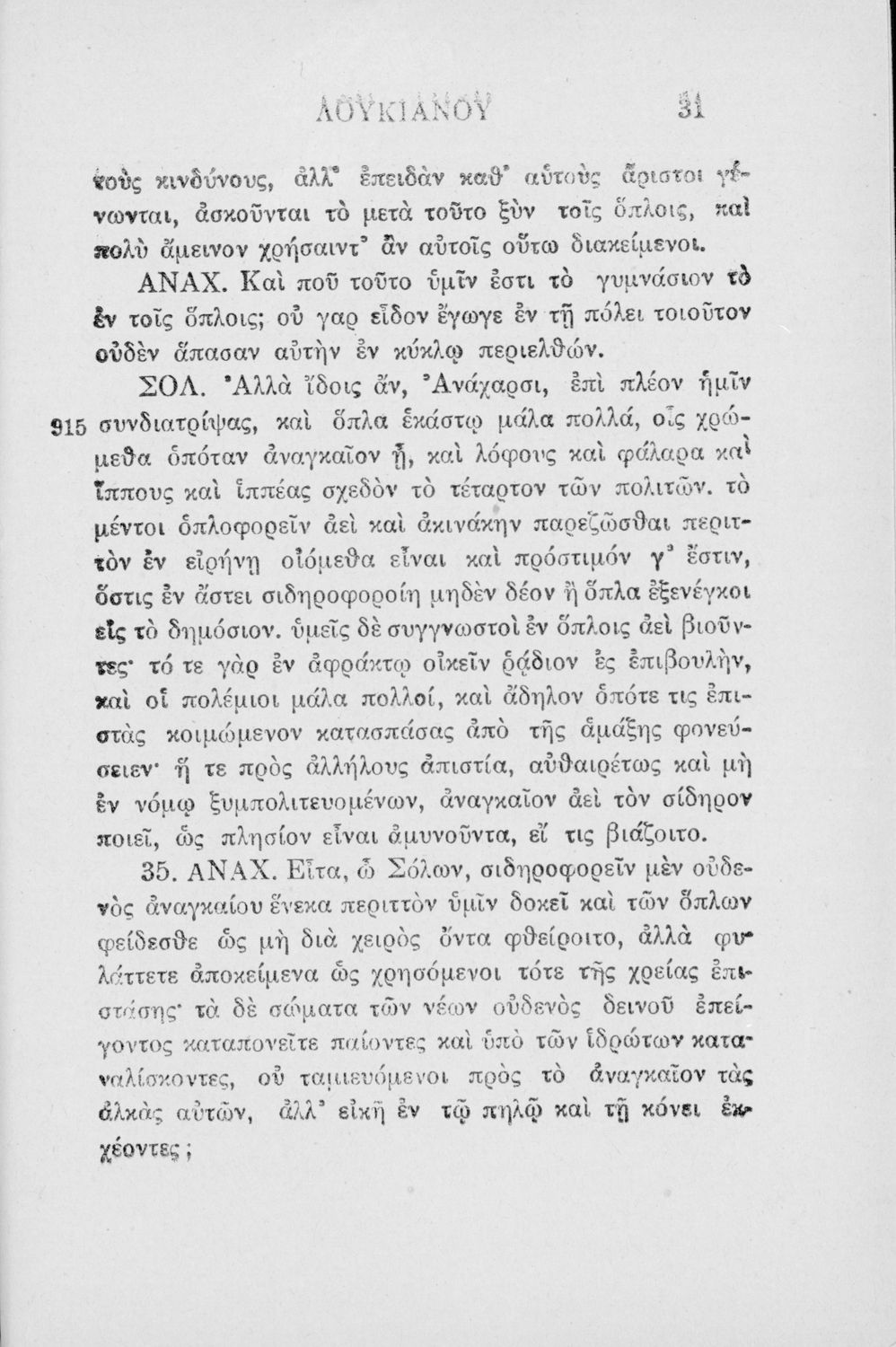 Σχολικό εγχειρίδιο Αρχαίων Ελληνικών περιλαμβάνει τα έργα του Λουκιανού Ενύπνιον και Ανάχαρσις .