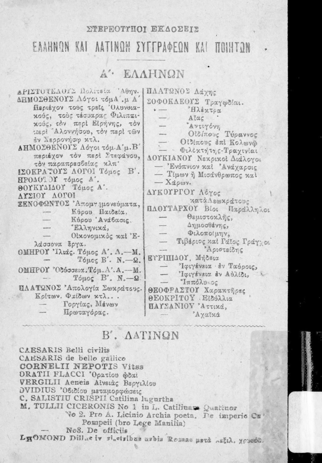 Μαθητικό βοήθημα Αρχαίων Ελληνικών για τα Αστικά Σχολεία και Παρθεναγωγεία που περιέχει μετάφραση αποσπασμάτων από το έργο του Αρριανού Αλέξανδρου Ανάβασις και του Λουκιανού Νεκρικοί Διάλογοι, ερμηνευτικά και ...