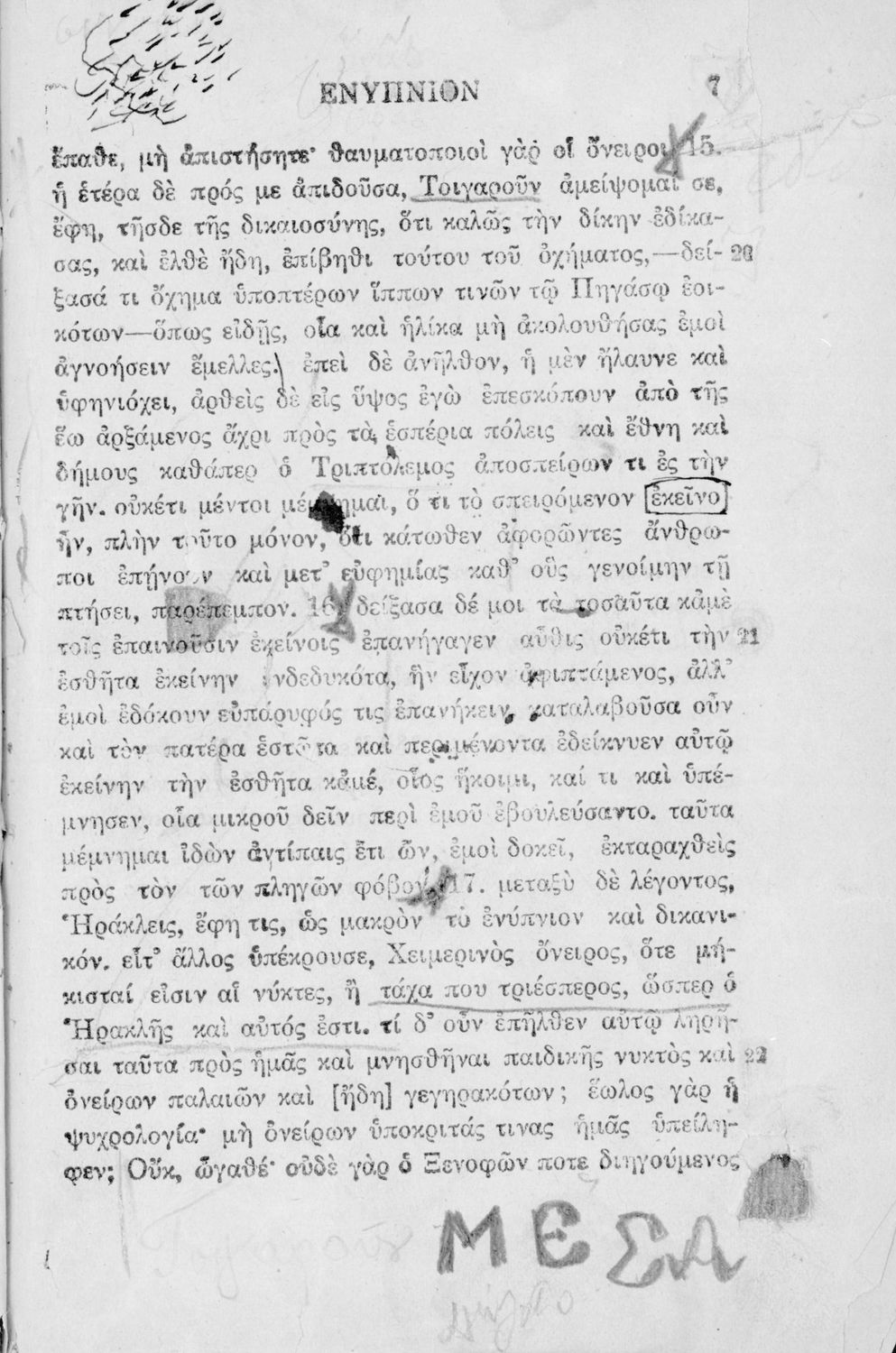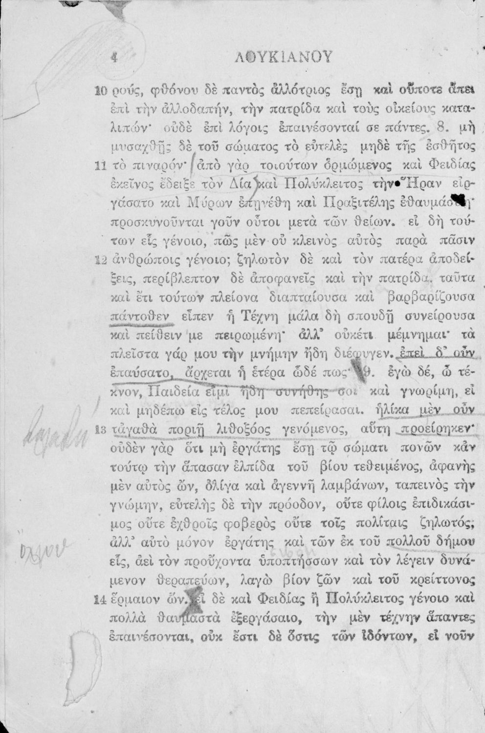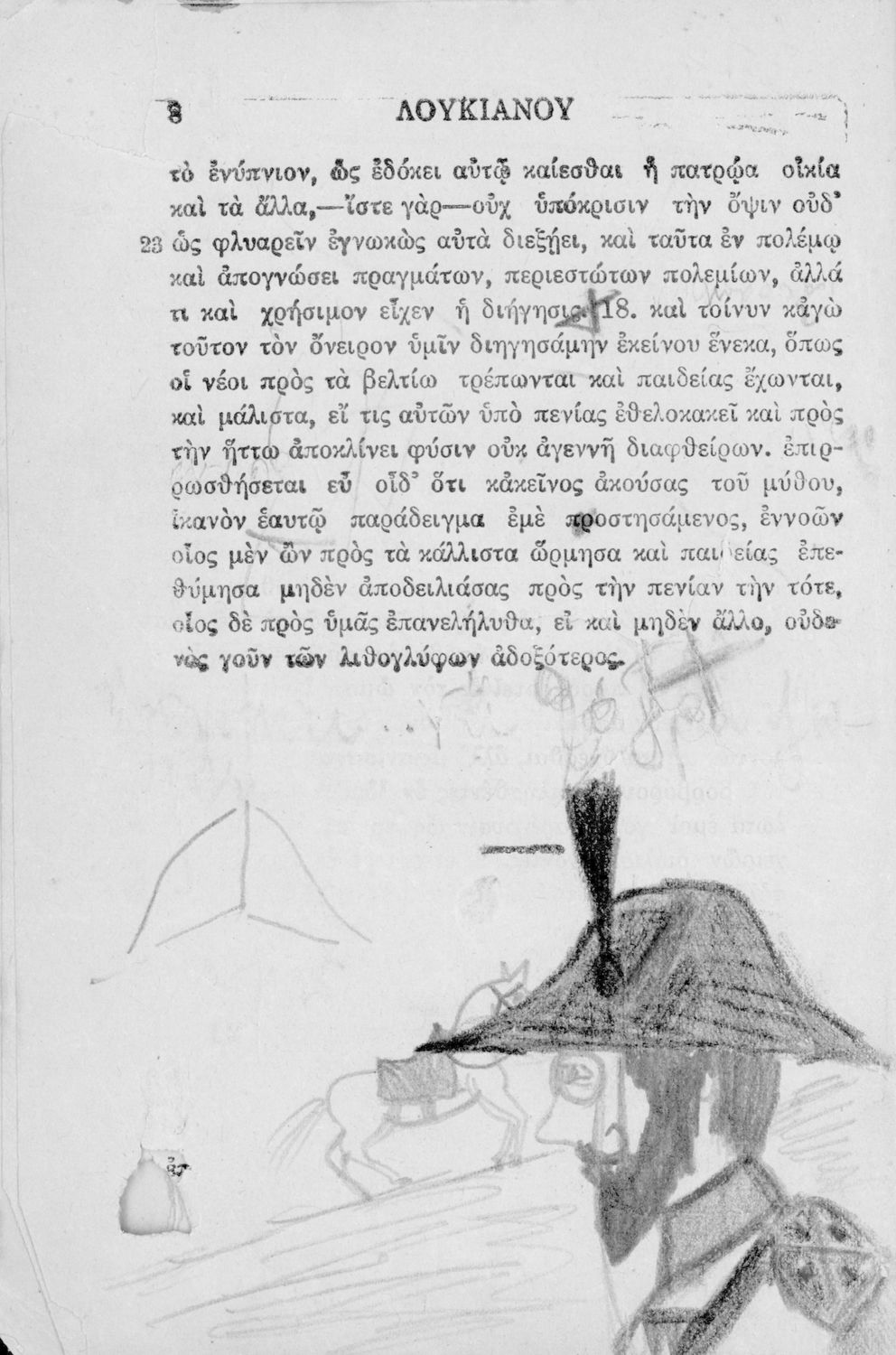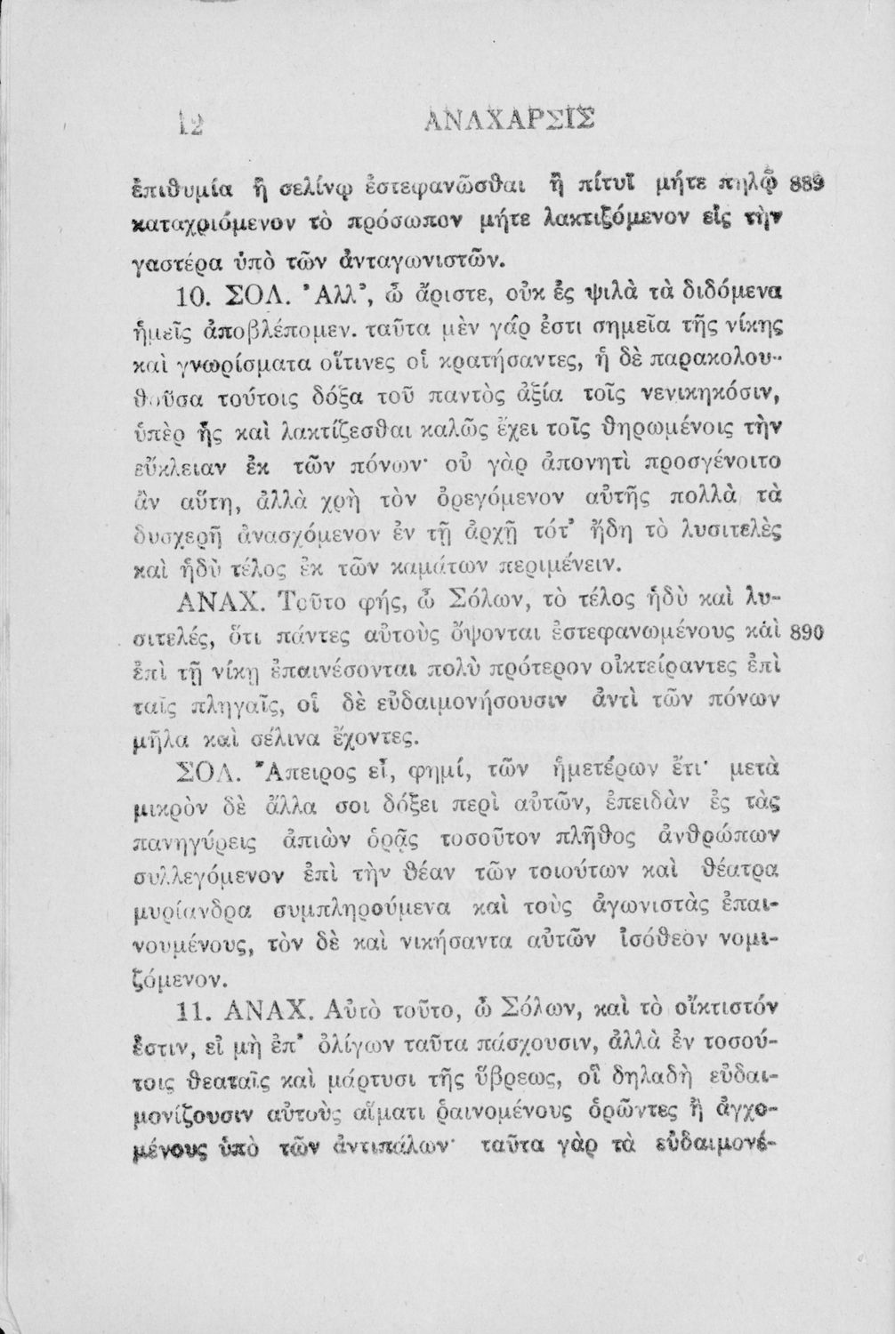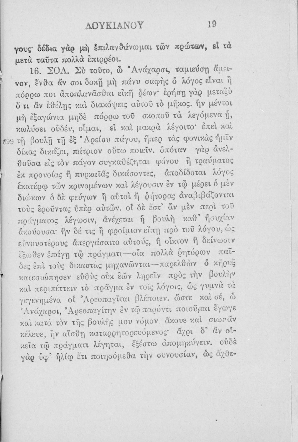 Σχολικό εγχειρίδιο Αρχαίων Ελληνικών περιλαμβάνει τα έργα του Λουκιανού Ενύπνιον και Ανάχαρσις .