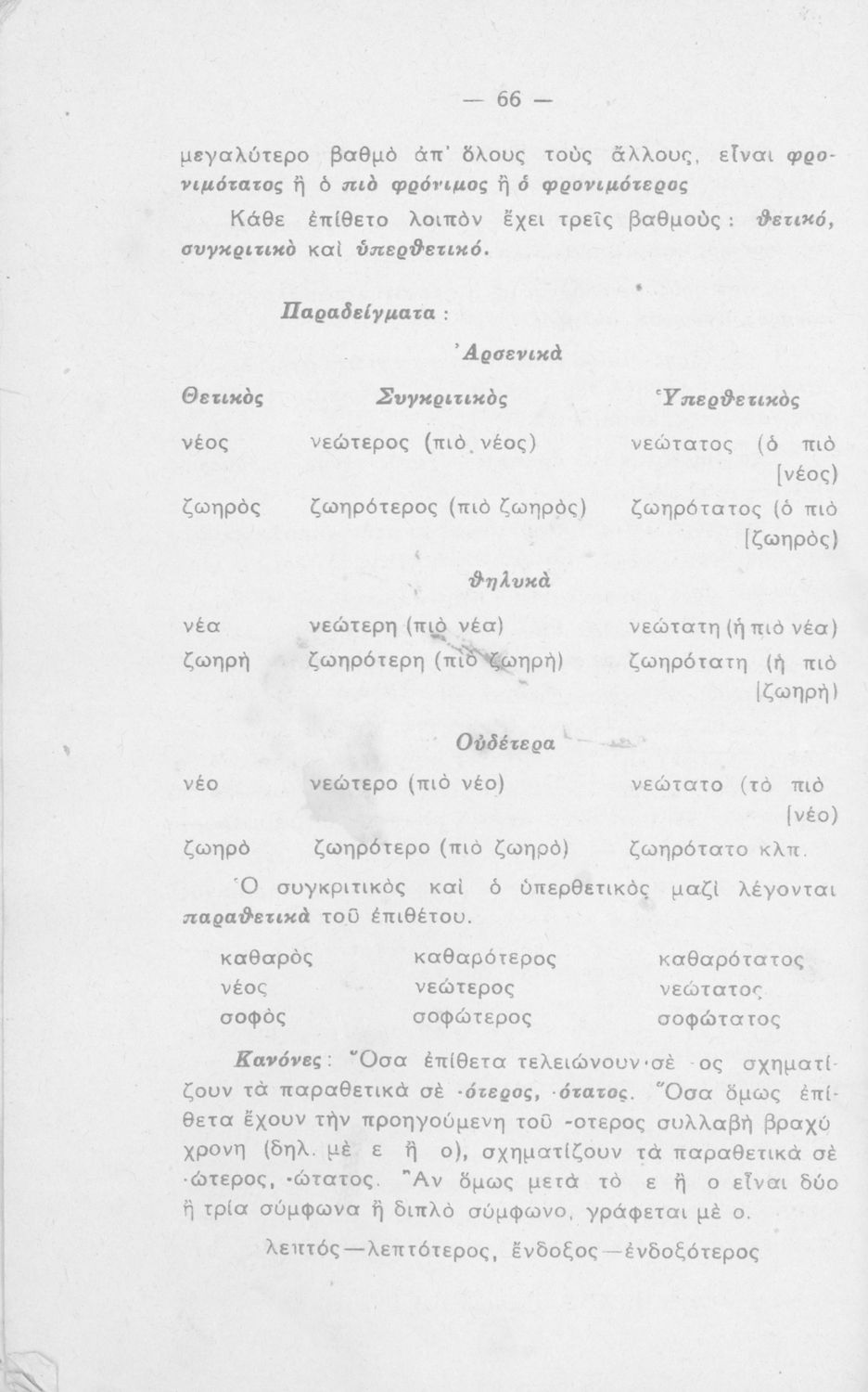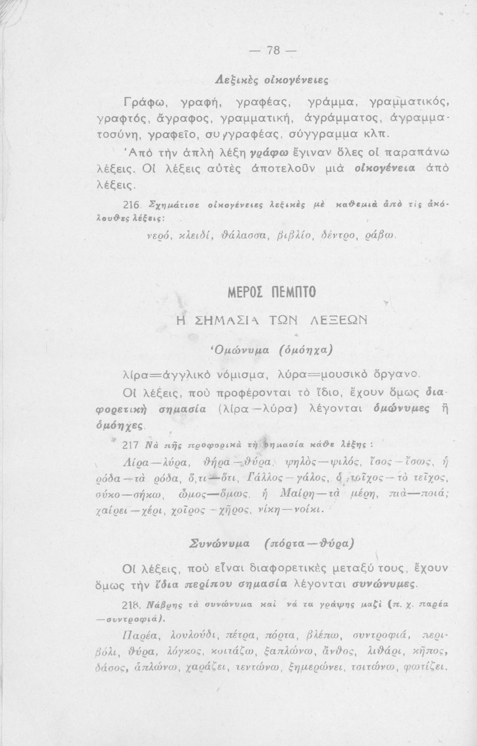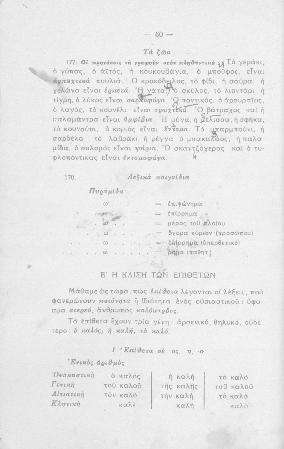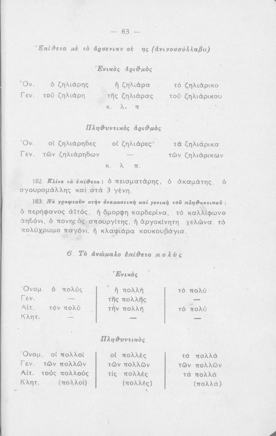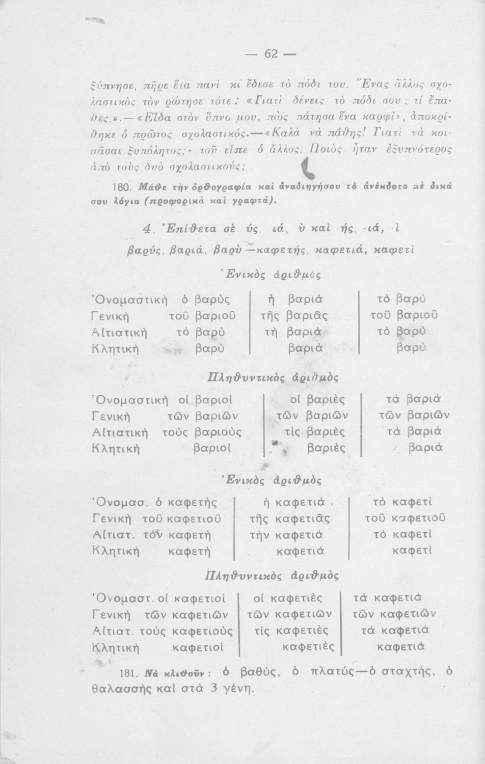 Σχολικό εγχειρίδιο για την Ε΄ και ΣΤ΄ τάξη Δημοτικού με γραμματικούς κανόνες και παραδείγματα για τα κλιτά και άκλιτα μέρη του λόγου.