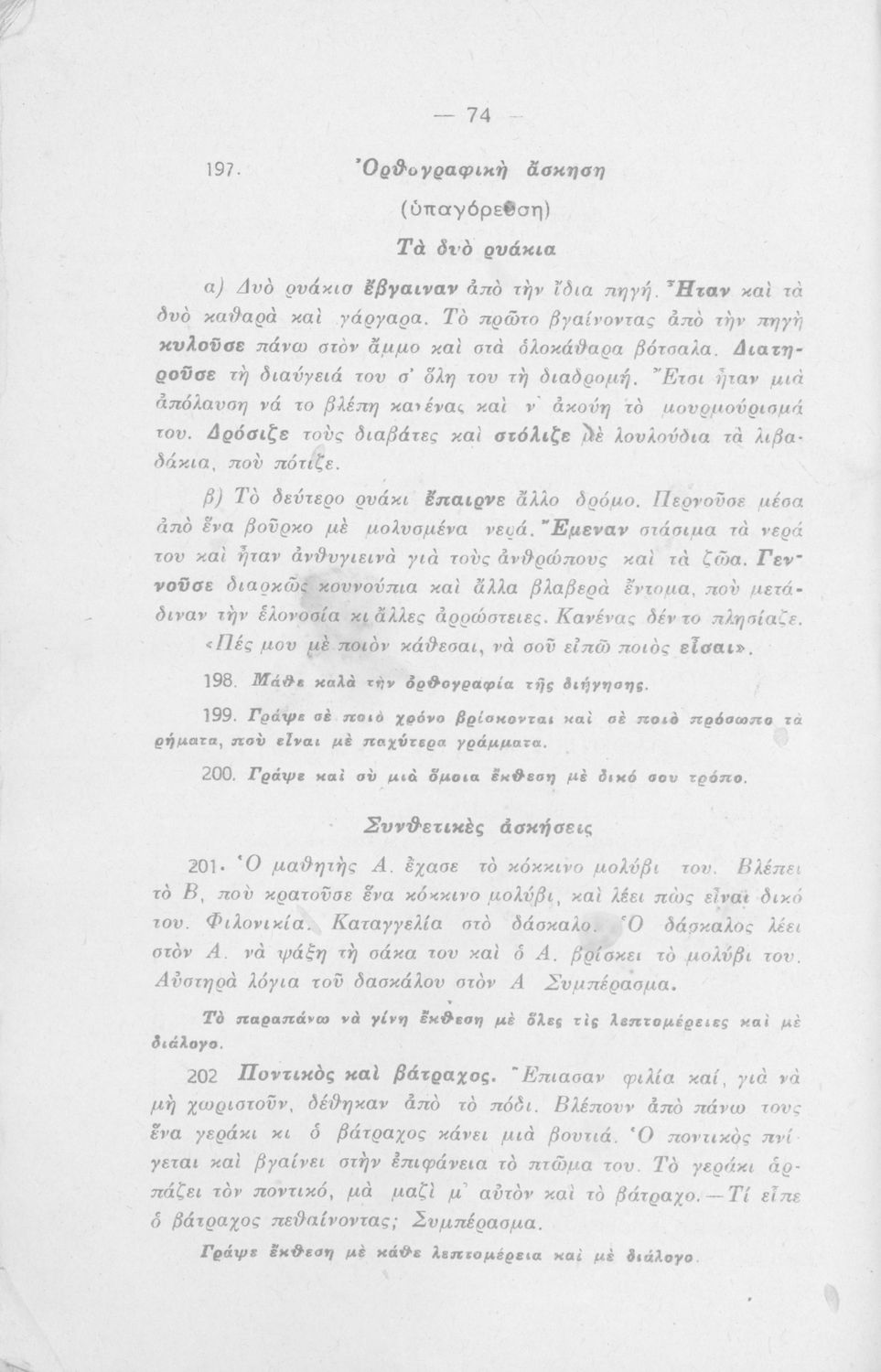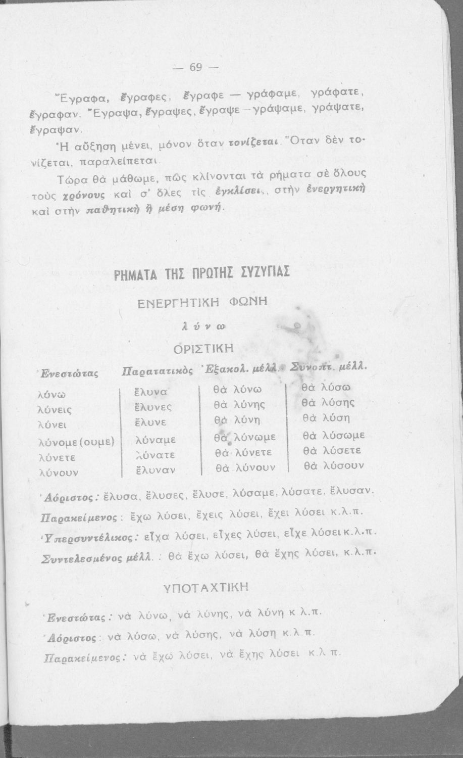 Σχολικό εγχειρίδιο Γ΄ και Δ΄ Δημοτικού που περιέχει τη γραμματικής της νέας ελληνικής. Την έκδοση επιμελήθηκε ο Γ. Λογοθέτης, τέως διευθυντής του επταταξίου δημ. Τμήμ.της Ευαγγελικής Σχολής.