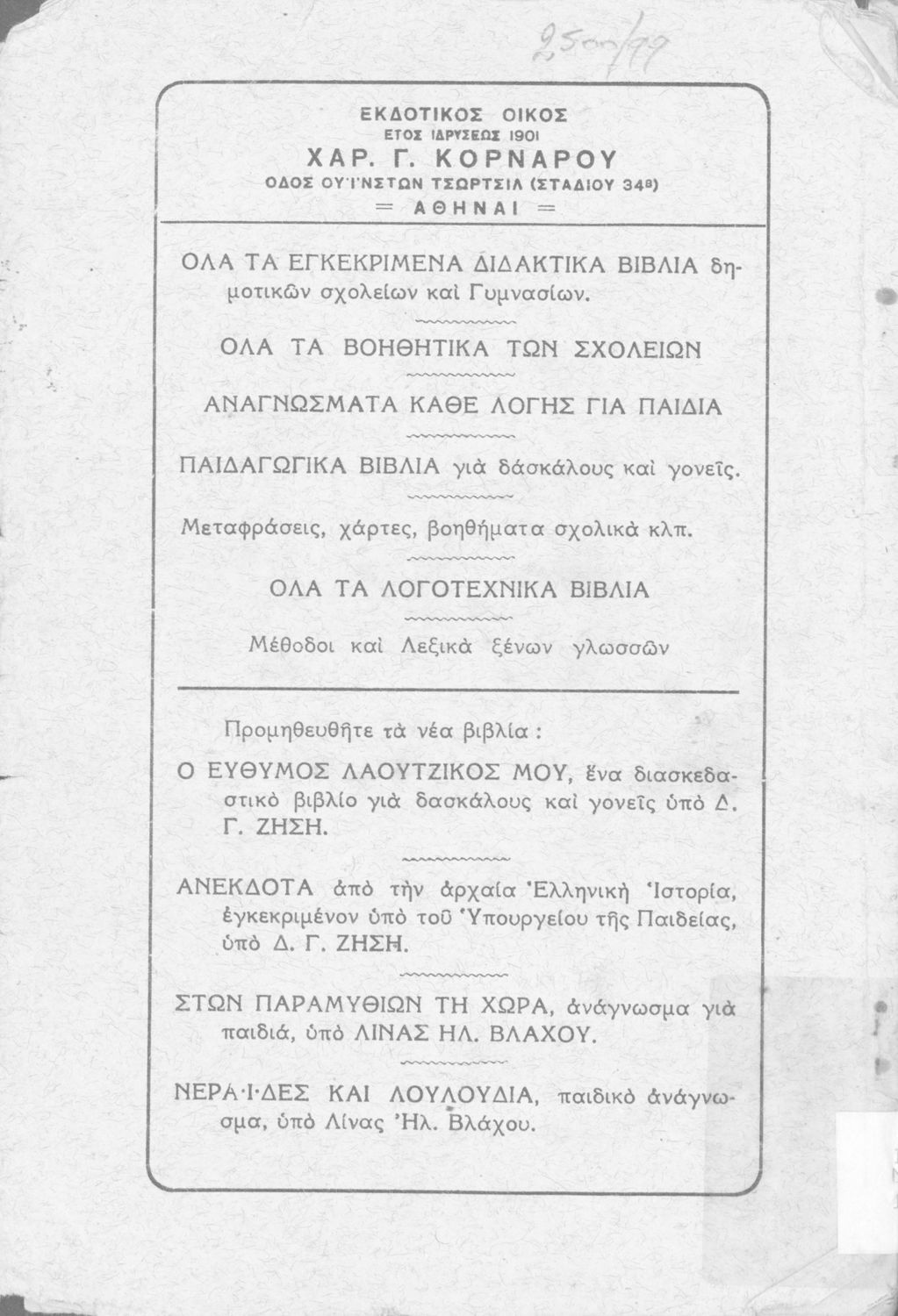 Εκδότης: Διεθνές Βιβλιοπωλείον Αρ. Γ. Κορνάρου