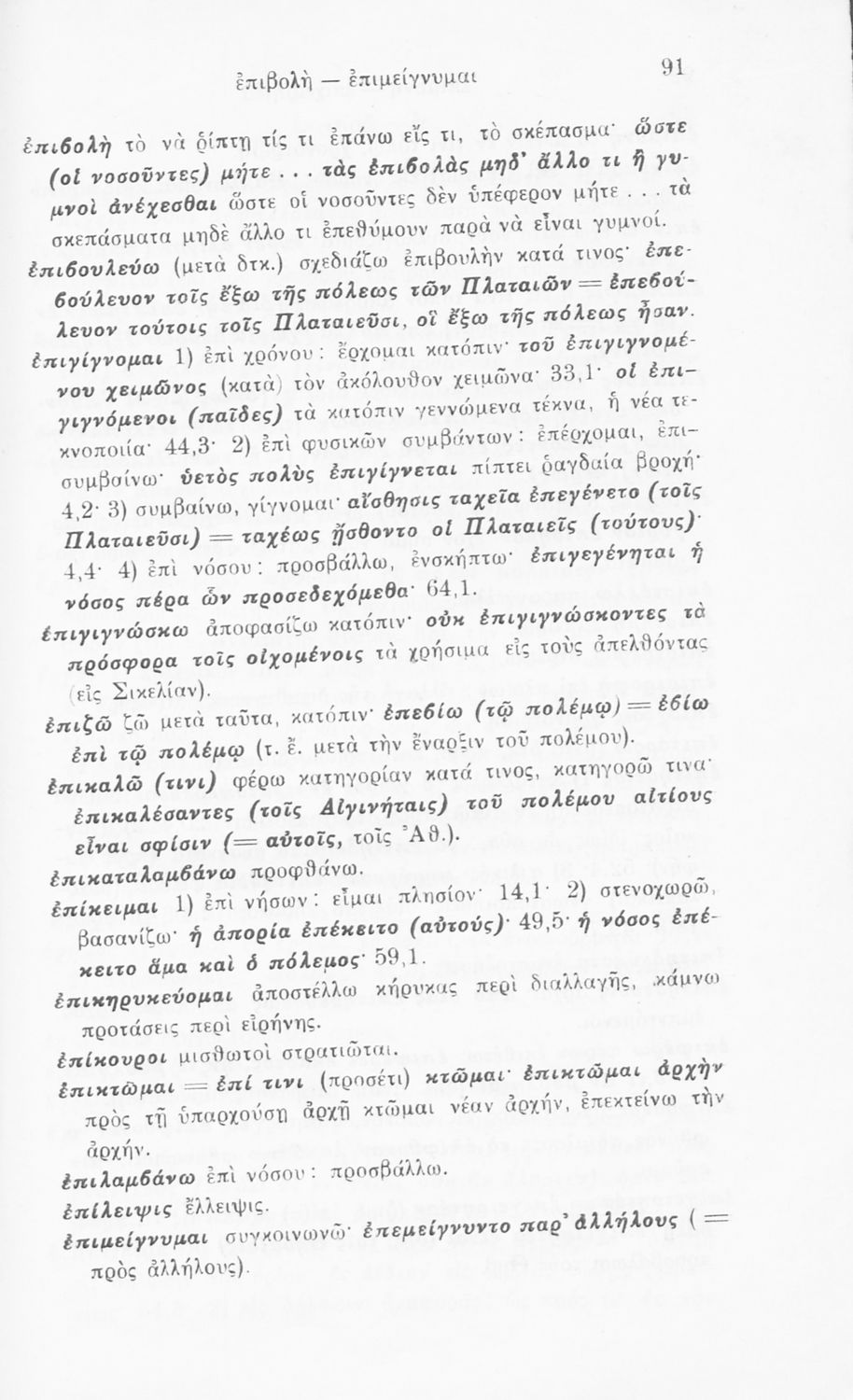 Σχολικό εγχειρίδιο Αρχαίων Ελληνικών για τις Β΄ και Γ΄ Γυμνασίου που περιλαμβάνει σύντομο βιογραφικό σημείωμα του Θουκυδίδη, εισαγωγικά σχόλια στο έργο, κείμενο και ετυμολογικό λεξιλόγιο.