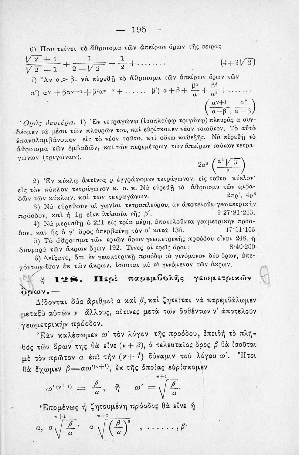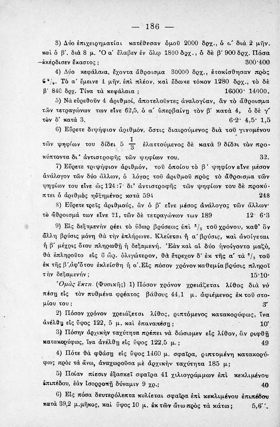 LDR 01028 2200217 4500 035 ## _a01-18724 040 ## _aΙνστιτούτο Εκπαιδευτικής Πολιτικής 041 ## _ael 100 ## _aΝείλος Σακελλαρίου 110 ## _a18724 245 0# _aΣτοιχειώδης άλγεβρα δια τα Γυμνάσια 250 ## _a3η Έκδοση 260 ## _aΑθήνα _bΙωάννης Ν. Σιδέρης _c1922 300 ## _a234 _c20 520 ## _aΣχολικό εγχειρίδιο Άλγεβρας Γυμνασίου που περιλαμβάνει θεωρία, ασκήσεις και στοιχεία λογιστικής. 521 ## _aΓυμνάσιο 522 ## _aΕλλάδα 546 ## _aΑπλή καθαρεύουσα 563 ## _aΣκληρό Εξώφυλλο 583 ## _a13144/7-5-1919 _c1919 650 #4 _aΑλγεβρικοί αριθμοί _aΑνατοκισμός _aΕξισώσεις Α΄ και Β΄ βαθμού _aΛογάριθμοι _aΠρόοδοι _aΡίζες _aΧρεωλύσια