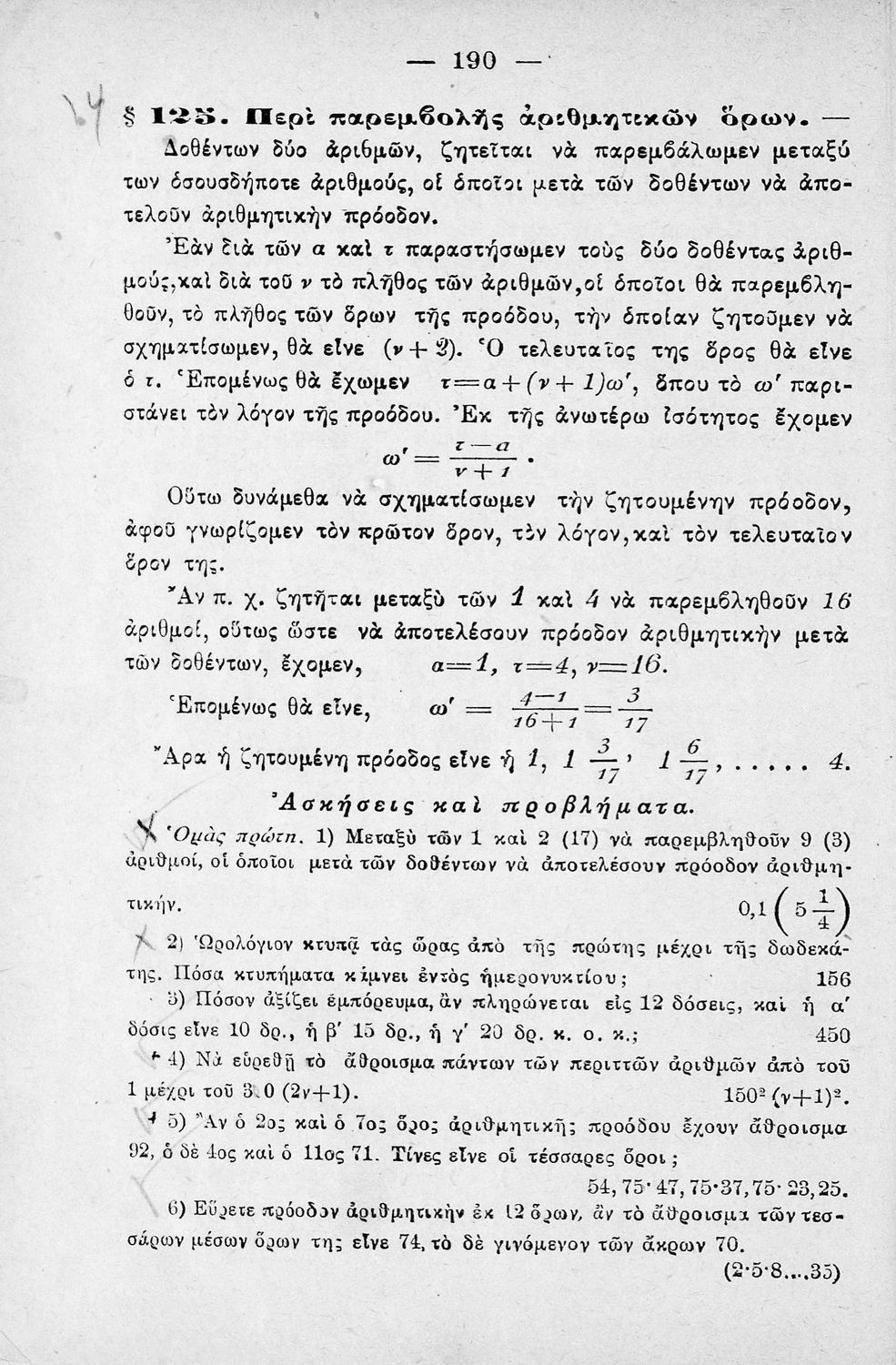 Βαθμίδα εκπαίδευσης: Δευτεροβάθμια Τάξη: Γυμνάσιο Μάθημα: Μαθηματικά Γλώσσα: Απλή καθαρεύουσα Παρουσίαση περιεχομένου: Σχολικό εγχειρίδιο Άλγεβρας Γυμνασίου που περιλαμβάνει θεωρία, ασκήσεις και στοιχεία λογιστικής. |