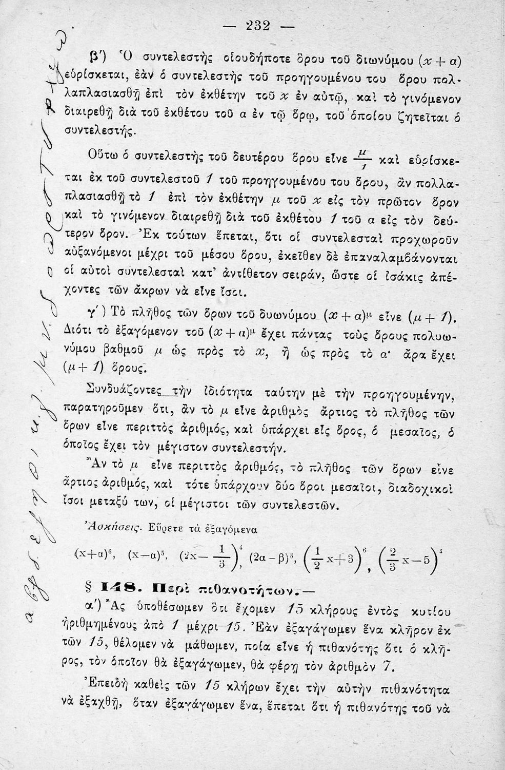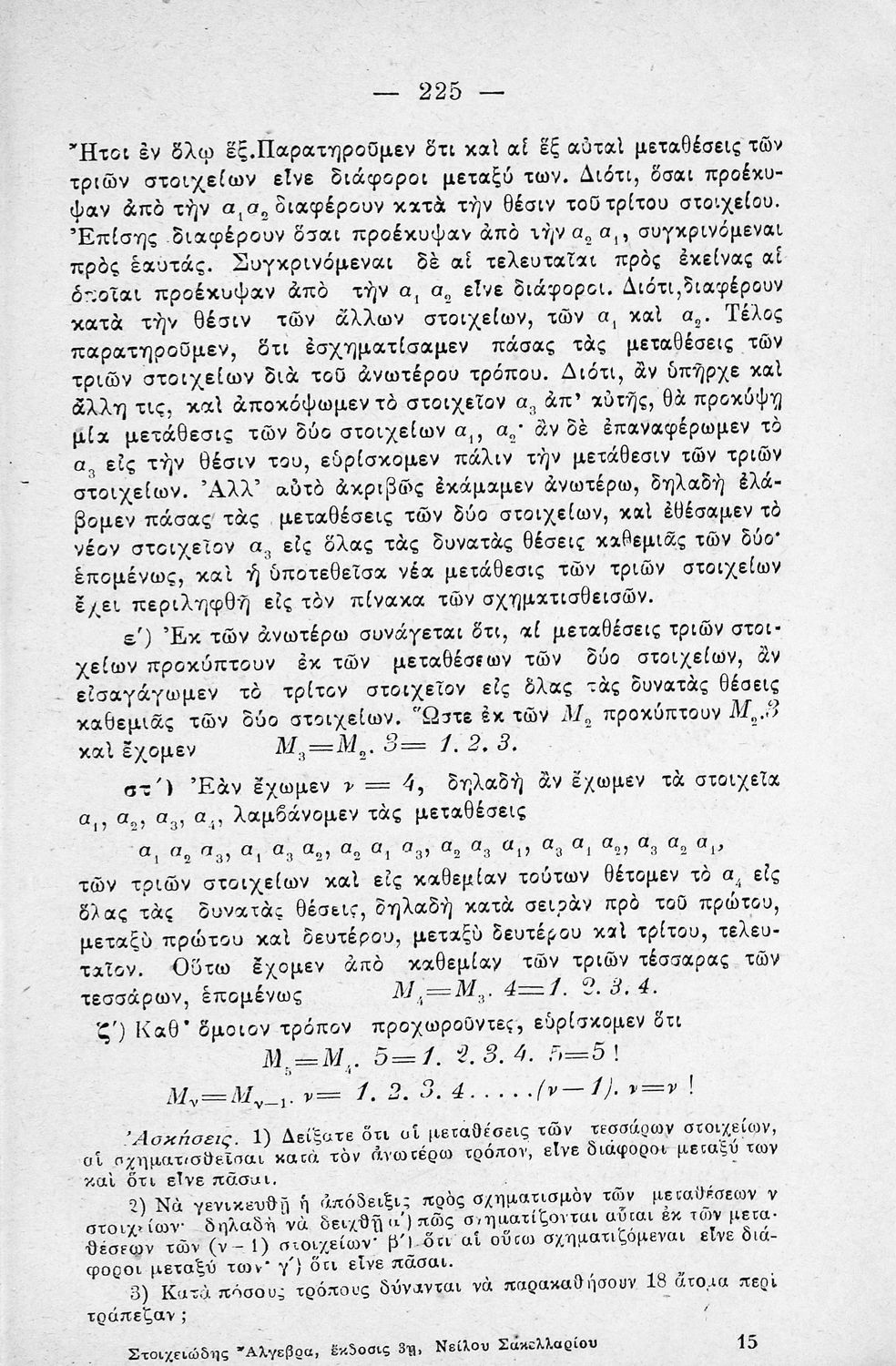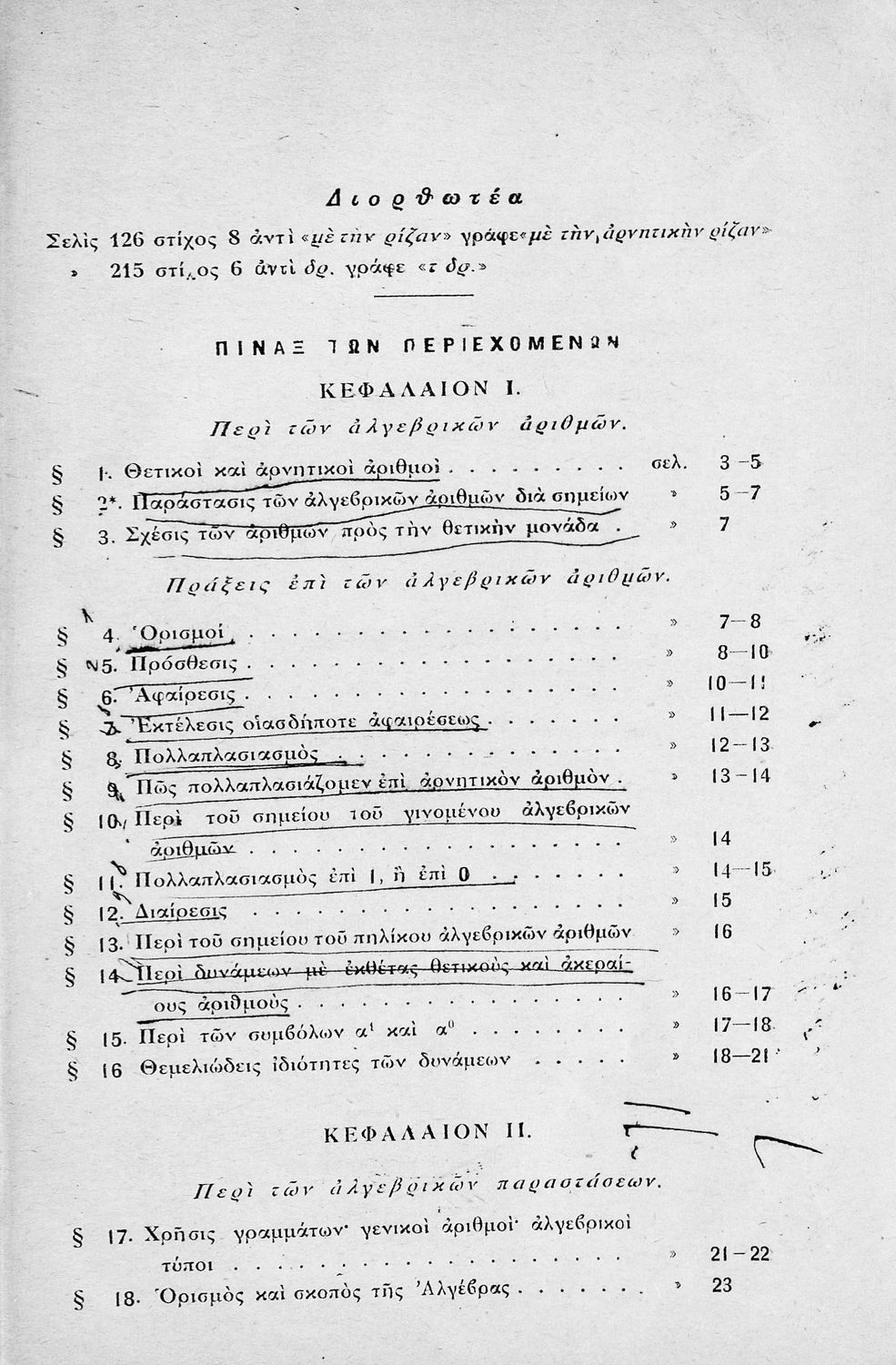 Σχολικό εγχειρίδιο Άλγεβρας για τα Γυμνάσια χωρισμένο σε θεωρία και ασκήσεις. Ο συγγραφέας ήταν καθηγητής στο Πανεπιστήμιο Αθηνών.