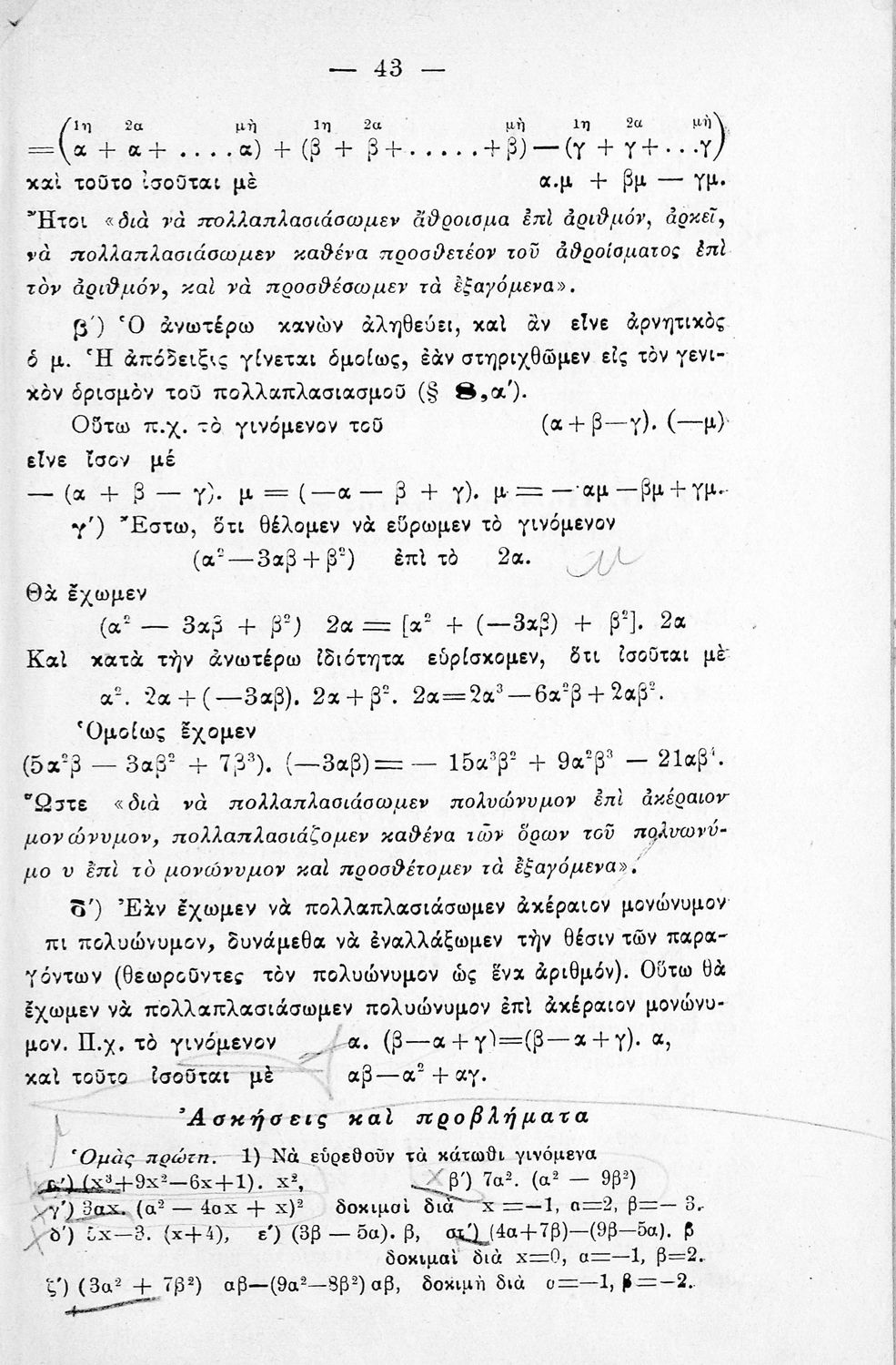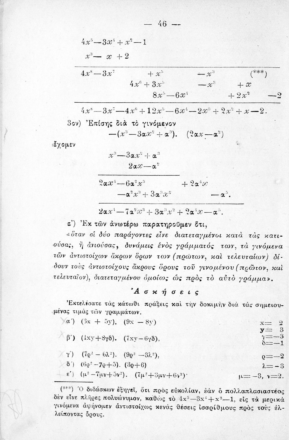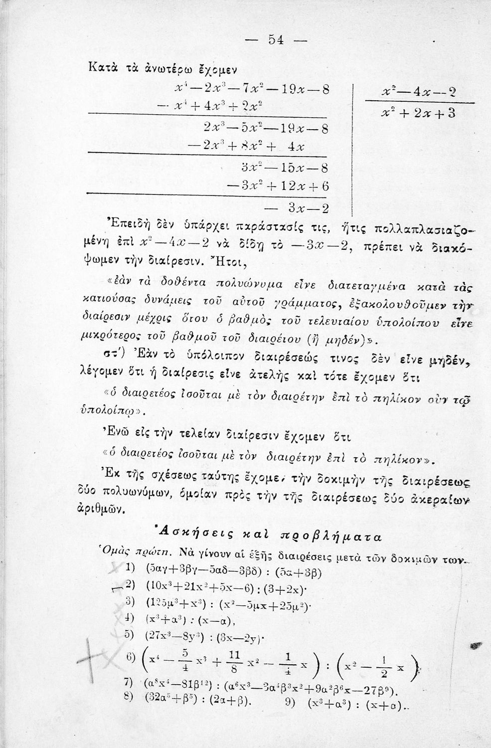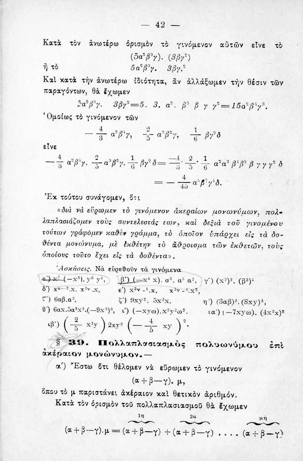 Βαθμίδα εκπαίδευσης: Δευτεροβάθμια Τάξη: Γυμνάσιο Μάθημα: Μαθηματικά Γλώσσα: Απλή καθαρεύουσα Παρουσίαση περιεχομένου: Σχολικό εγχειρίδιο Άλγεβρας Γυμνασίου που περιλαμβάνει θεωρία, ασκήσεις και στοιχεία λογιστικής. |