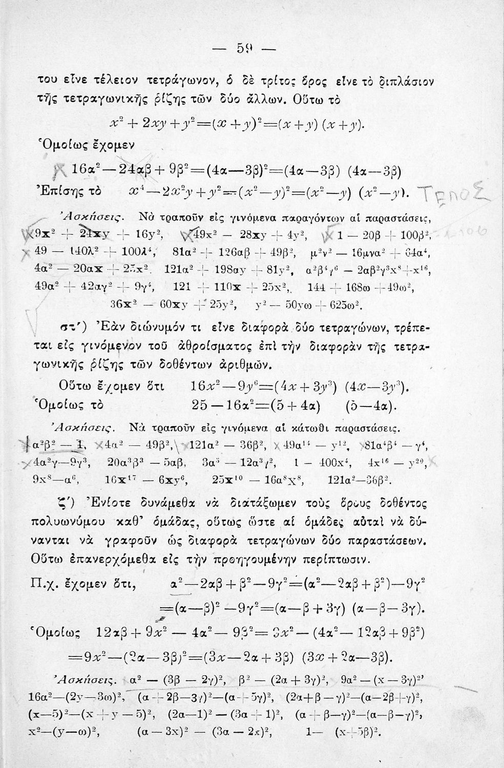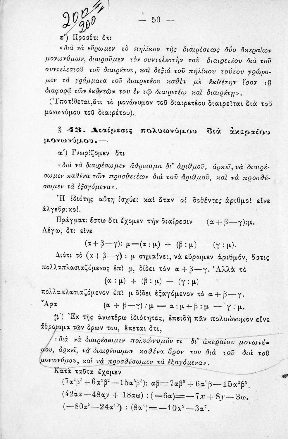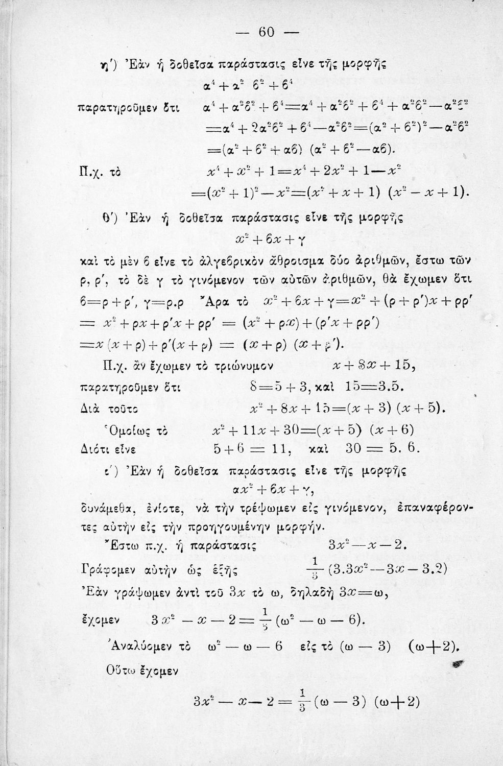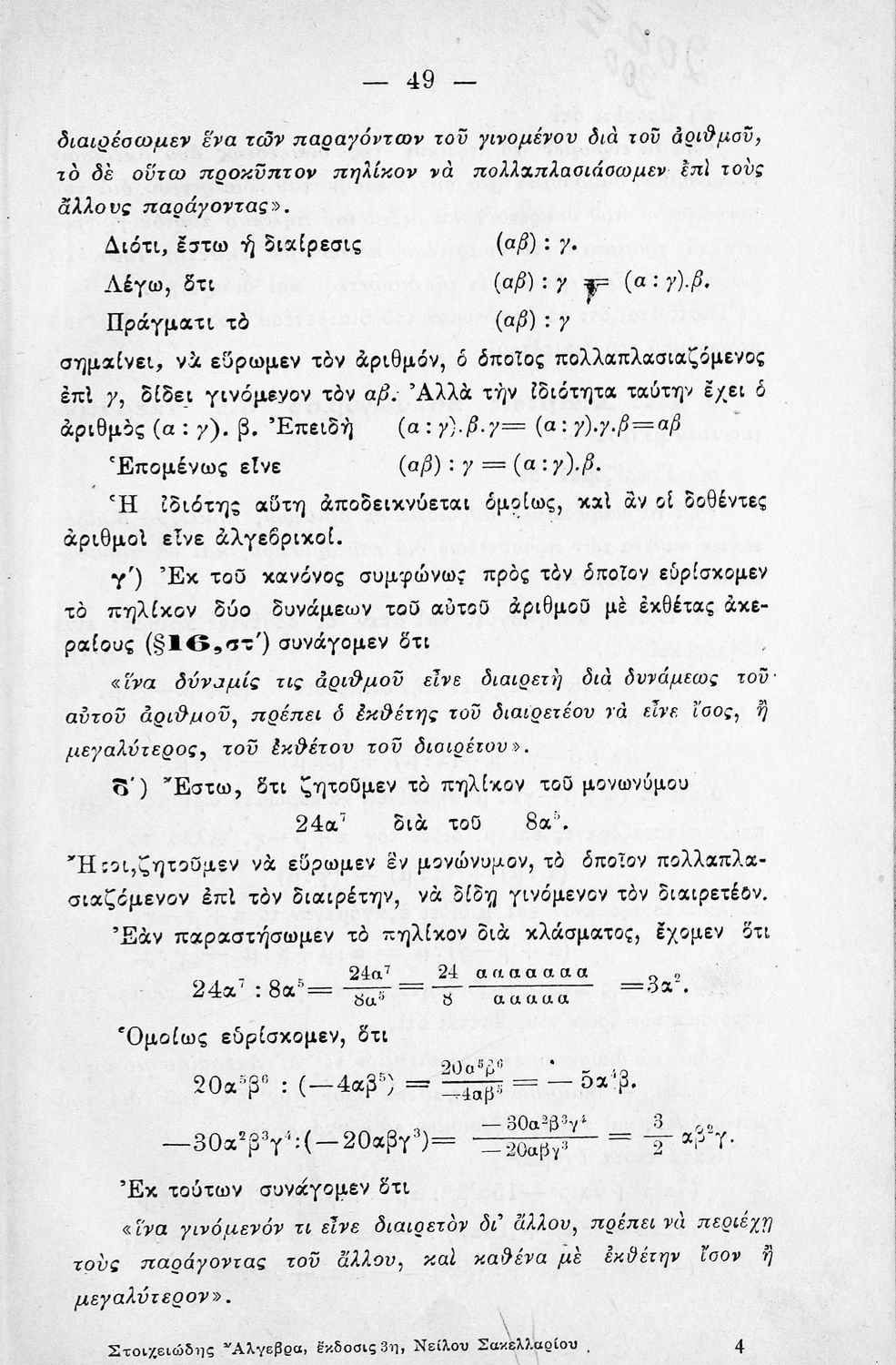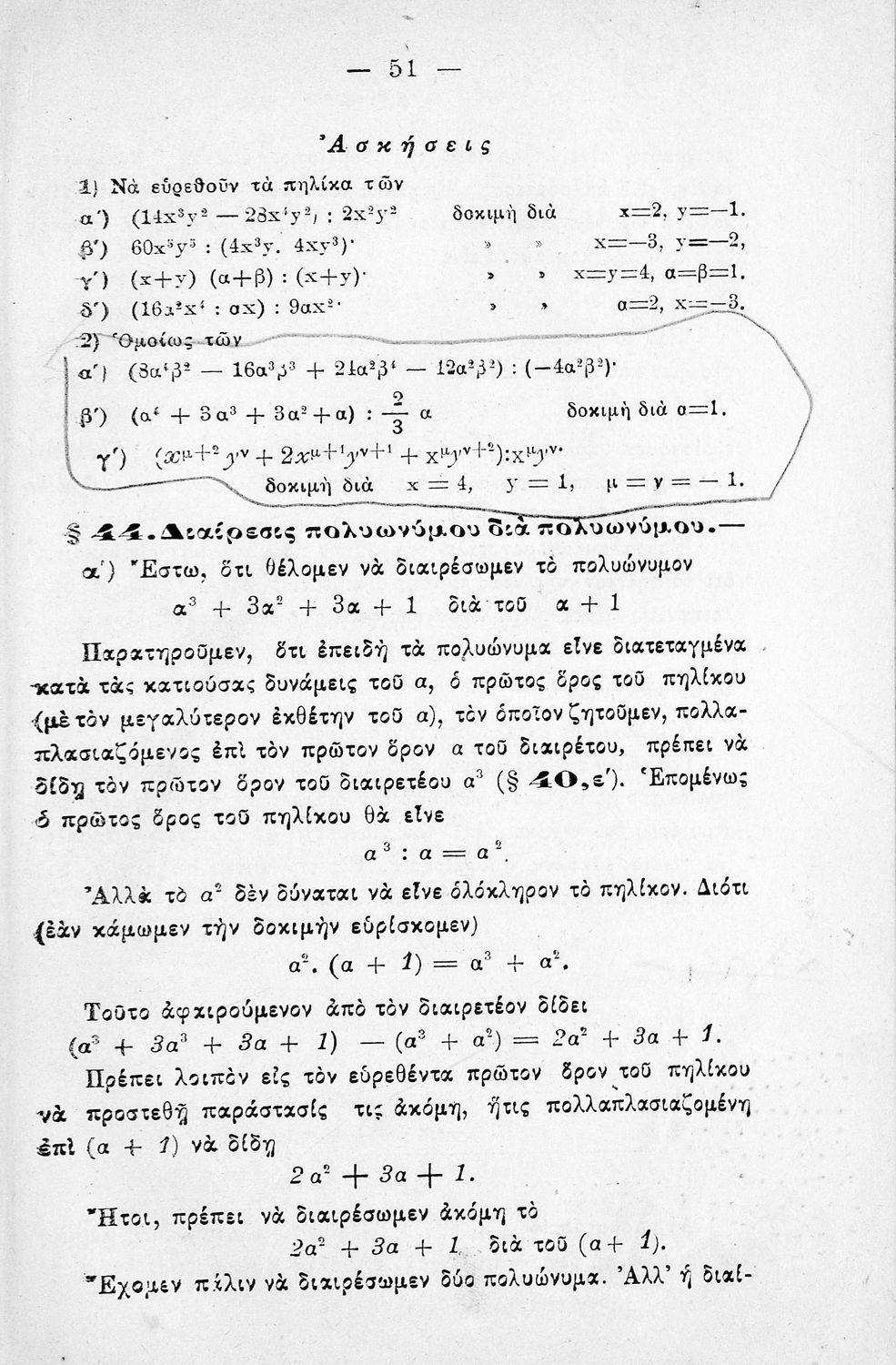 Βαθμίδα εκπαίδευσης: Δευτεροβάθμια Τάξη: Γυμνάσιο Μάθημα: Μαθηματικά Γλώσσα: Απλή καθαρεύουσα Παρουσίαση περιεχομένου: Σχολικό εγχειρίδιο Άλγεβρας Γυμνασίου που περιλαμβάνει θεωρία, ασκήσεις και στοιχεία λογιστικής. |