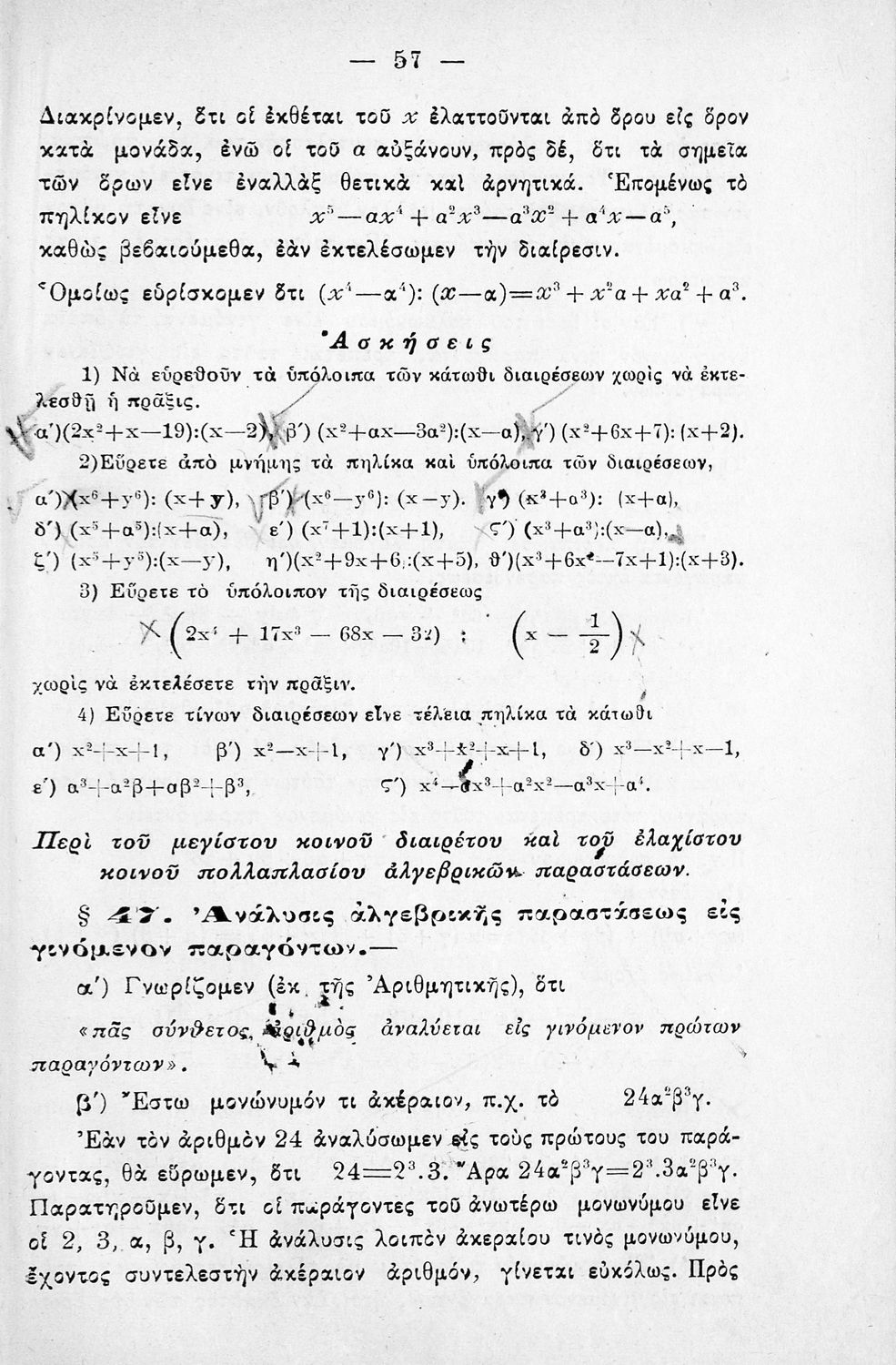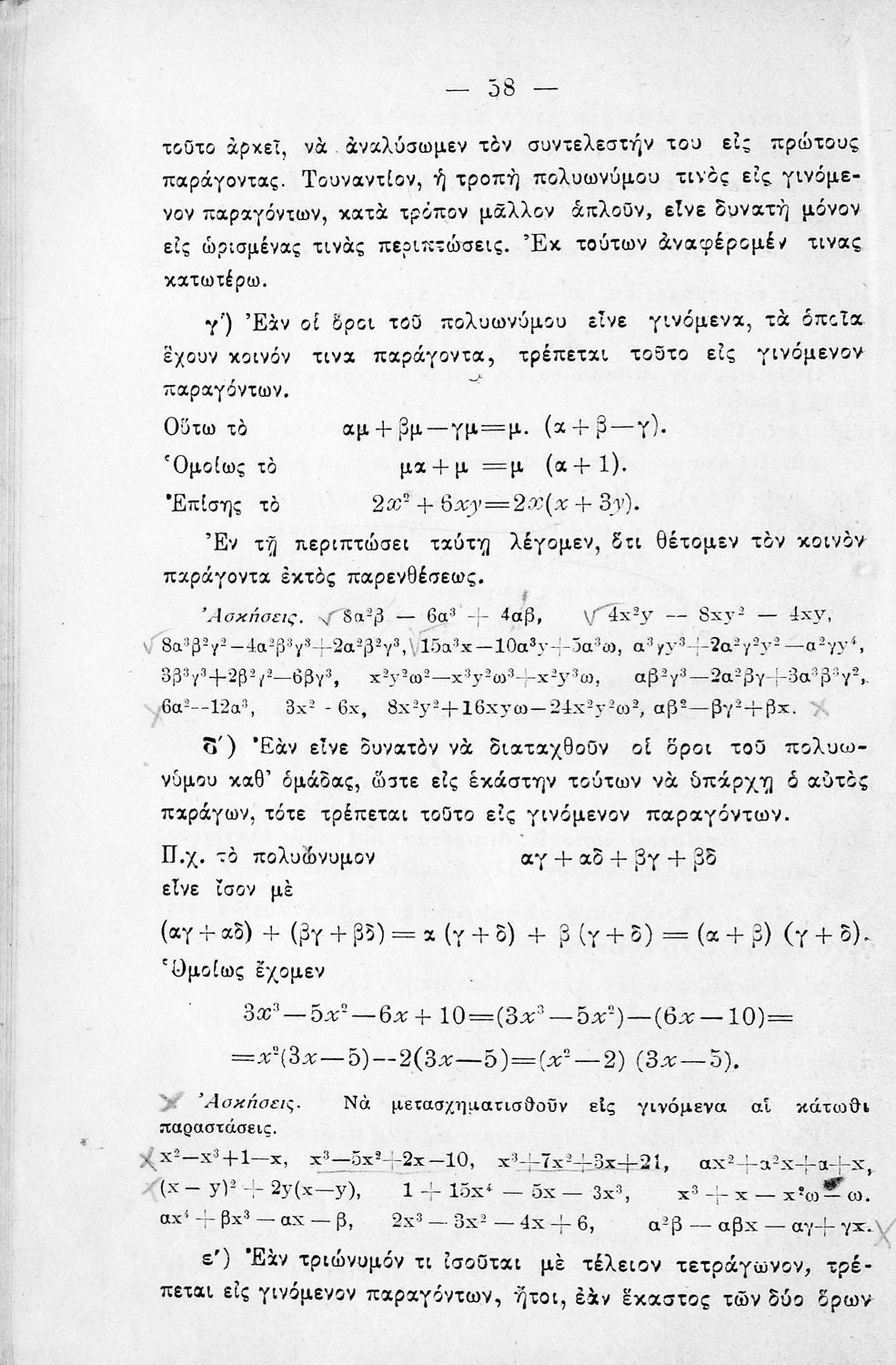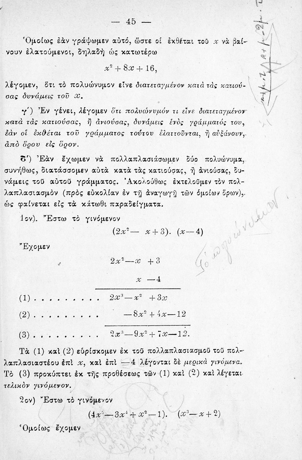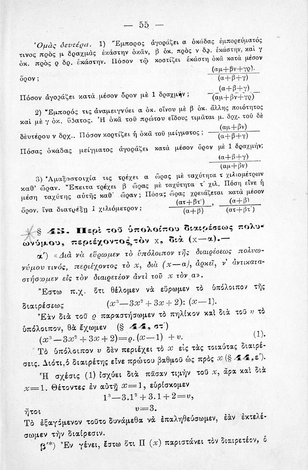 Βαθμίδα εκπαίδευσης: Δευτεροβάθμια Τάξη: Γυμνάσιο Μάθημα: Μαθηματικά Γλώσσα: Απλή καθαρεύουσα Παρουσίαση περιεχομένου: Σχολικό εγχειρίδιο Άλγεβρας Γυμνασίου που περιλαμβάνει θεωρία, ασκήσεις και στοιχεία λογιστικής. |