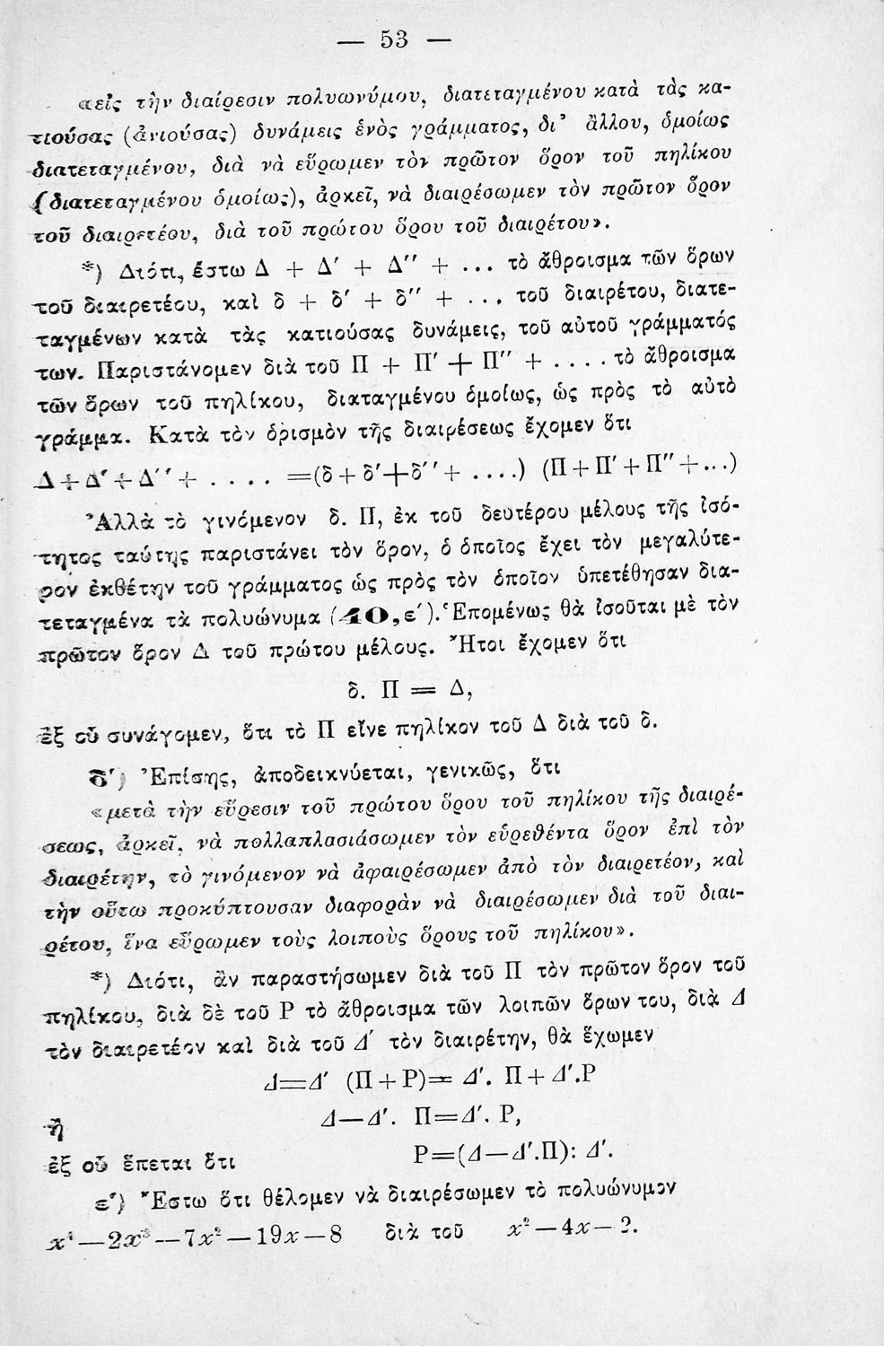 LDR 01028 2200217 4500 035 ## _a01-18724 040 ## _aΙνστιτούτο Εκπαιδευτικής Πολιτικής 041 ## _ael 100 ## _aΝείλος Σακελλαρίου 110 ## _a18724 245 0# _aΣτοιχειώδης άλγεβρα δια τα Γυμνάσια 250 ## _a3η Έκδοση 260 ## _aΑθήνα _bΙωάννης Ν. Σιδέρης _c1922 300 ## _a234 _c20 520 ## _aΣχολικό εγχειρίδιο Άλγεβρας Γυμνασίου που περιλαμβάνει θεωρία, ασκήσεις και στοιχεία λογιστικής. 521 ## _aΓυμνάσιο 522 ## _aΕλλάδα 546 ## _aΑπλή καθαρεύουσα 563 ## _aΣκληρό Εξώφυλλο 583 ## _a13144/7-5-1919 _c1919 650 #4 _aΑλγεβρικοί αριθμοί _aΑνατοκισμός _aΕξισώσεις Α΄ και Β΄ βαθμού _aΛογάριθμοι _aΠρόοδοι _aΡίζες _aΧρεωλύσια