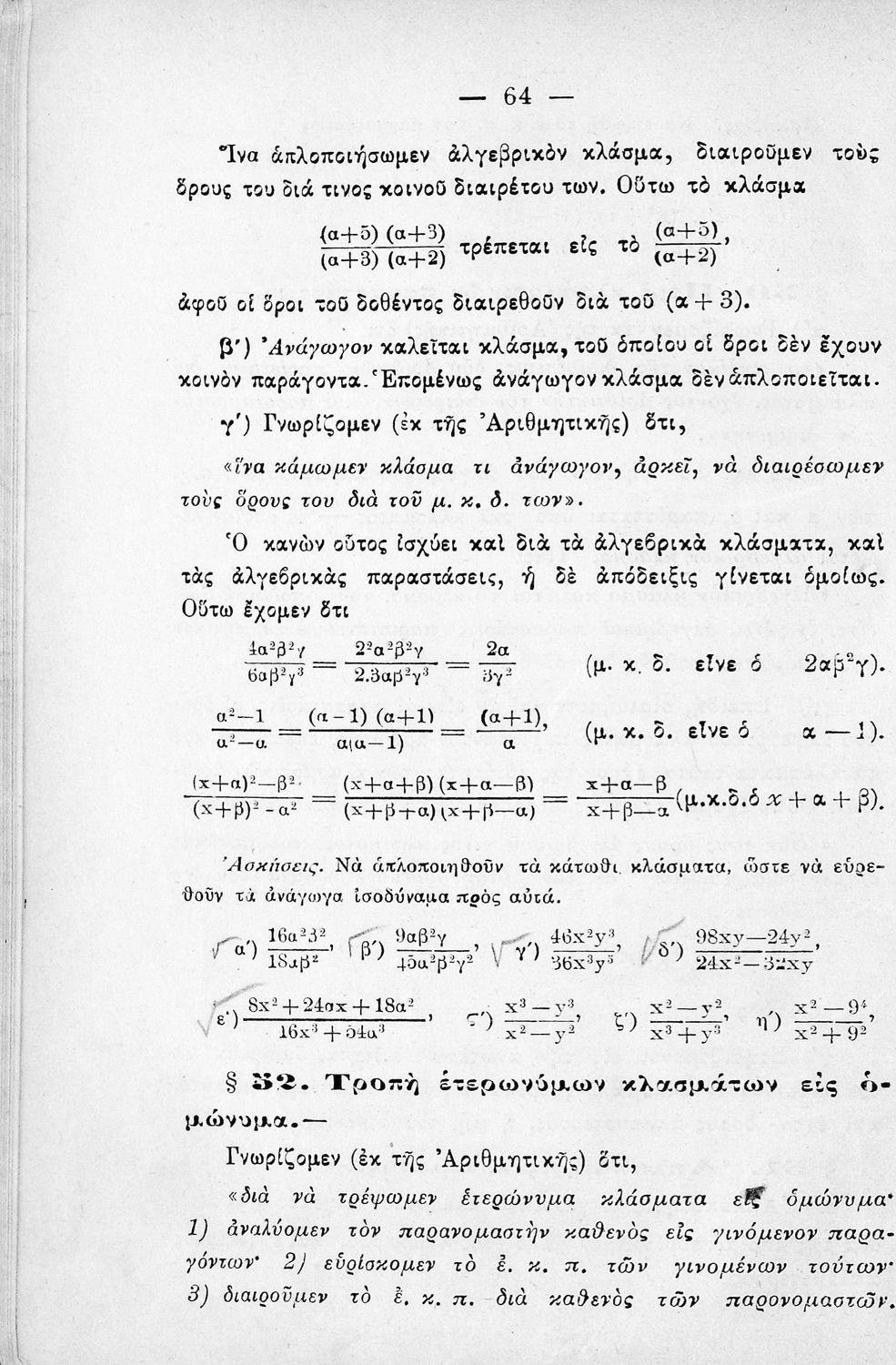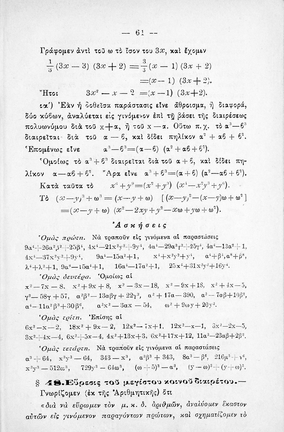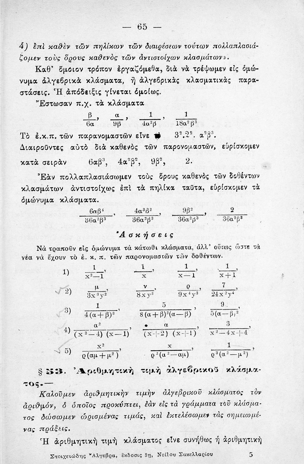 Σχολικό εγχειρίδιο Άλγεβρας για τα Γυμνάσια χωρισμένο σε θεωρία και ασκήσεις. Ο συγγραφέας ήταν καθηγητής στο Πανεπιστήμιο Αθηνών.
