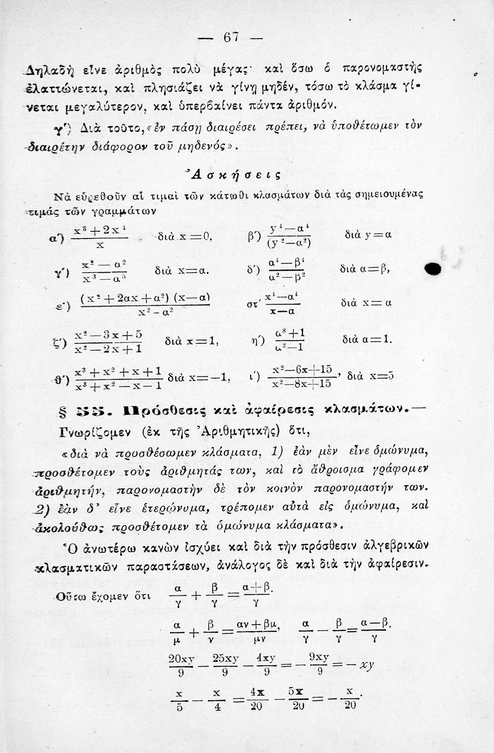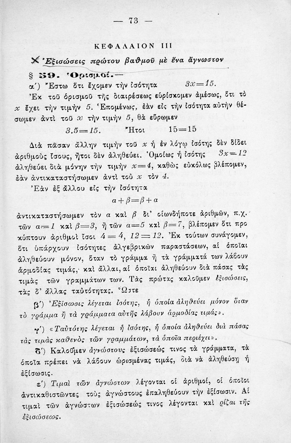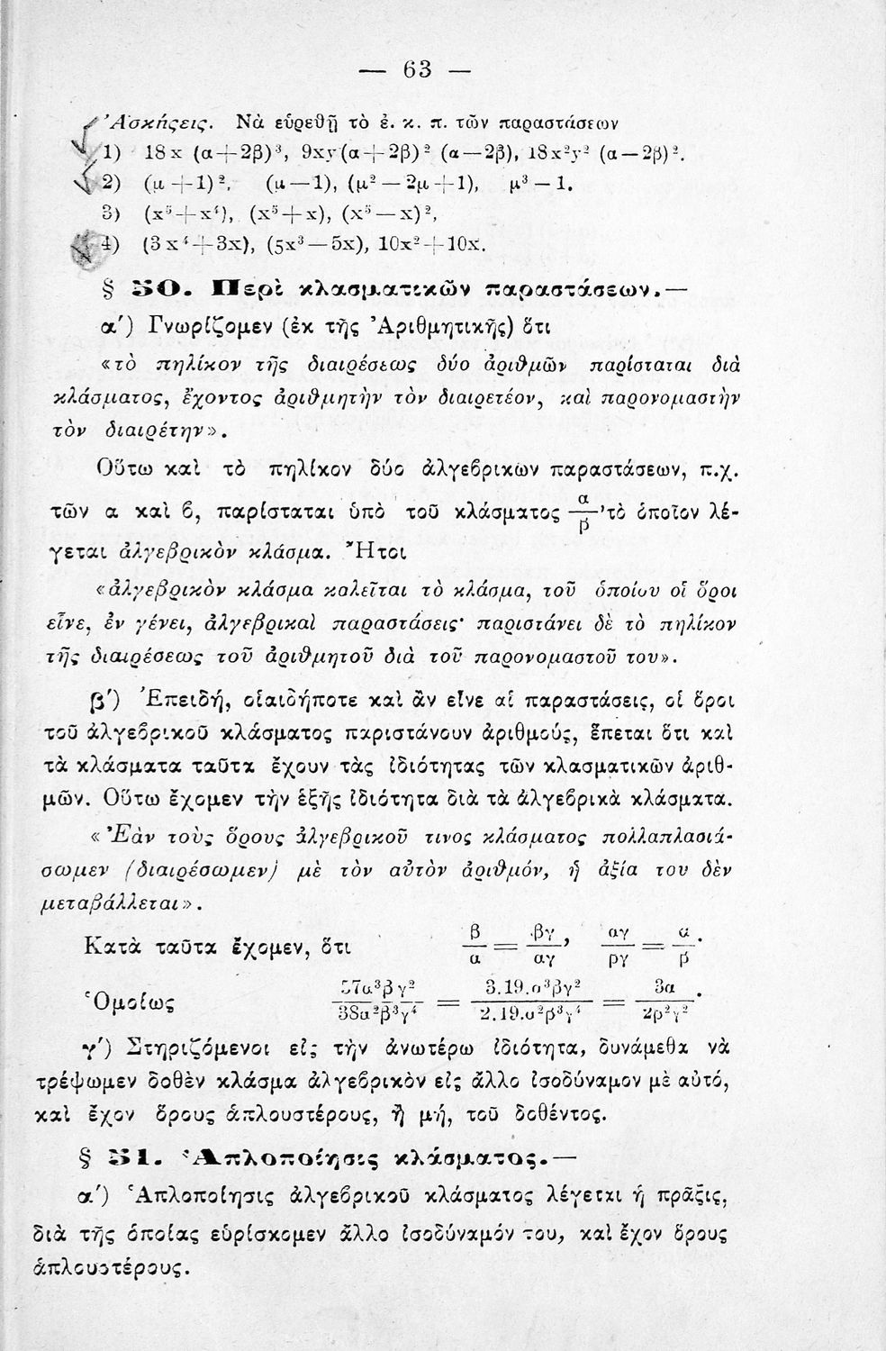 Σχολικό εγχειρίδιο Άλγεβρας για τα Γυμνάσια χωρισμένο σε θεωρία και ασκήσεις. Ο συγγραφέας ήταν καθηγητής στο Πανεπιστήμιο Αθηνών.