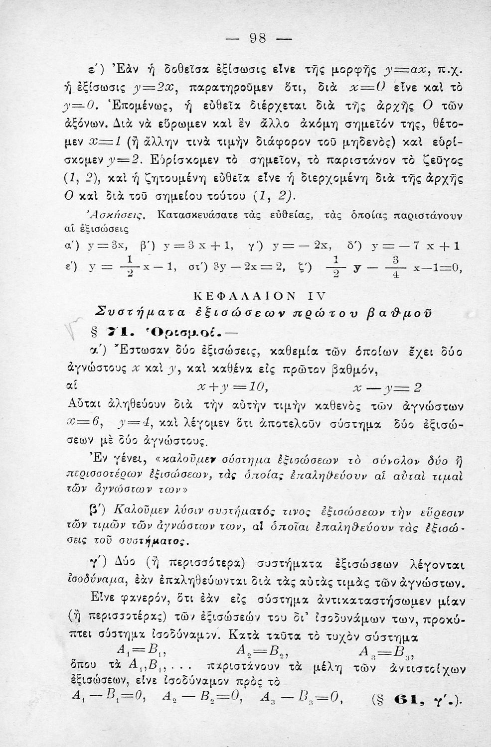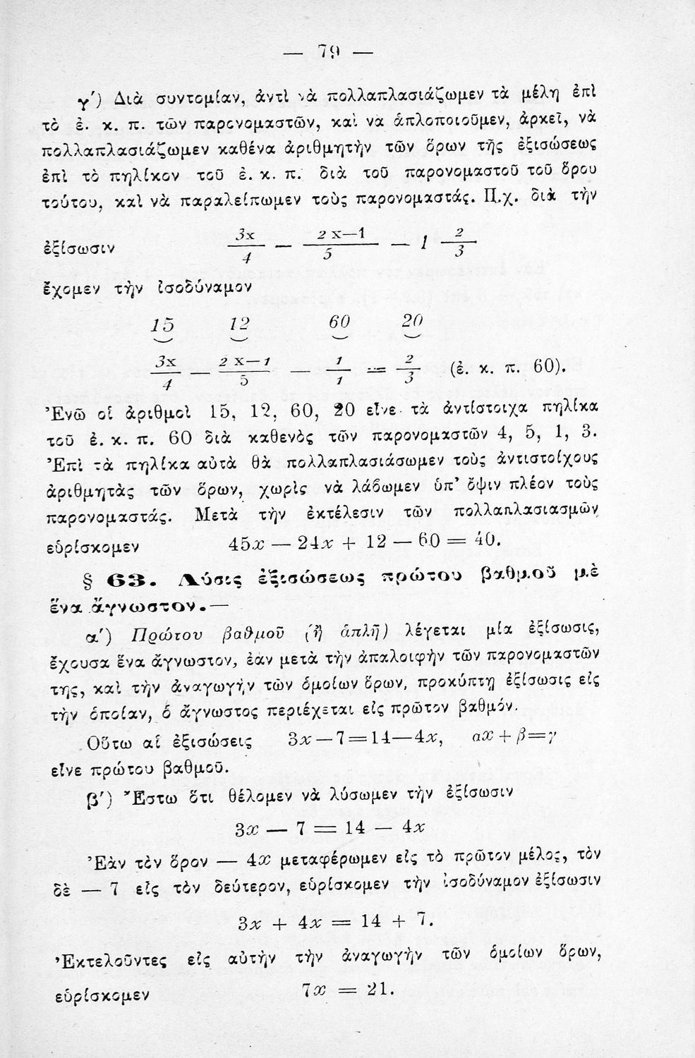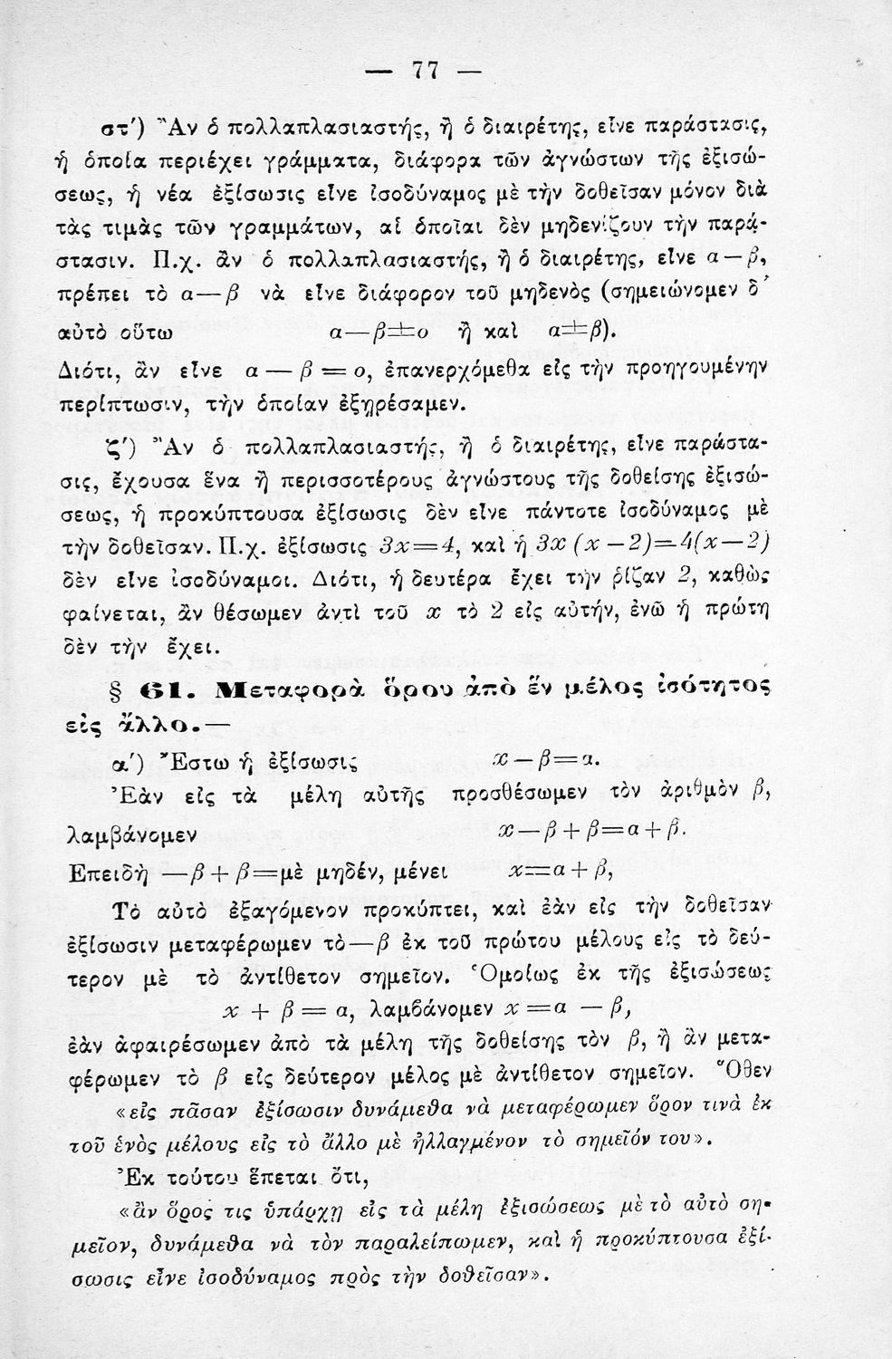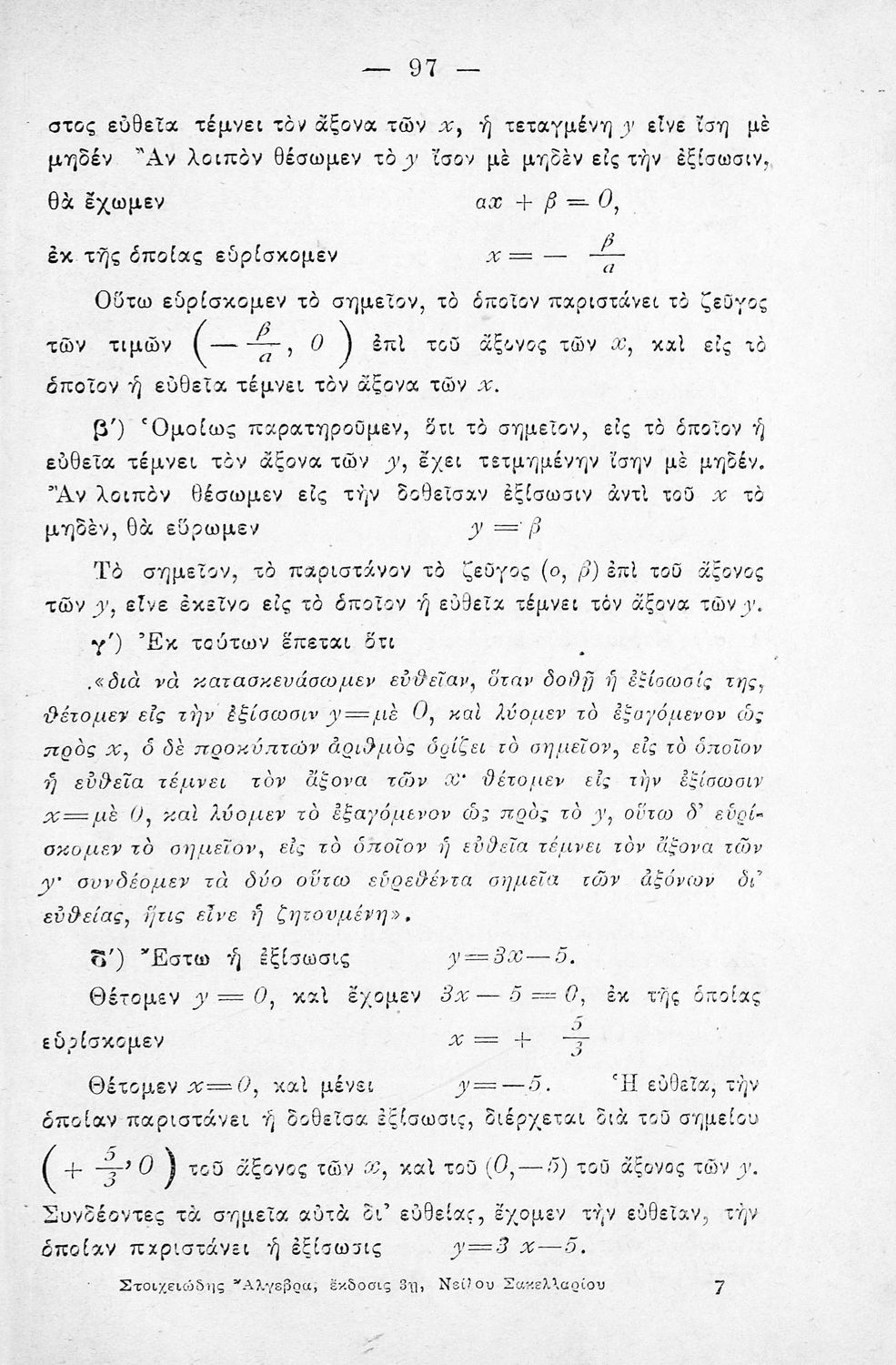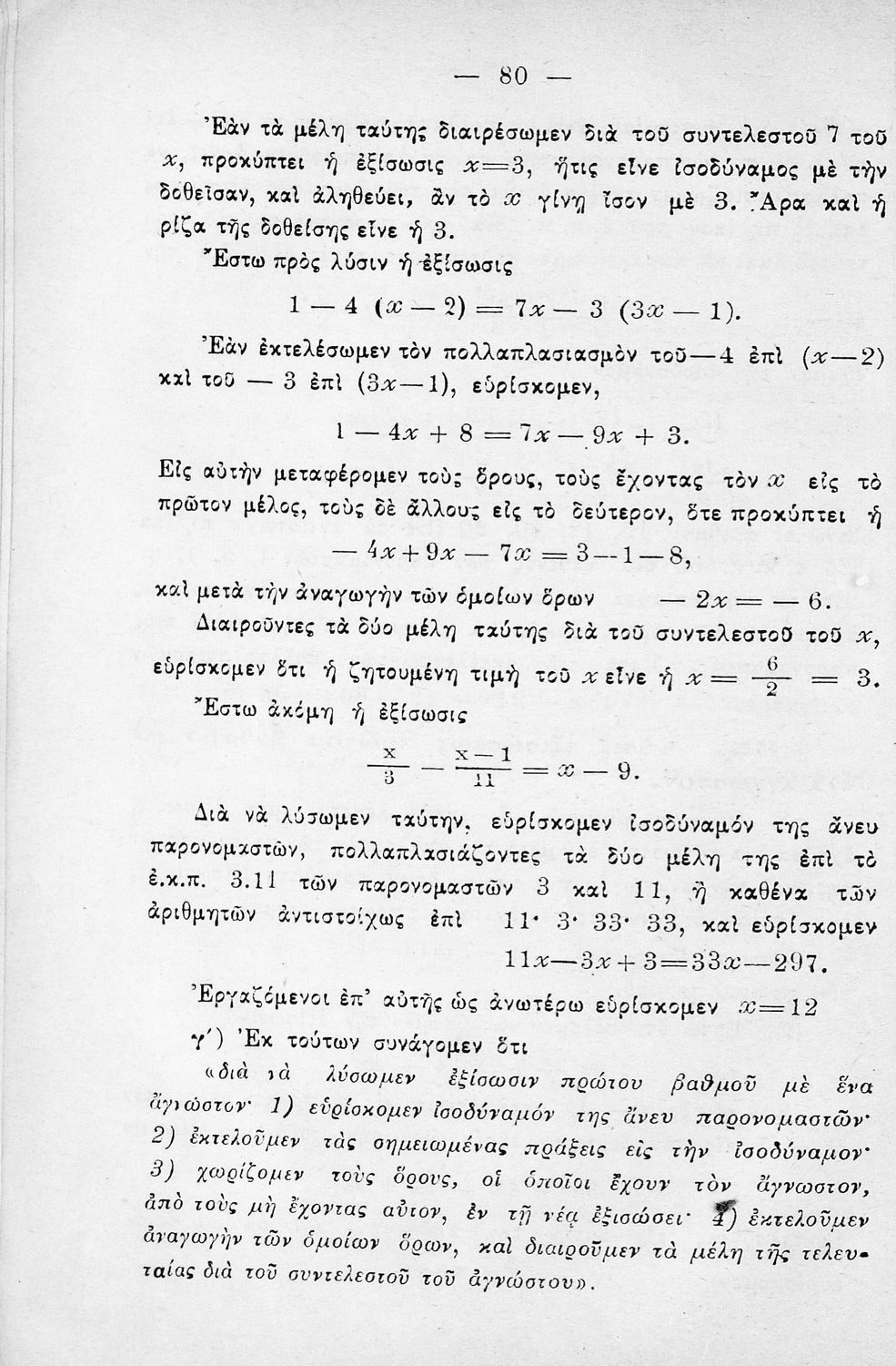 Βαθμίδα εκπαίδευσης: Δευτεροβάθμια Τάξη: Γυμνάσιο Μάθημα: Μαθηματικά Γλώσσα: Απλή καθαρεύουσα Παρουσίαση περιεχομένου: Σχολικό εγχειρίδιο Άλγεβρας Γυμνασίου που περιλαμβάνει θεωρία, ασκήσεις και στοιχεία λογιστικής. |