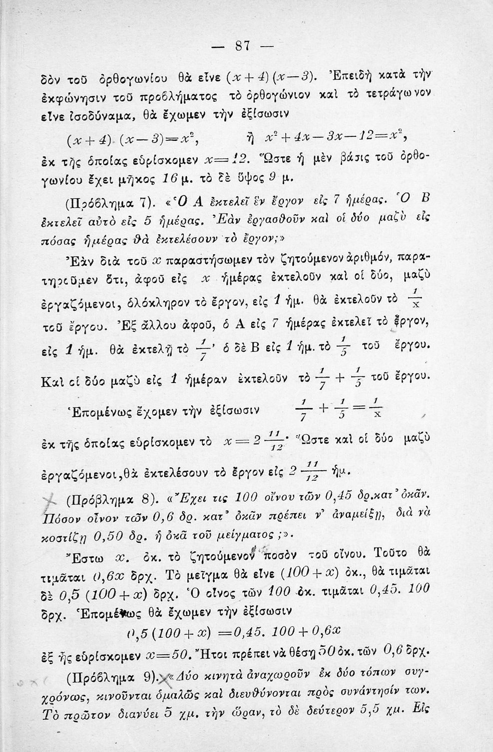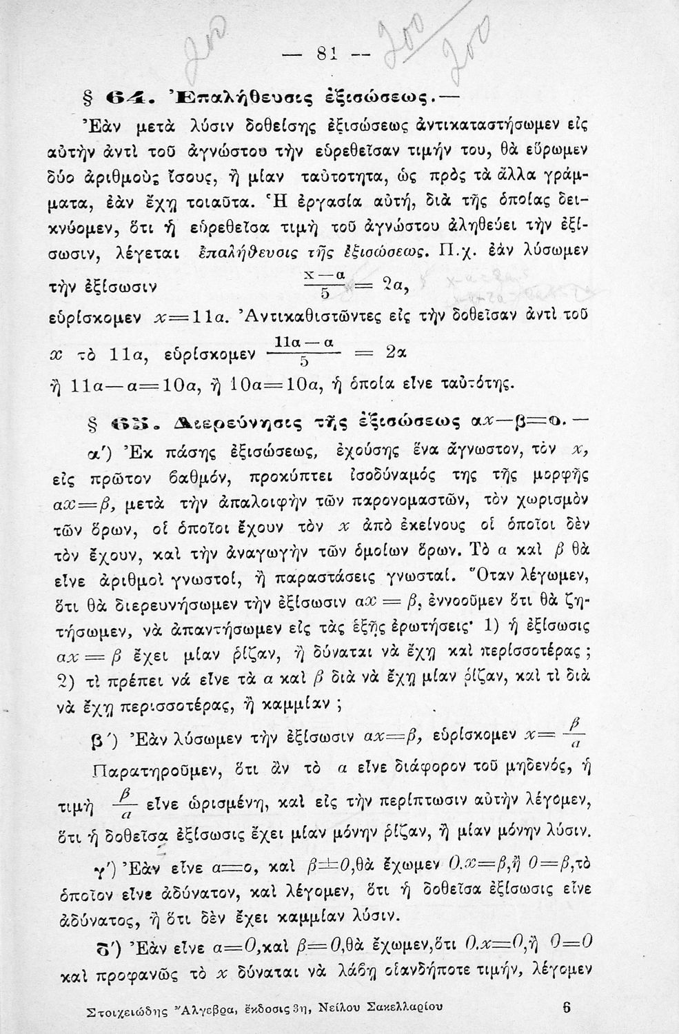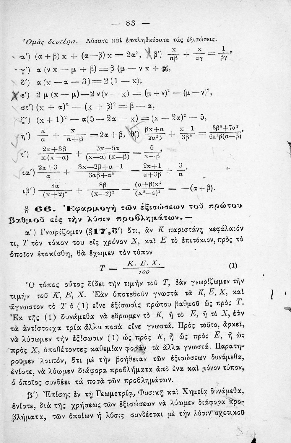 LDR 01028 2200217 4500 035 ## _a01-18724 040 ## _aΙνστιτούτο Εκπαιδευτικής Πολιτικής 041 ## _ael 100 ## _aΝείλος Σακελλαρίου 110 ## _a18724 245 0# _aΣτοιχειώδης άλγεβρα δια τα Γυμνάσια 250 ## _a3η Έκδοση 260 ## _aΑθήνα _bΙωάννης Ν. Σιδέρης _c1922 300 ## _a234 _c20 520 ## _aΣχολικό εγχειρίδιο Άλγεβρας Γυμνασίου που περιλαμβάνει θεωρία, ασκήσεις και στοιχεία λογιστικής. 521 ## _aΓυμνάσιο 522 ## _aΕλλάδα 546 ## _aΑπλή καθαρεύουσα 563 ## _aΣκληρό Εξώφυλλο 583 ## _a13144/7-5-1919 _c1919 650 #4 _aΑλγεβρικοί αριθμοί _aΑνατοκισμός _aΕξισώσεις Α΄ και Β΄ βαθμού _aΛογάριθμοι _aΠρόοδοι _aΡίζες _aΧρεωλύσια