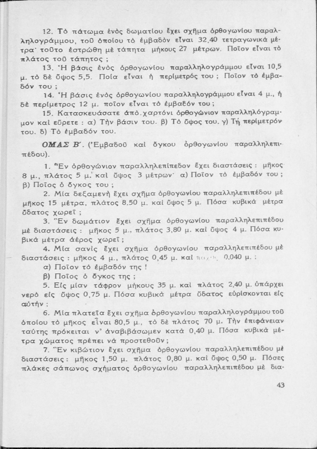 LDR 01037 2200205 4500 035 ## _a01-18726 040 ## _aΙνστιτούτο Εκπαιδευτικής Πολιτικής 041 ## _ael 100 ## _aΚωνστ. Σ. Κωνσταντάς 110 ## _a18726 245 0# _aΠρακτική γεωμετρία δια τους μαθητάς Ε΄ και ΣΤ΄ του Δημοτικού Σχολείου 260 ## _aΑθήνα _bΚένταυρος _c1960 300 ## _a120 _bΕξώφυλλο (έγχρωμο), Σκίτσα (ασπρόμαυρα) _c22 520 ## _aΜαθητικό βοήθημα Γεωμετρίας για τις Ε΄ και ΣΤ΄ Δημοτικού που περιέχει θεωρία και ασκήσεις. 521 ## _aΕ' Δημοτικού / ΣΤ' Δημοτικού 522 ## _aΕλλάδα 546 ## _aΔημοτική 563 ## _aΜαλακό Εξώφυλλο 583 ## _a61452/12-6-1952 _c1952 650 #4 _aΓεωμετρικά σχήματα και σώματα _aΕμβαδόν _aΕπιφάνεια _aΌγκος