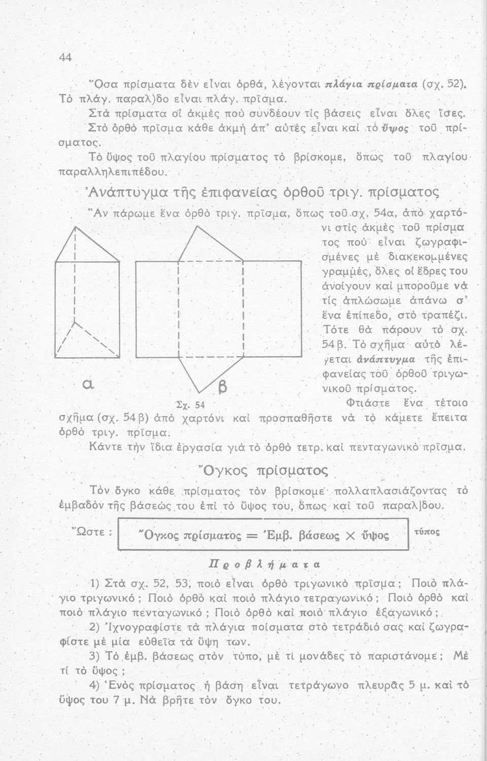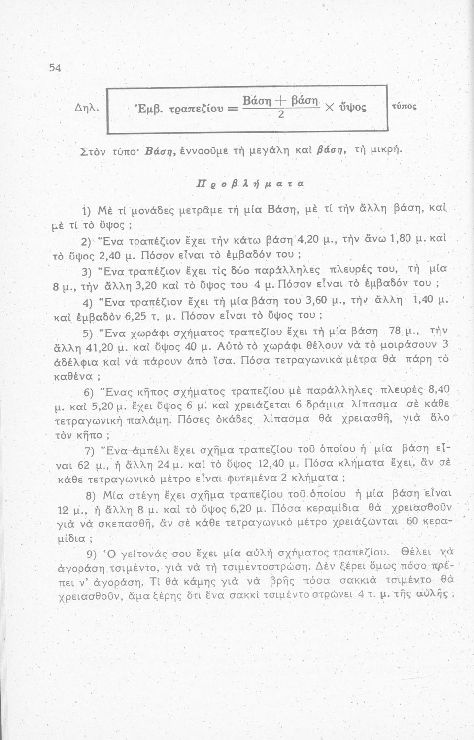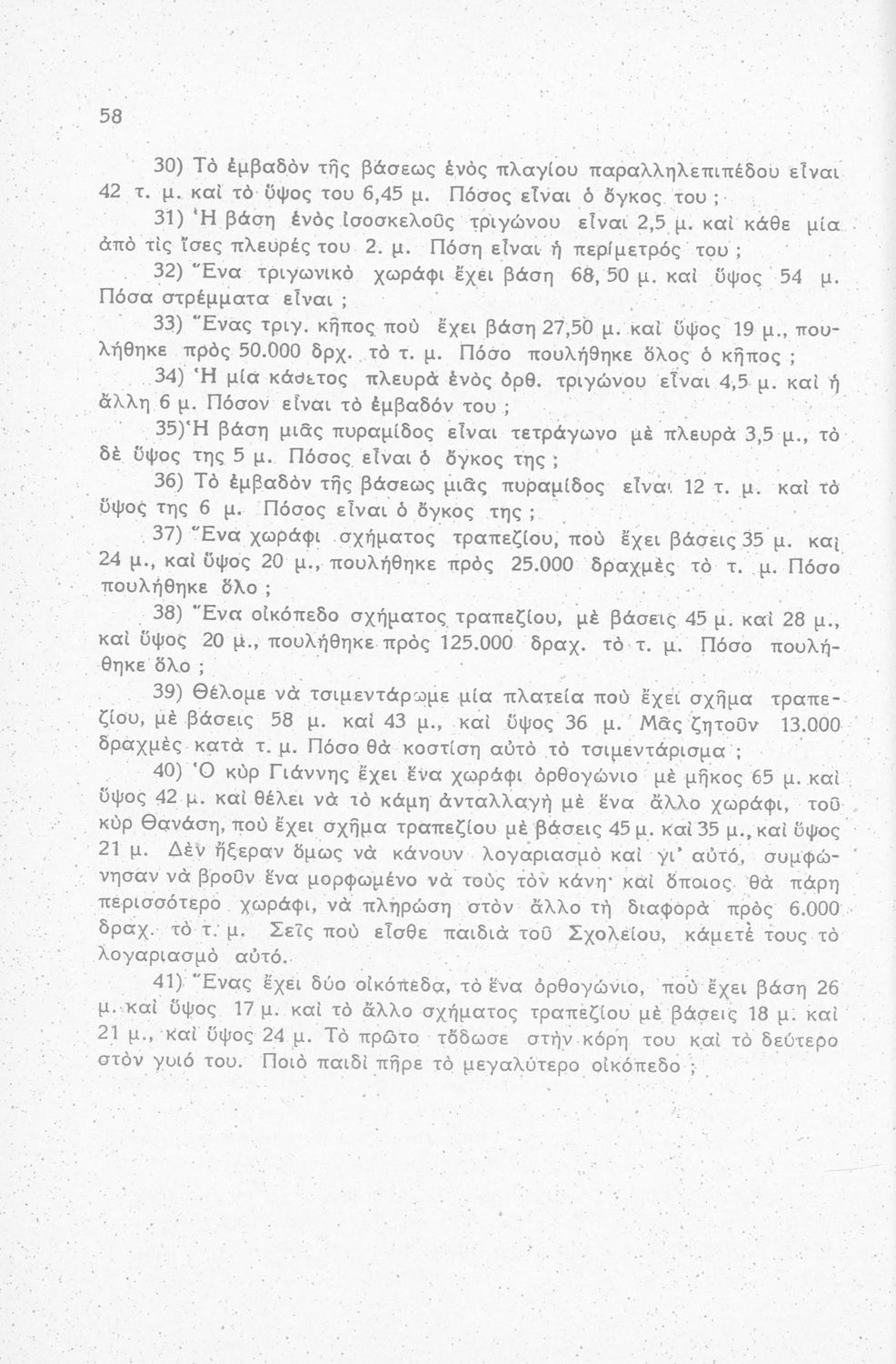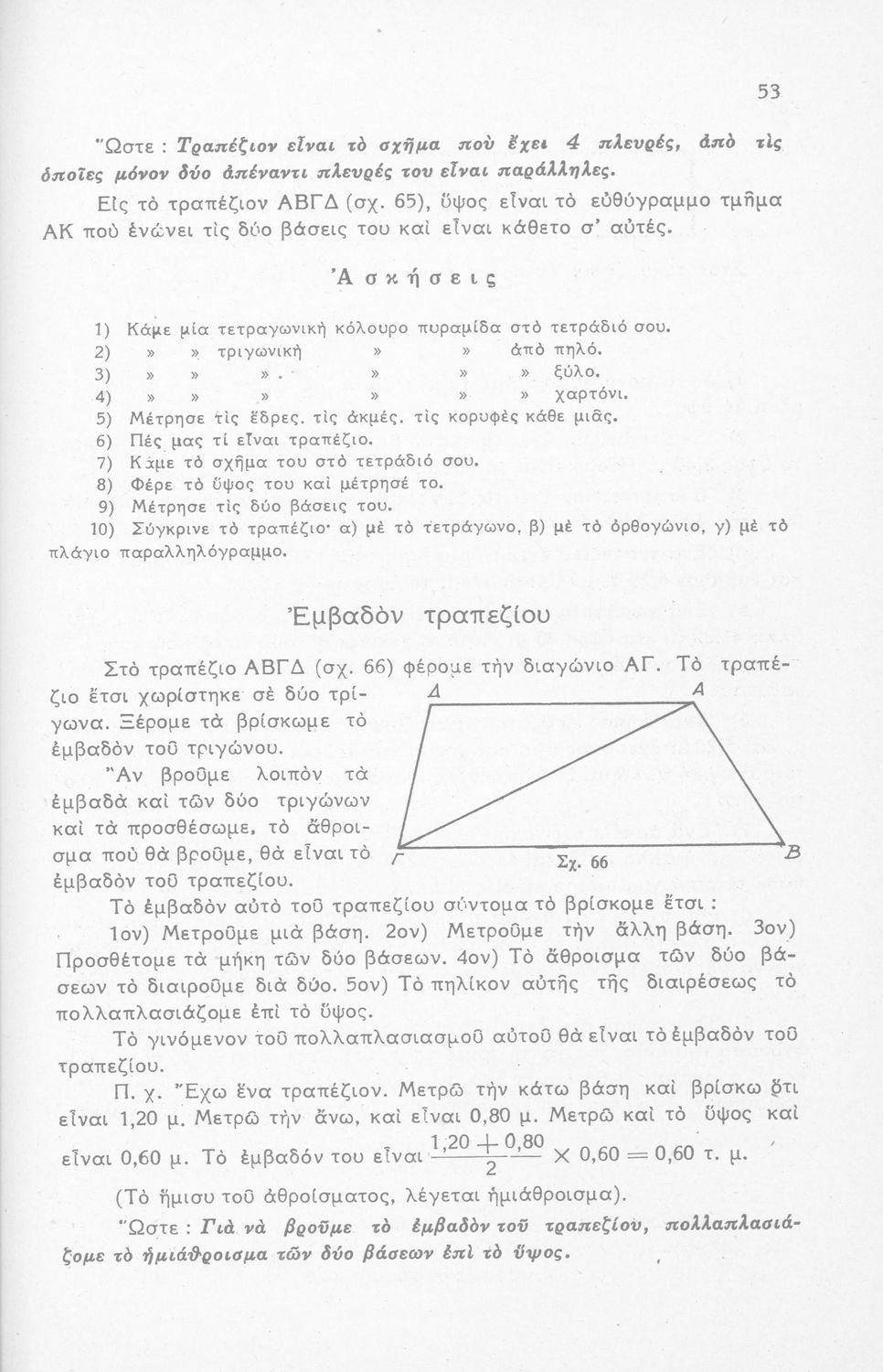 Παρουσίαση περιεχομένου: Μαθητικό βοήθημα Γεωμετρίας για τις Ε΄ και ΣΤ΄ Δημοτικού που περιλαμβάνει εικόνες, σχεδιαγράμματα και ασκήσεις. Περιέχει πίνακα με τα ειδικά βάρη διαφόρων σωμάτων.