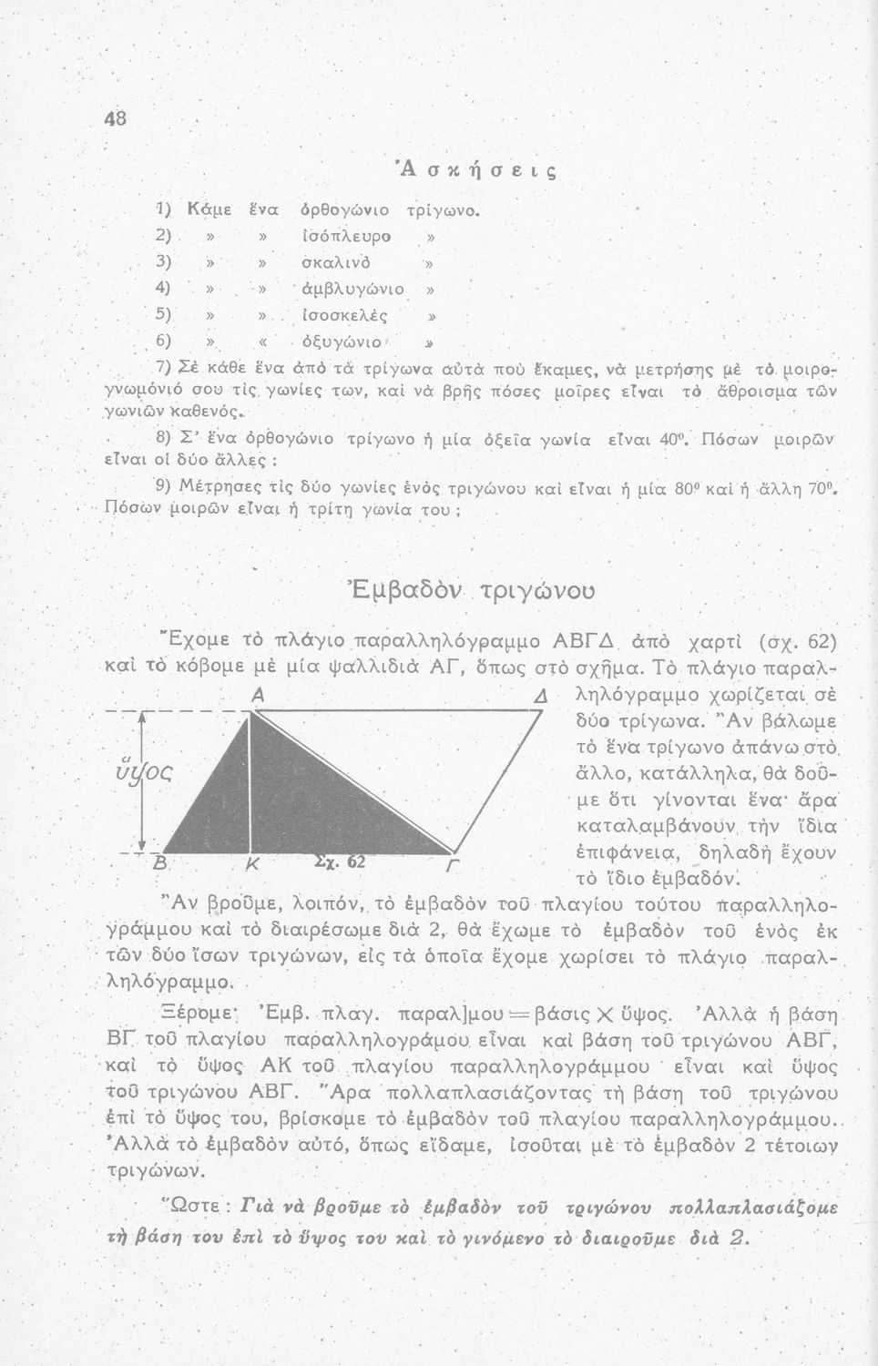 Μαθητικό βοήθημα Γεωμετρίας για τις Ε΄ και ΣΤ΄ Δημοτικού που περιλαμβάνει εικόνες, σχεδιαγράμματα και ασκήσεις. Περιέχει πίνακα με τα ειδικά βάρη διαφόρων σωμάτων.
