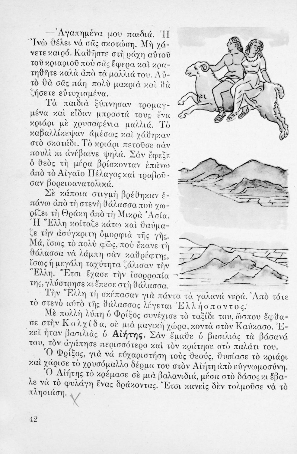 Μαθητικό βοήθημα της Γ΄ Δημοτικού για το μάθημα της Ιστορίας. Αναφέρεται κυρίως στην μυθολογία, τους αρχαίους ήρωες, τους Θεούς του Ολύμπου. Στη συνέχεια αναφέρει τους Περσικούς Πολέμους. Η γλώσσα είναι δημοτική και το ύφος απλό. Με ευσύνοπτο τρόπο παρουσιάζονται τα μυθικά χρόνια στους μαθητές προκειμένου να καλλιεργηθεί η εθνική συνείδηση.
