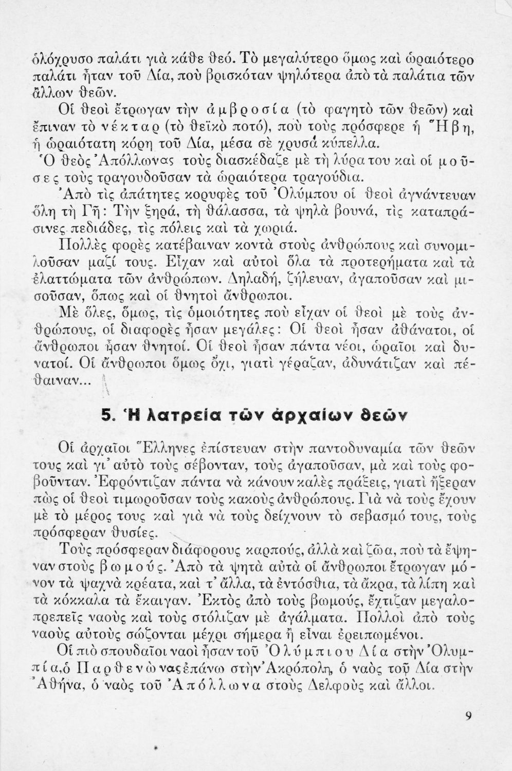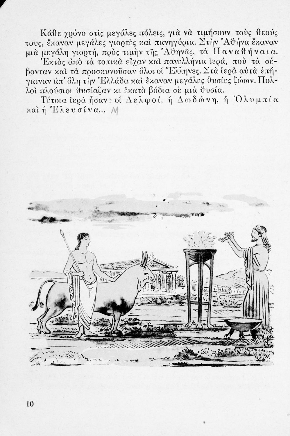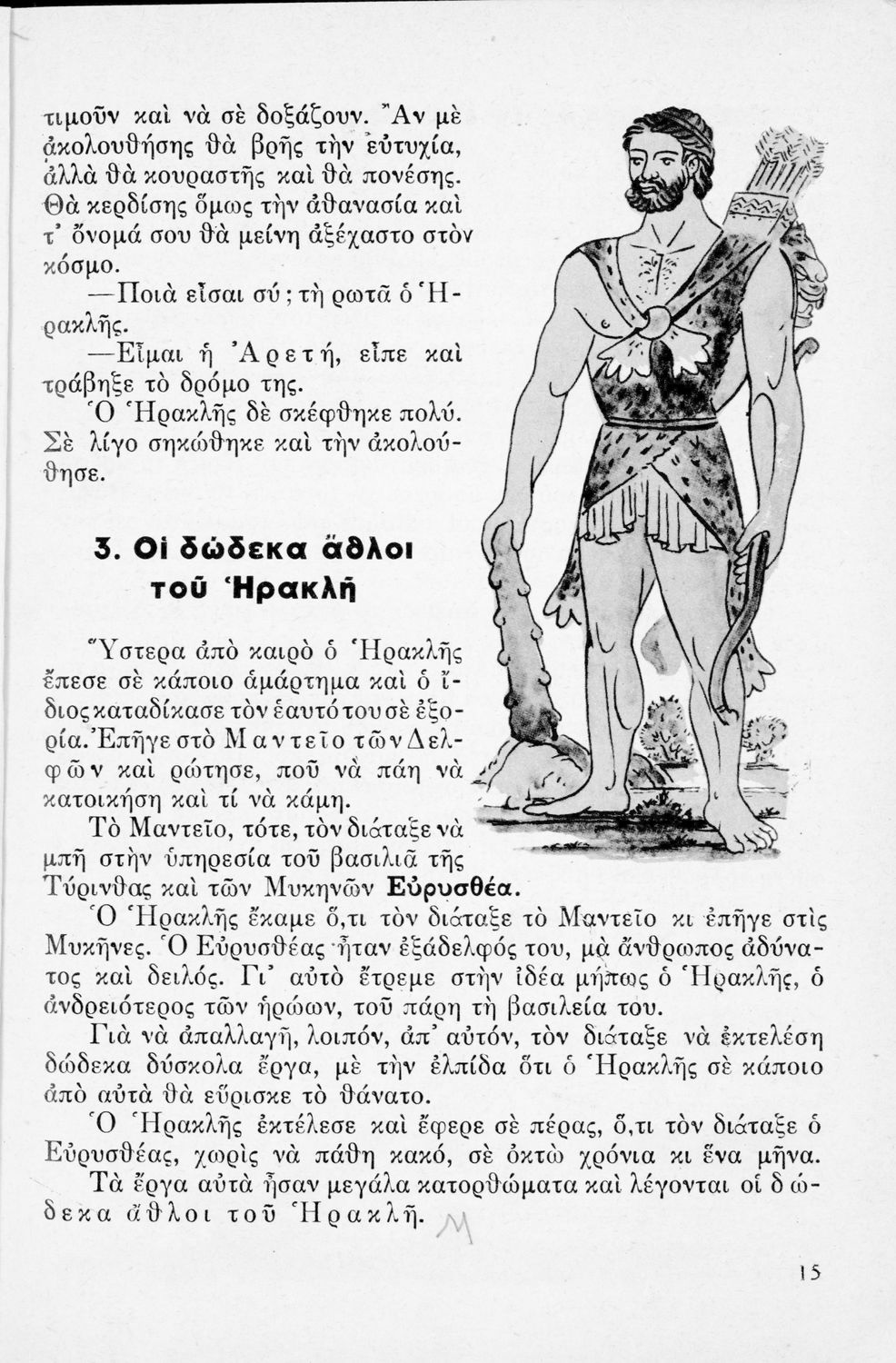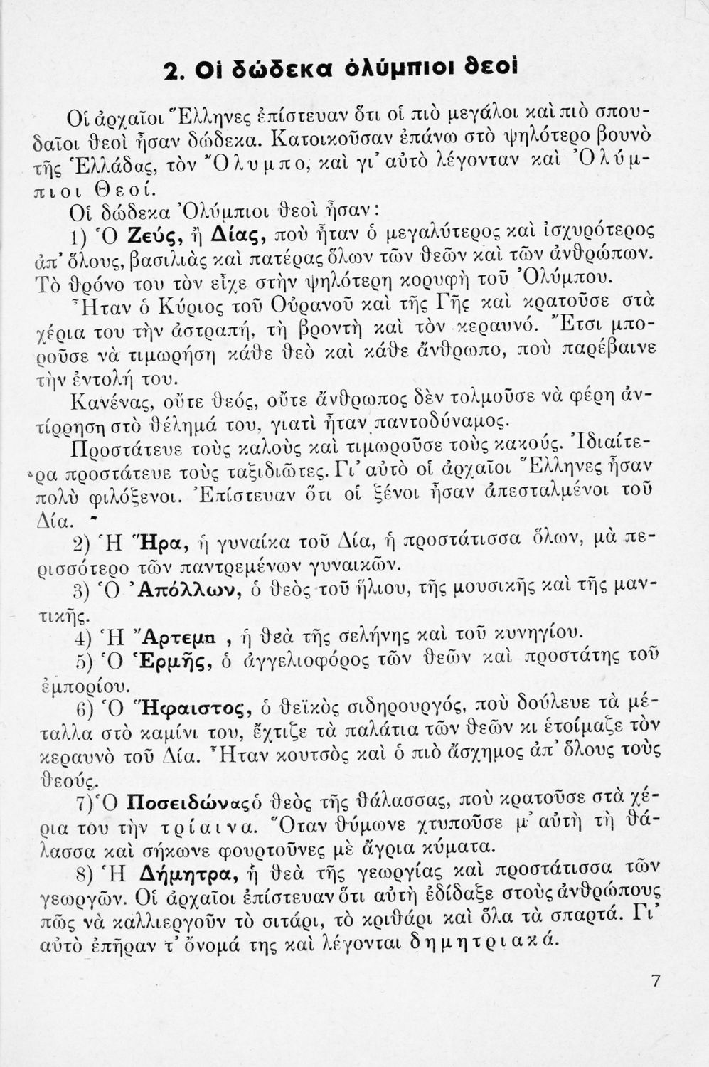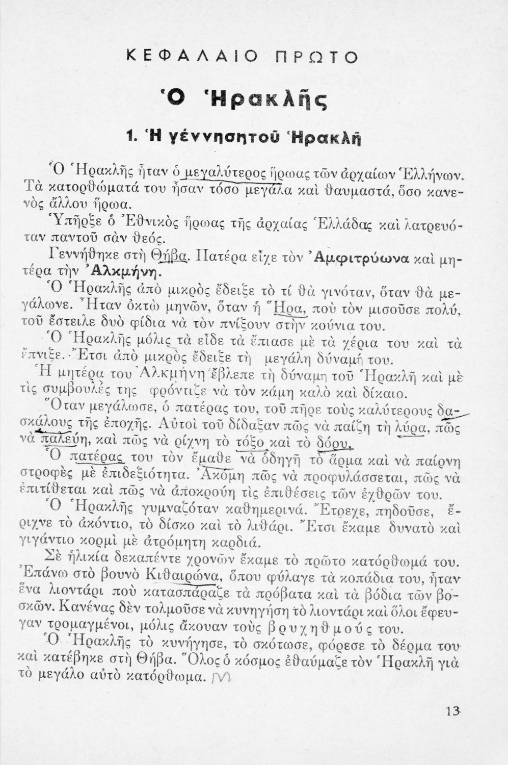 Μαθητικό βοήθημα της Γ΄ Δημοτικού για το μάθημα της Ιστορίας. Αναφέρεται κυρίως στην μυθολογία, τους αρχαίους ήρωες, τους Θεούς του Ολύμπου. Στη συνέχεια αναφέρει τους Περσικούς Πολέμους. Η γλώσσα είναι δημοτική και το ύφος απλό. Με ευσύνοπτο τρόπο παρουσιάζονται τα μυθικά χρόνια στους μαθητές προκειμένου να καλλιεργηθεί η εθνική συνείδηση.