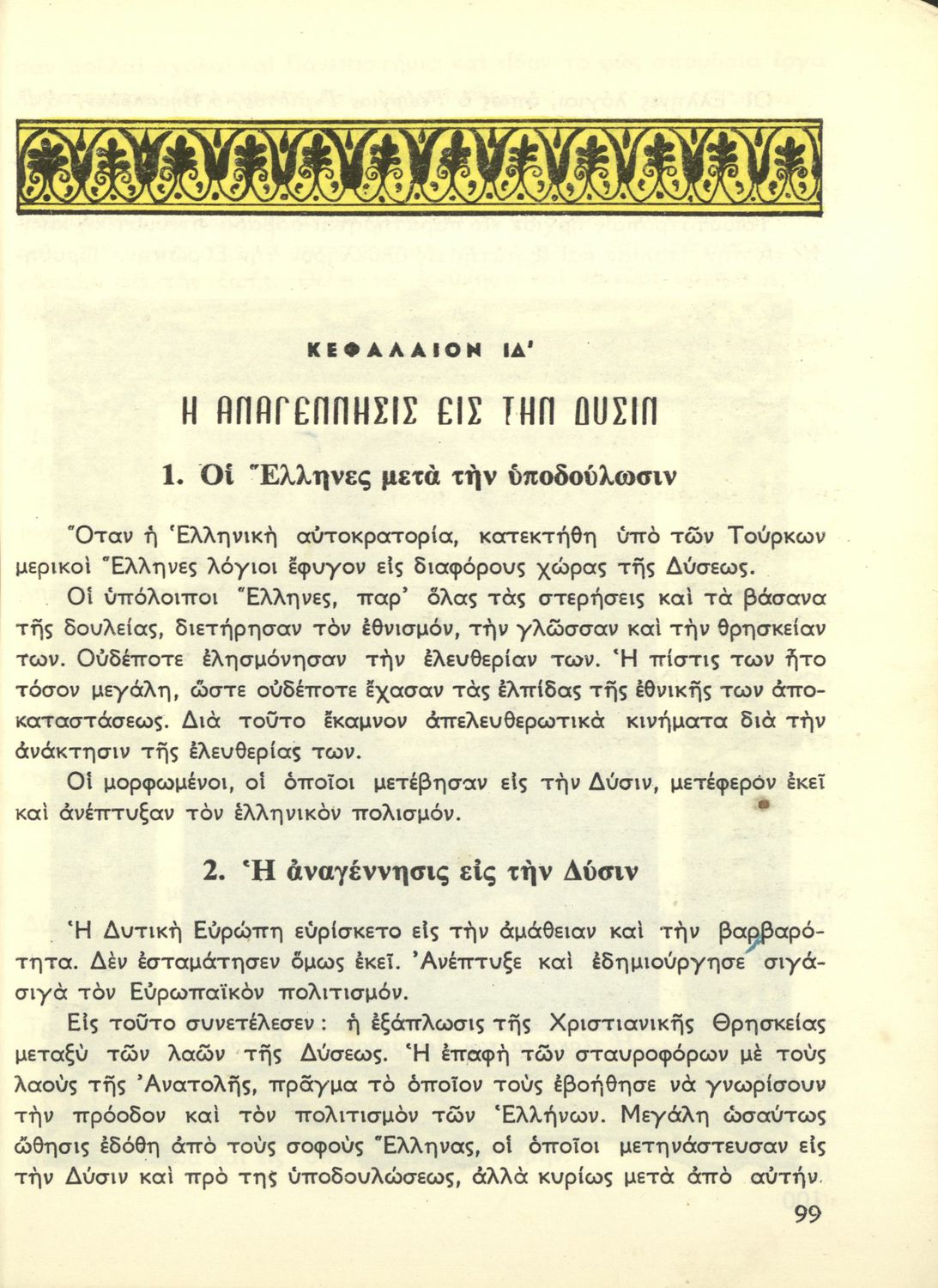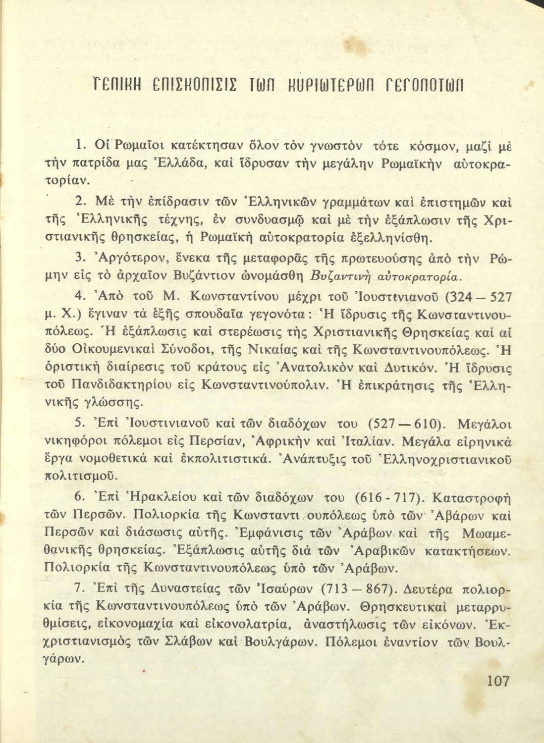 Σχολικό εγχειρίδιο για το μάθημα της Ιστορίας στους μαθητές του Δημοτικού. Αναφέρεται στα χρόνια της Βυζαντινής Αυτοκρατορίας μέχρι και την άλωση της Πόλης. Το τελευταίο κεφάλαιο αναφέρεται στα επιτεύγματα της