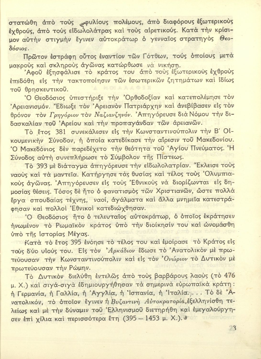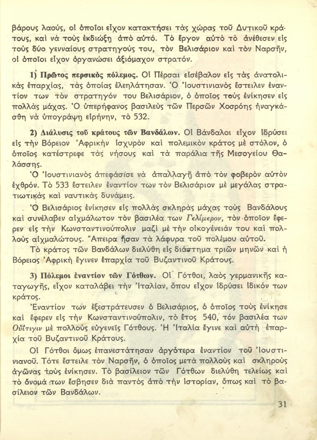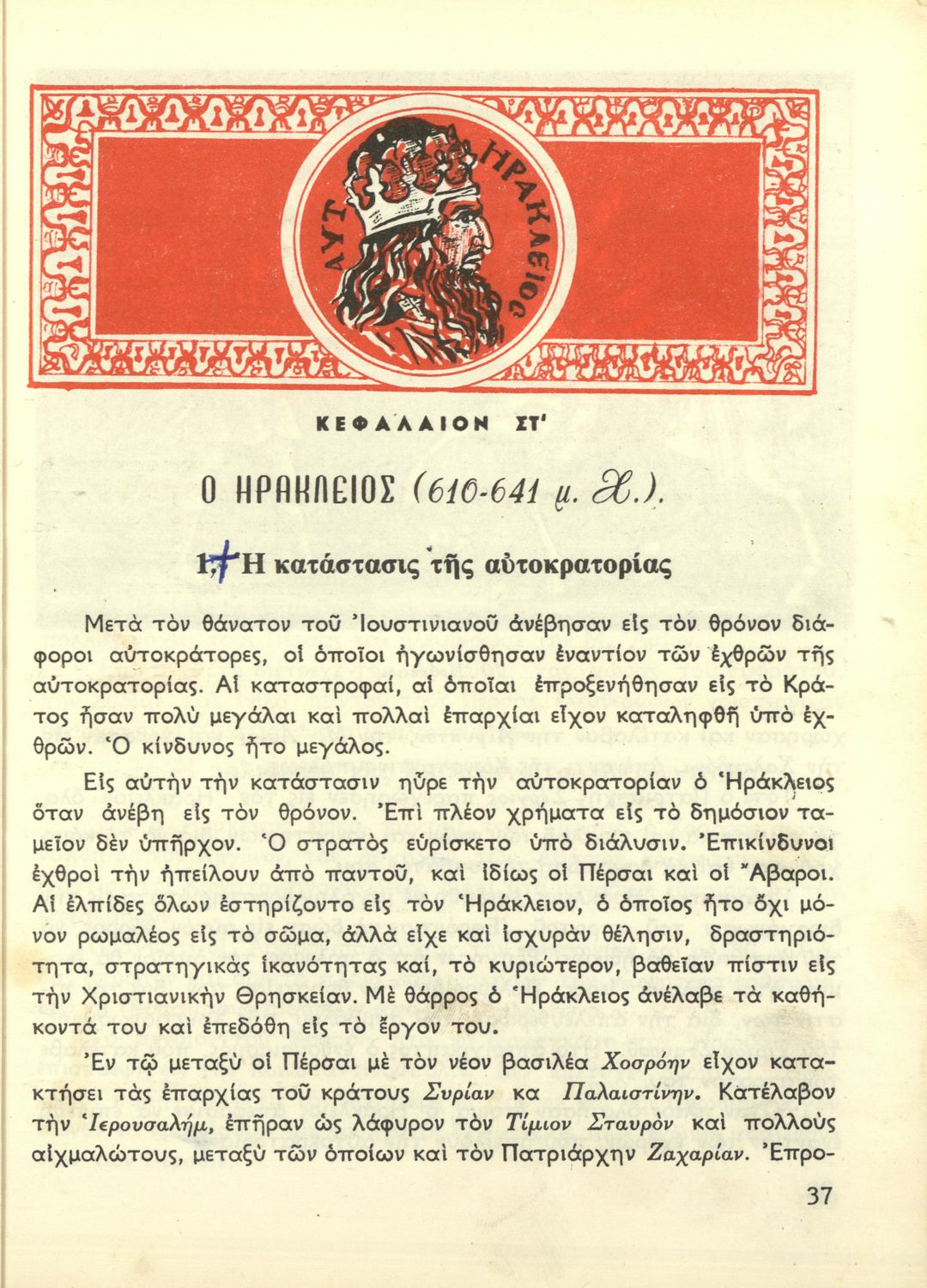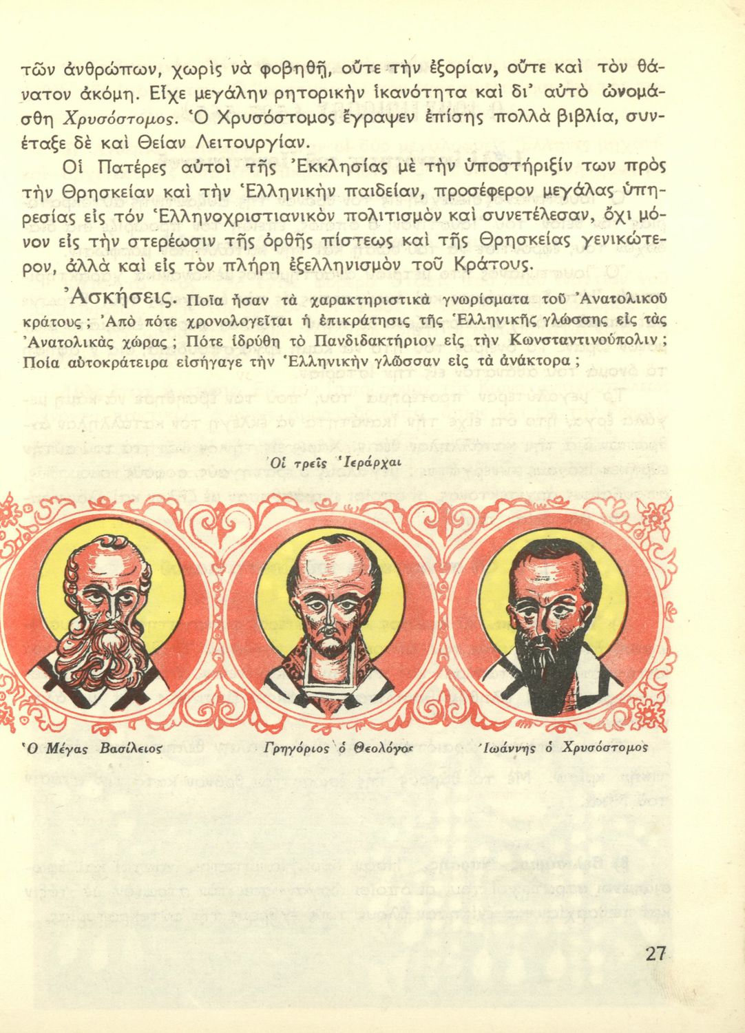Κωδικός αναγνώρισης: 01-18735 Τίτλος: Ιστορία της Βυζαντινής Αυτοκρατορίας δια την Ε΄ τάξιν των Δημοτικών Σχολείων Συγγραφέας: Μιχαήλ Β. Μπίγκας Μέγεθος και υπόστρωμα: Μαθητικό βοήθημα, 19εκ., 109 σελίδες. Σκίτσα (ασπρόμαυρα και έγχρωμα), εξώφυλλο (έγχρωμο). |